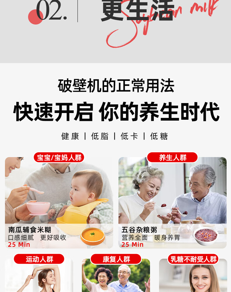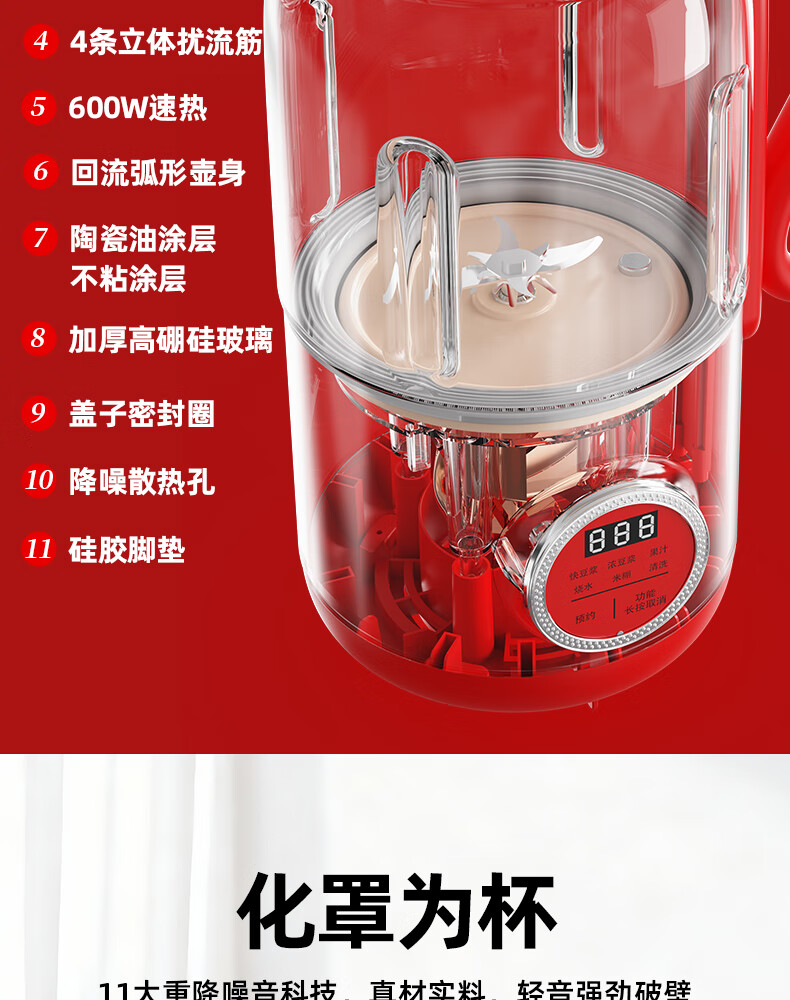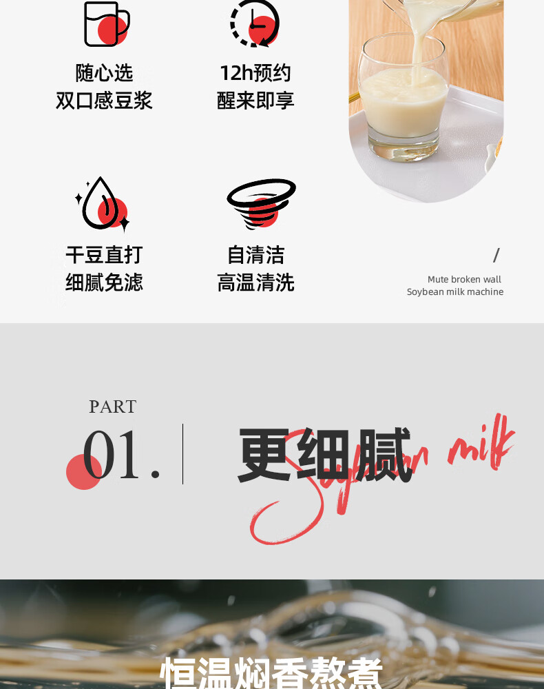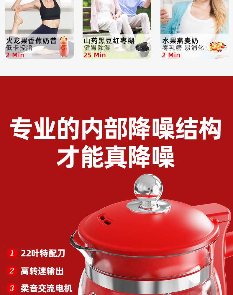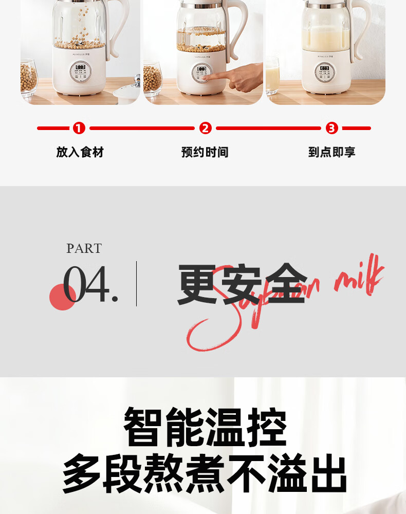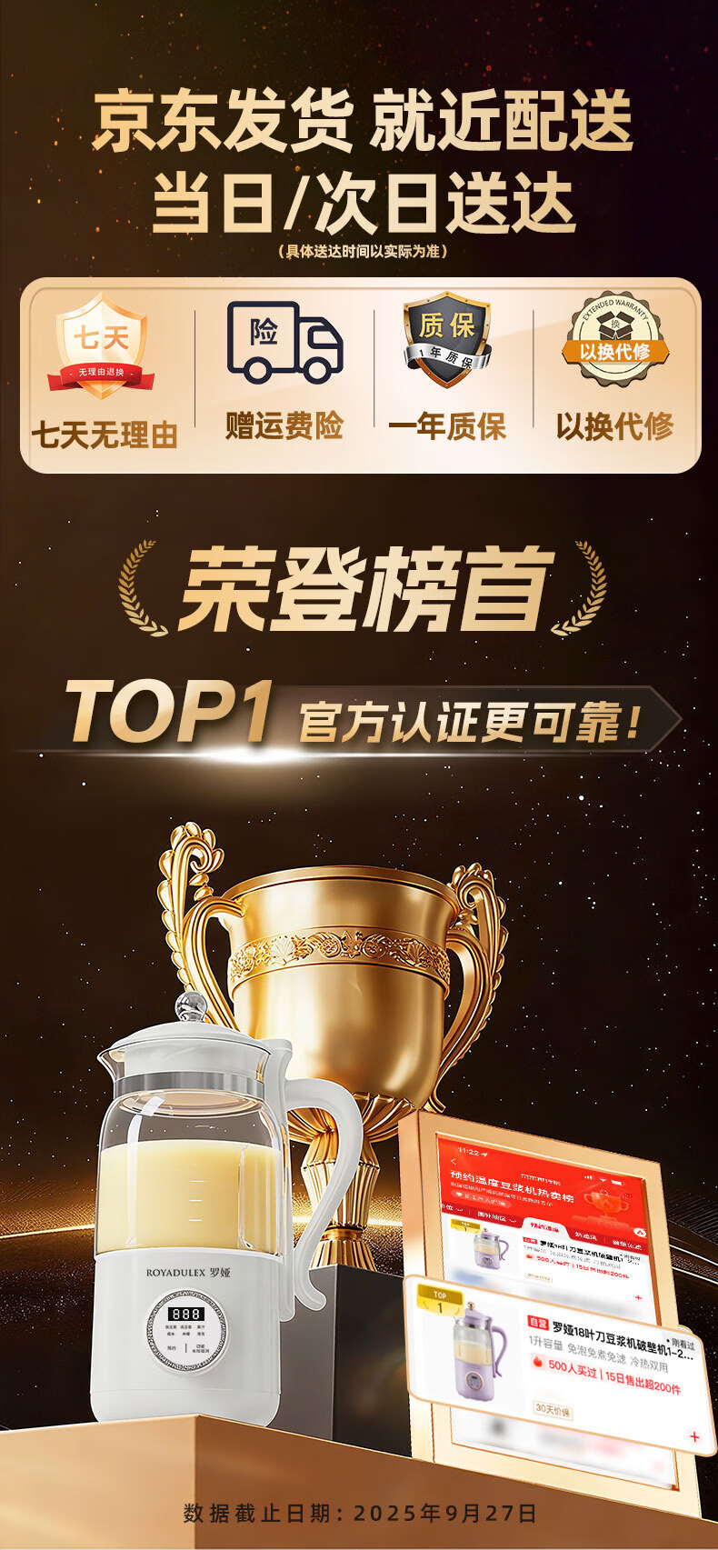 罗娅22叶刀豆浆机破壁机2-3人家用1L全自动免煮免过滤降噪低音小型料理机辅食机米糊机预约保温 雪川白