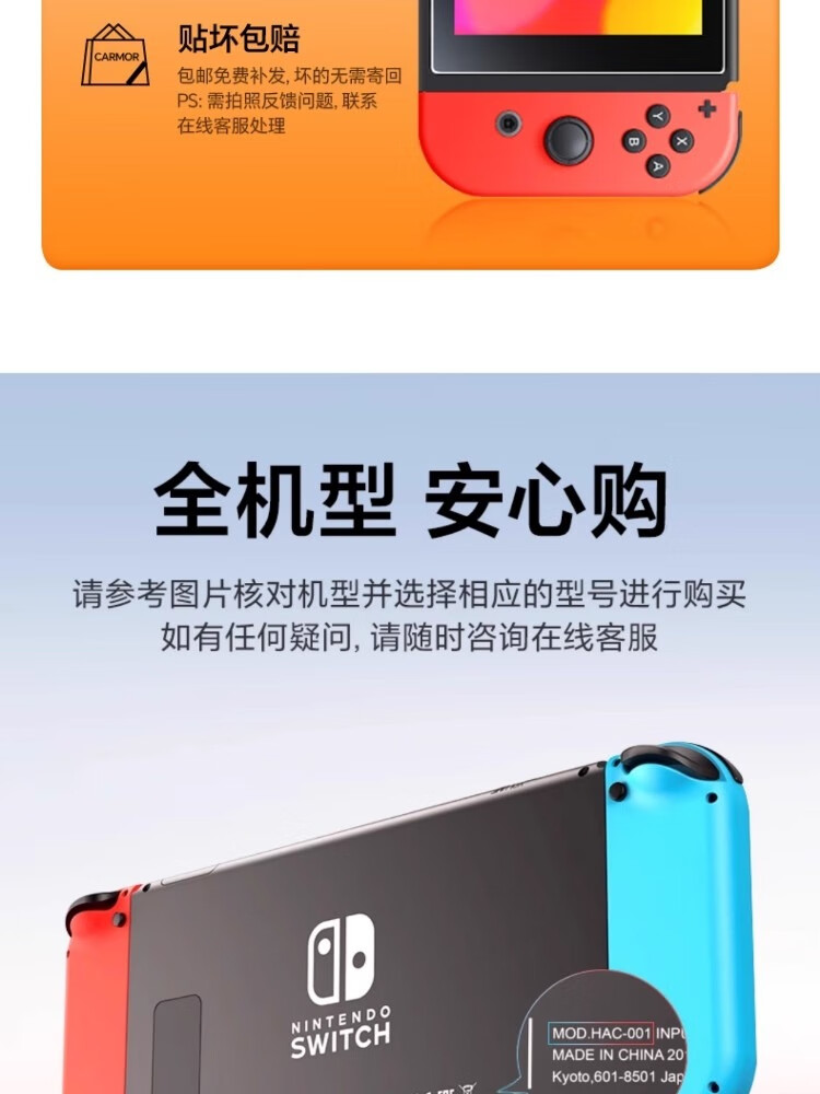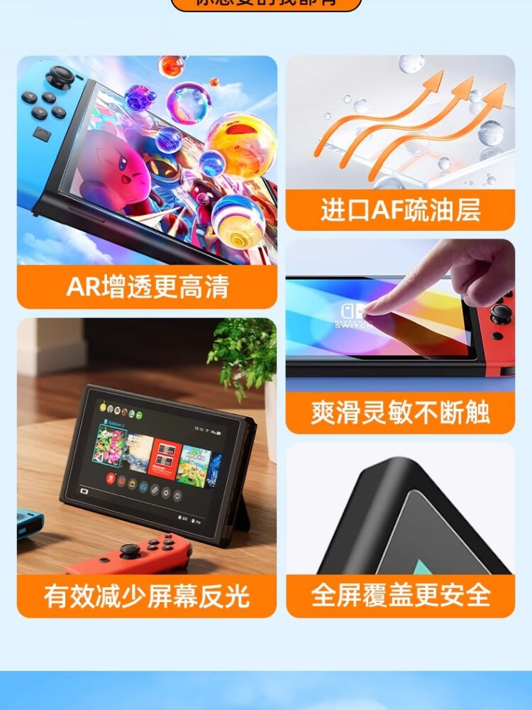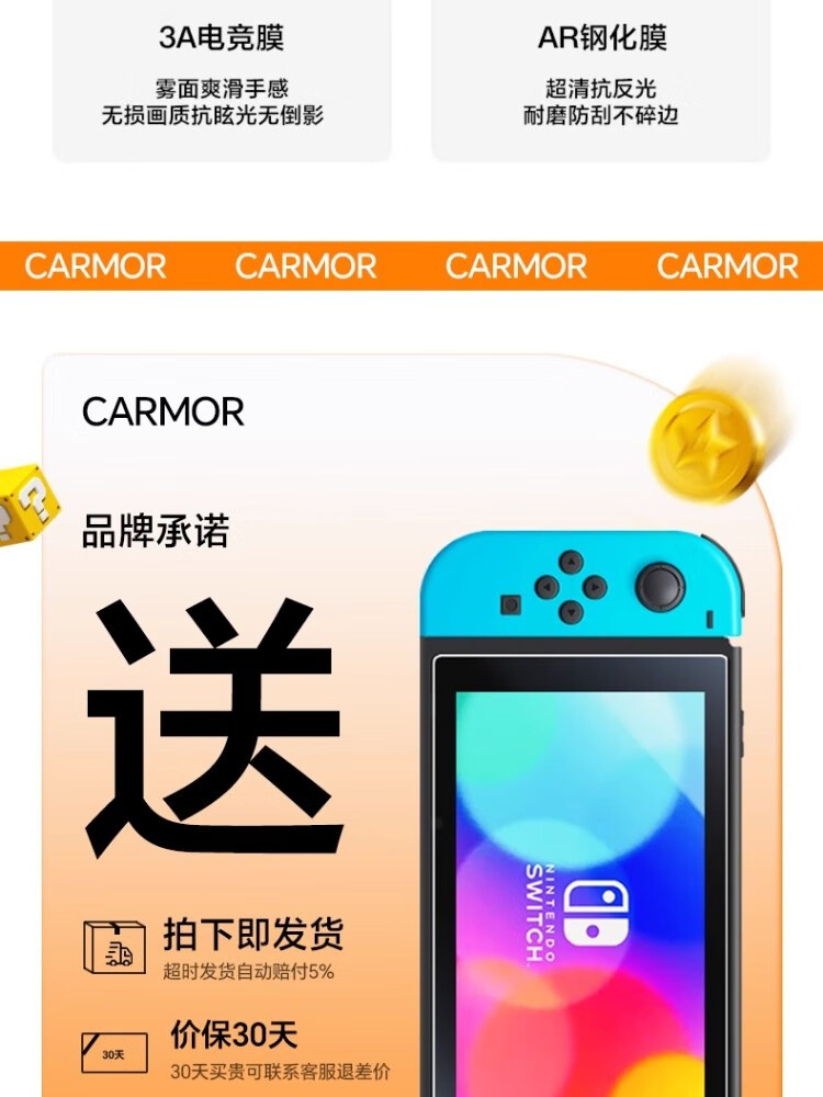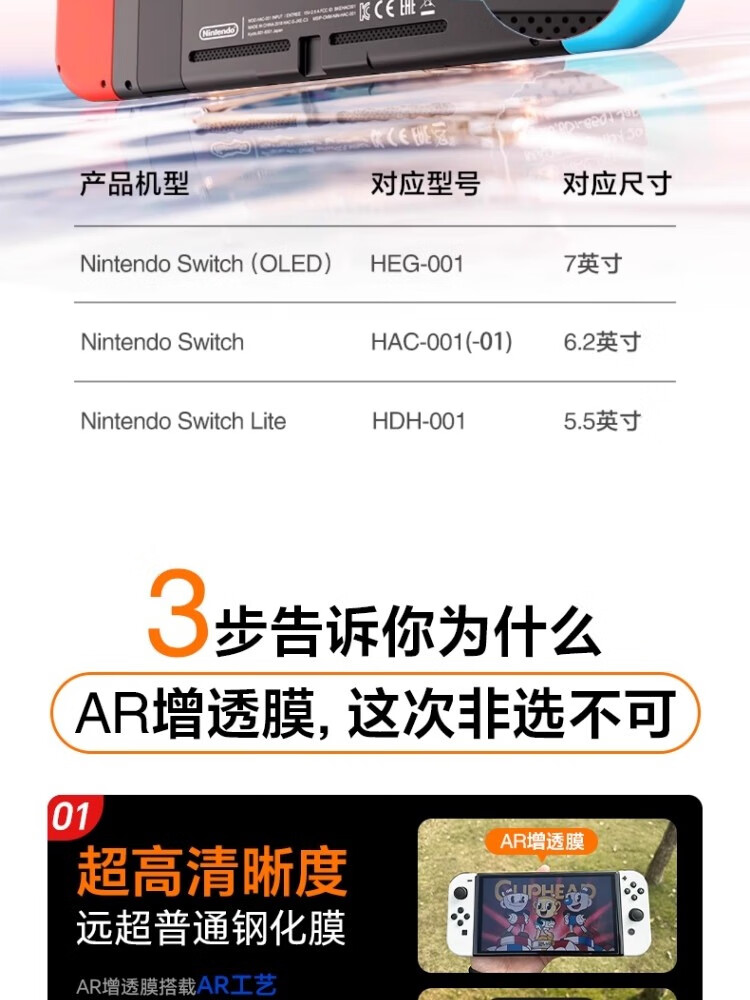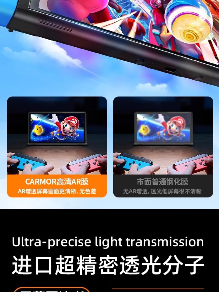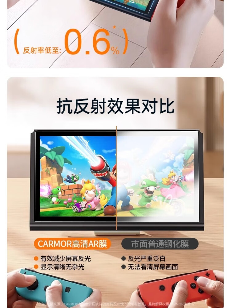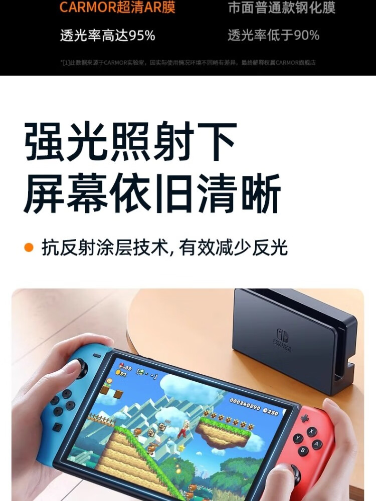 carmor适用于任天堂Switch2降反射AR屏幕膜OLED高清防指纹增透续航版ns游戏机全屏保护贴膜 适用Switch OLED 7寸【AR膜】