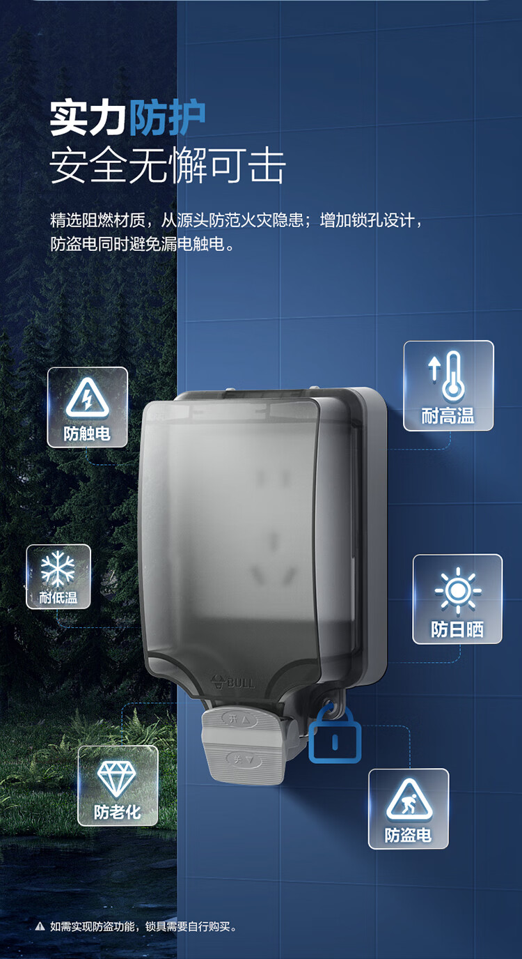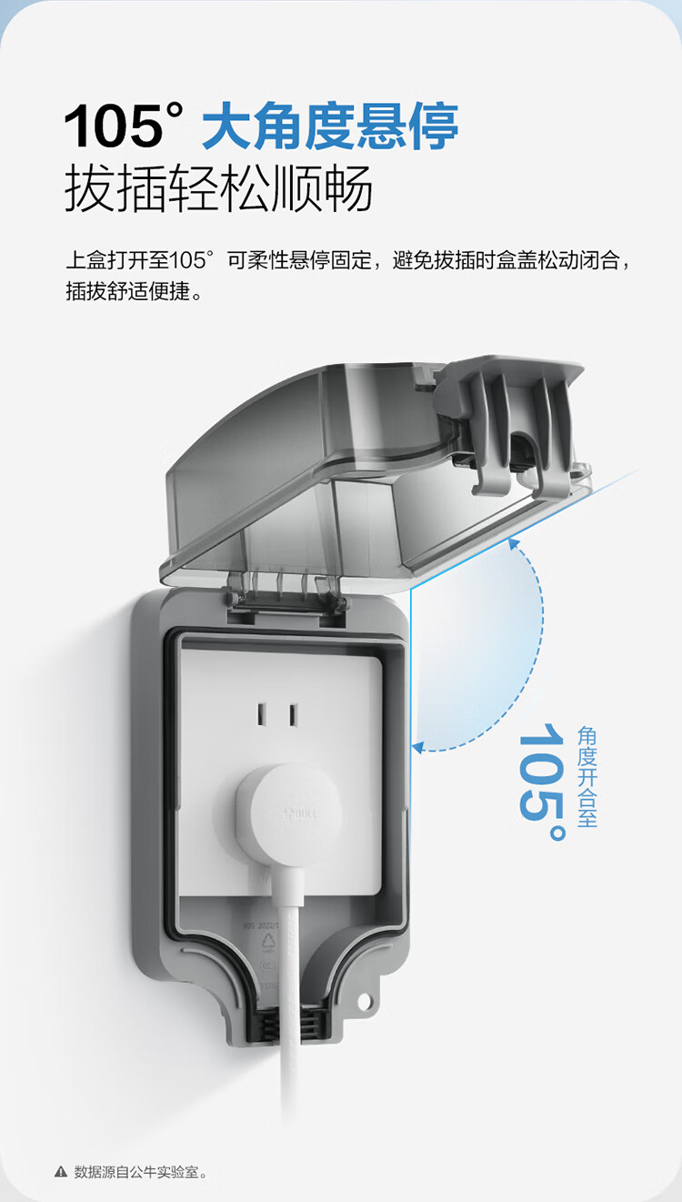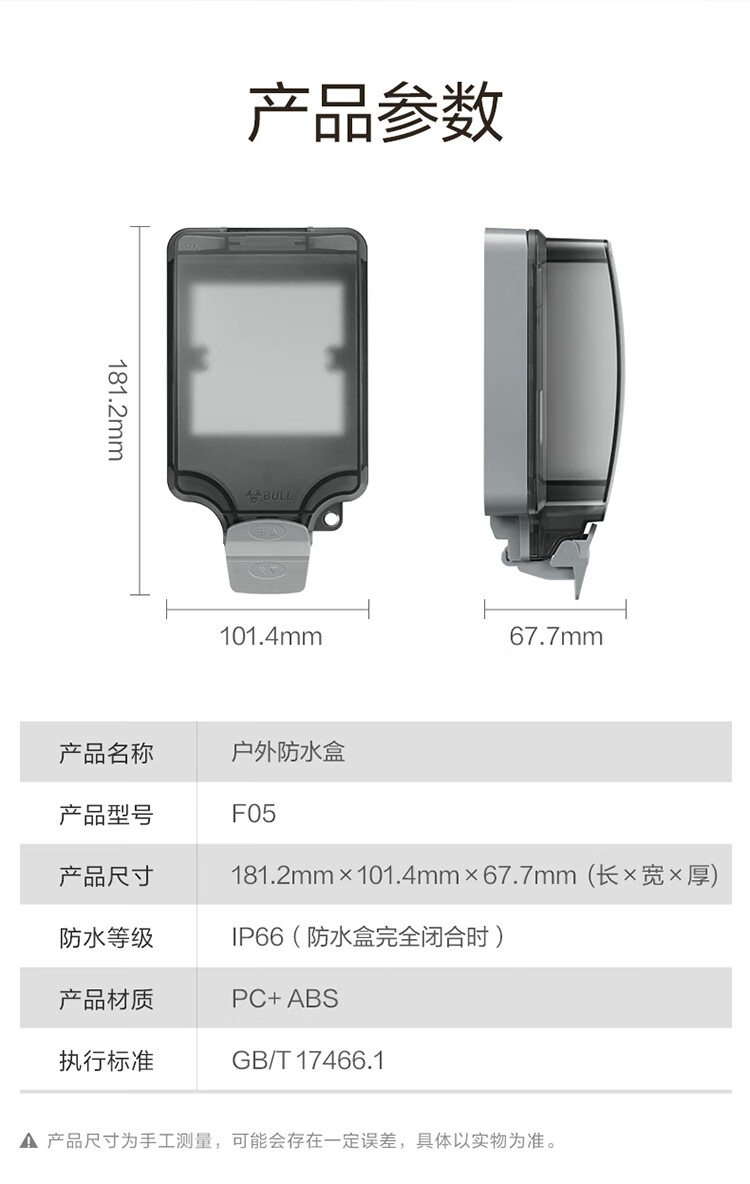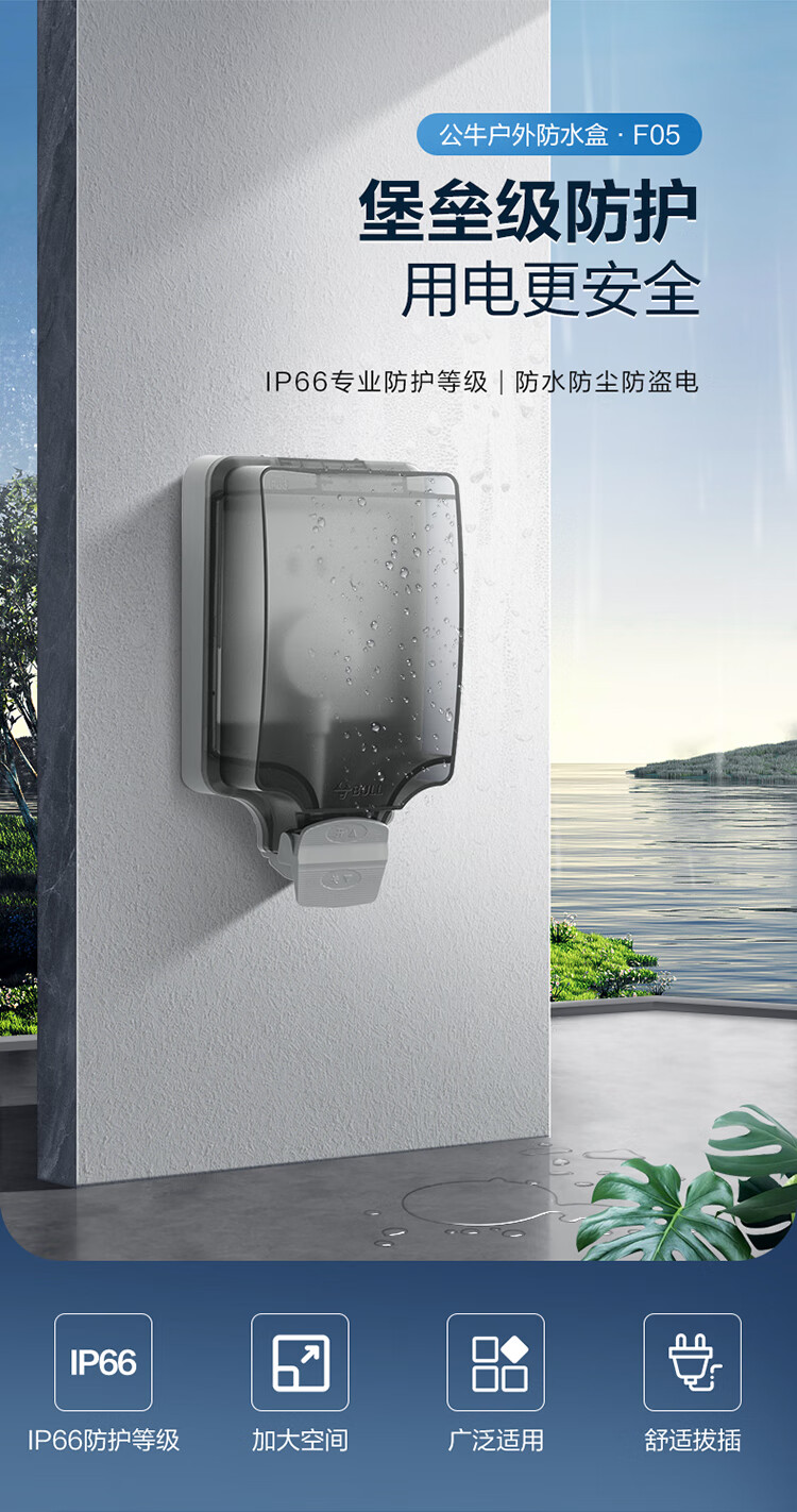 公牛(BULL)开关插座 86型防水开关面板盒防水罩插座浴室防水盒 F05 暗装一位