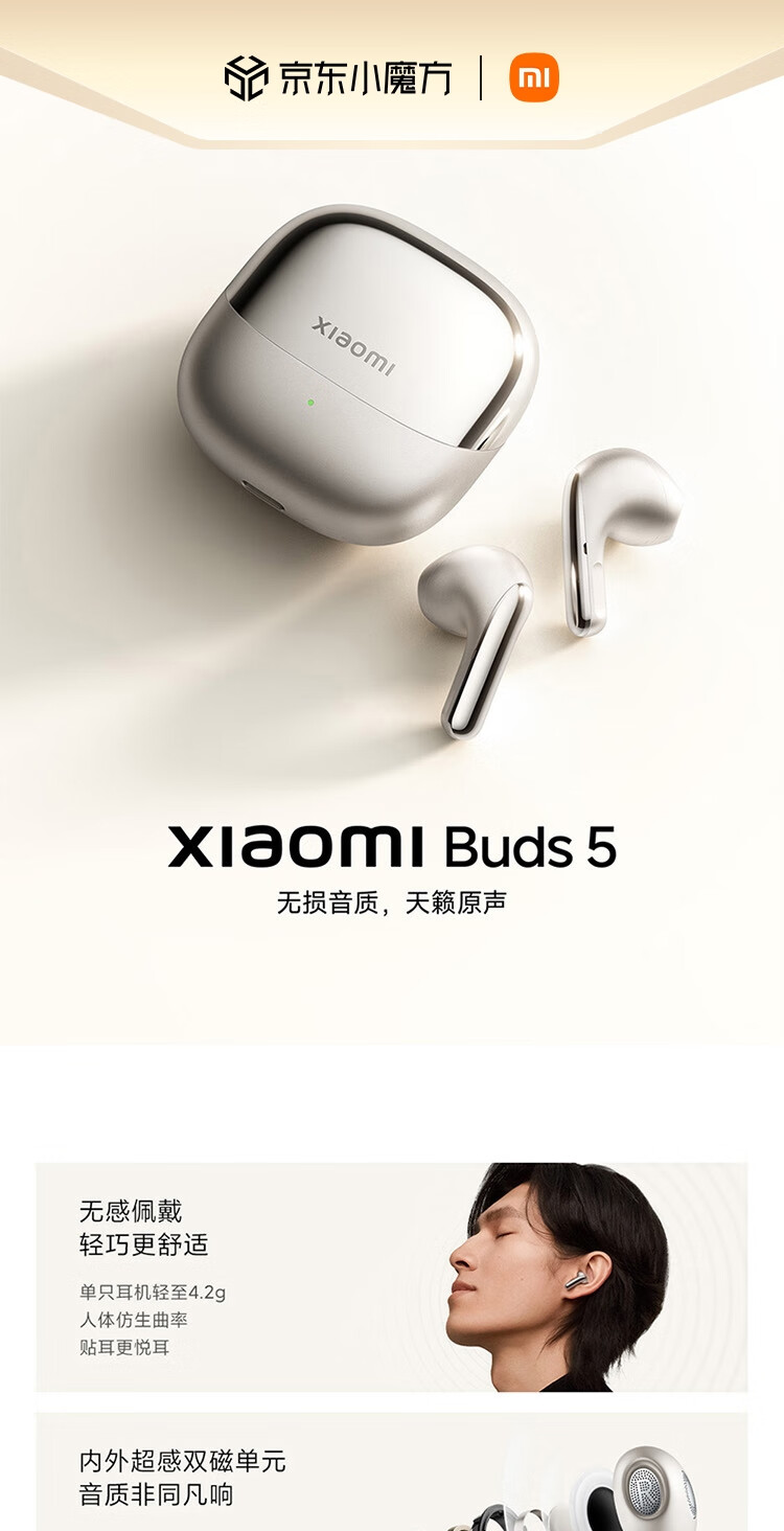 小米(MI)Xiaomi Buds 5【雷总同款】降噪耳机 半入耳式蓝牙耳机 适用于安卓苹果手机(雪山白)