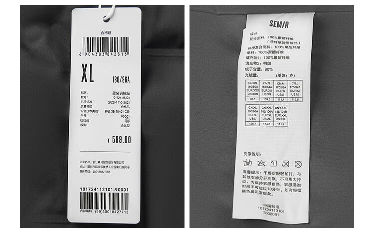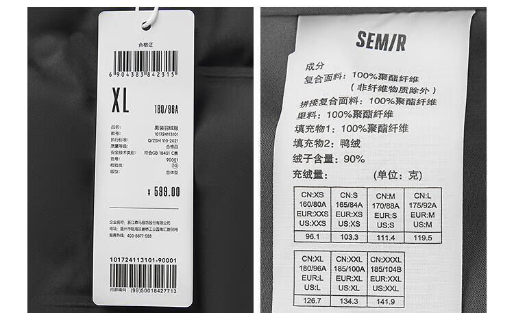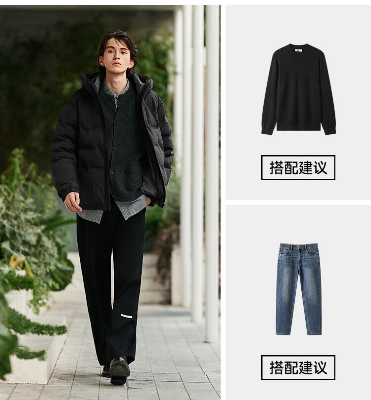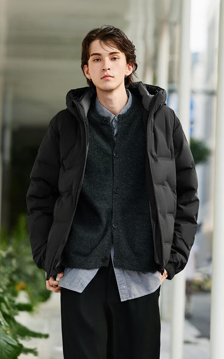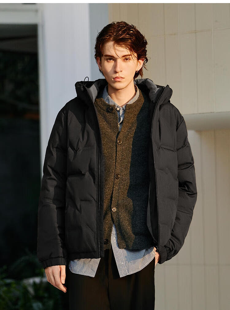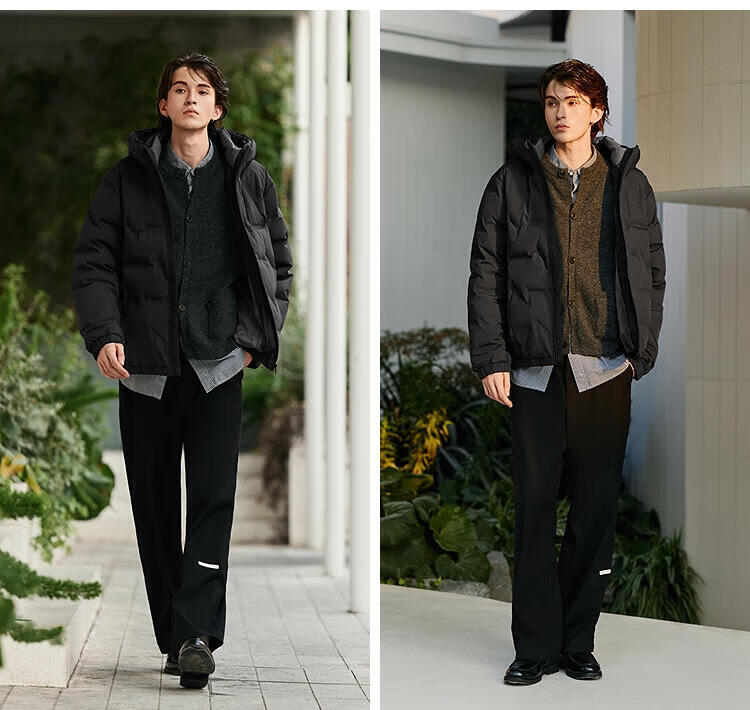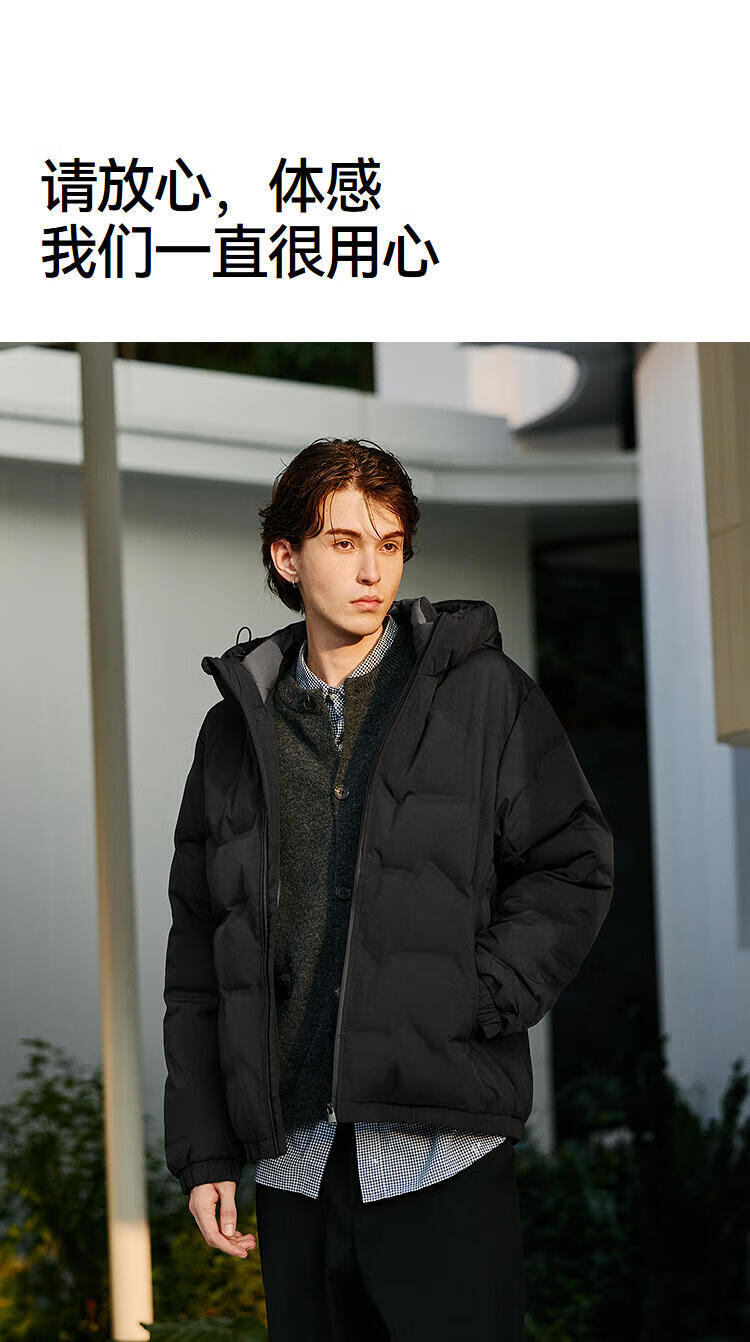 森马(Semir)羽绒服男冬90绒子防泼水外套直充绒无缝压胶纯色连帽101724113101
