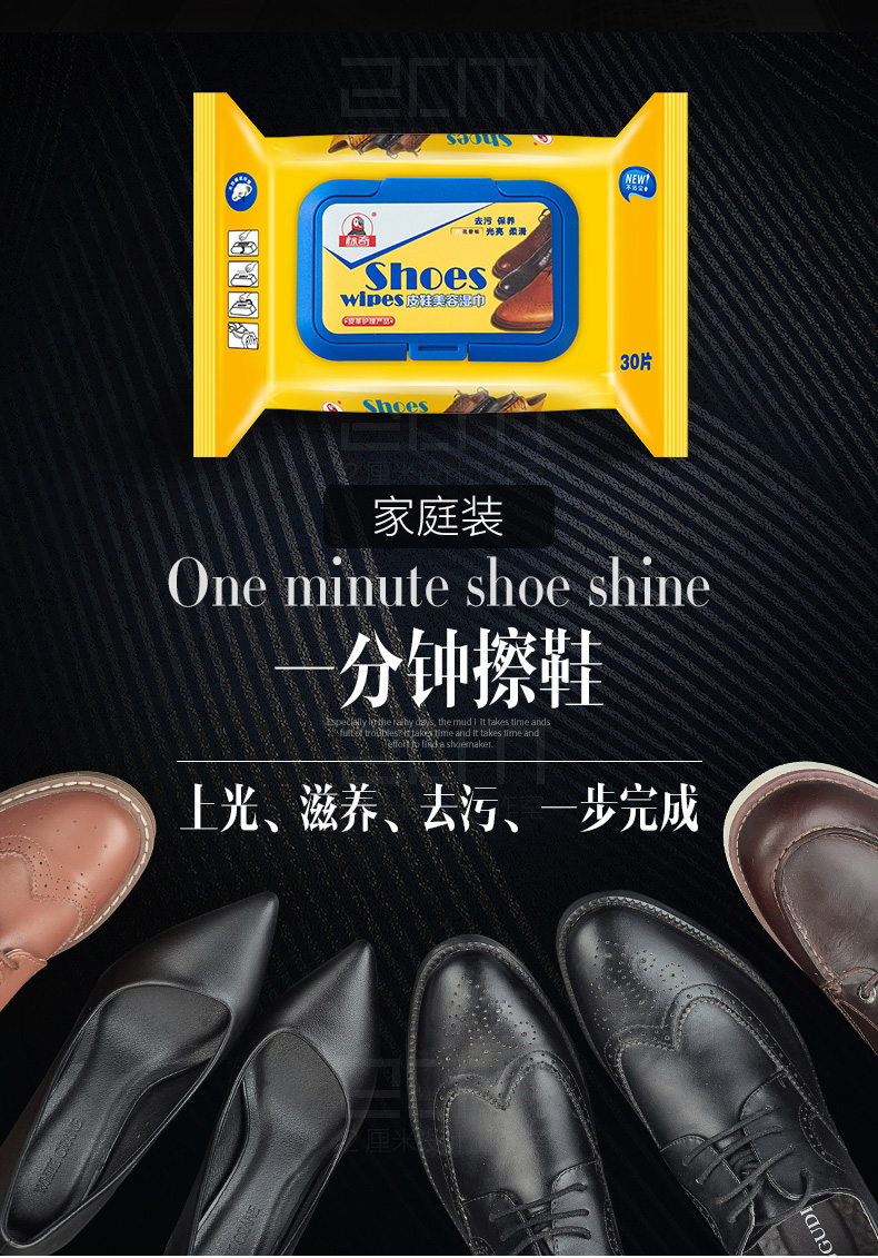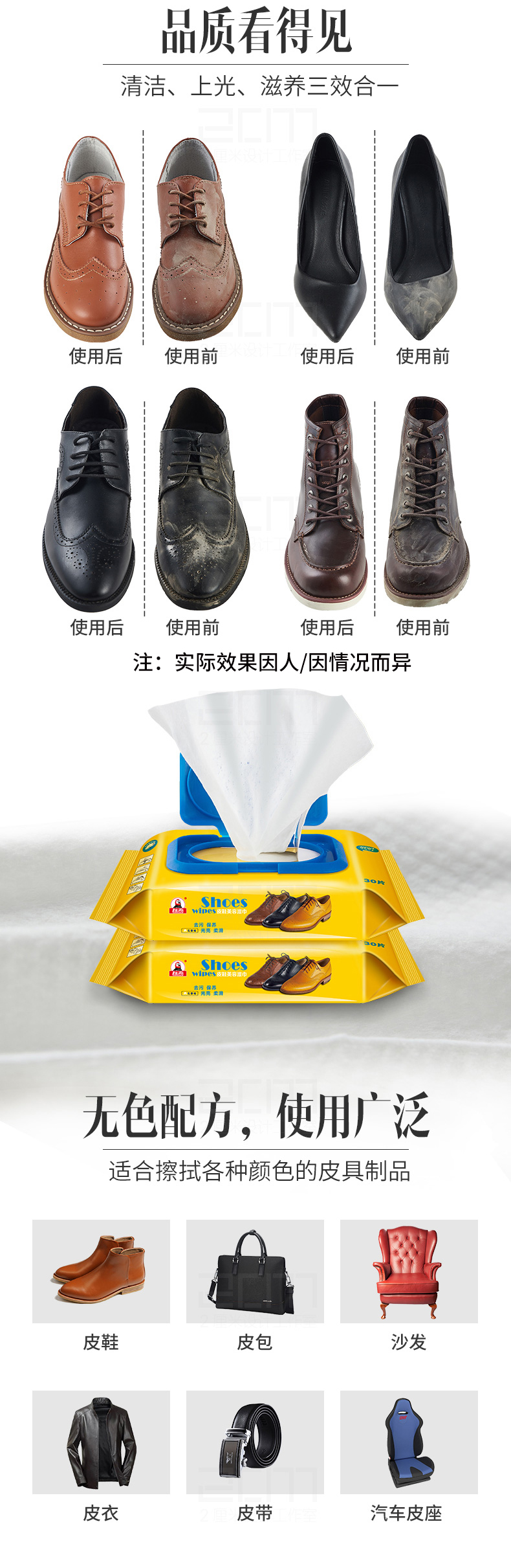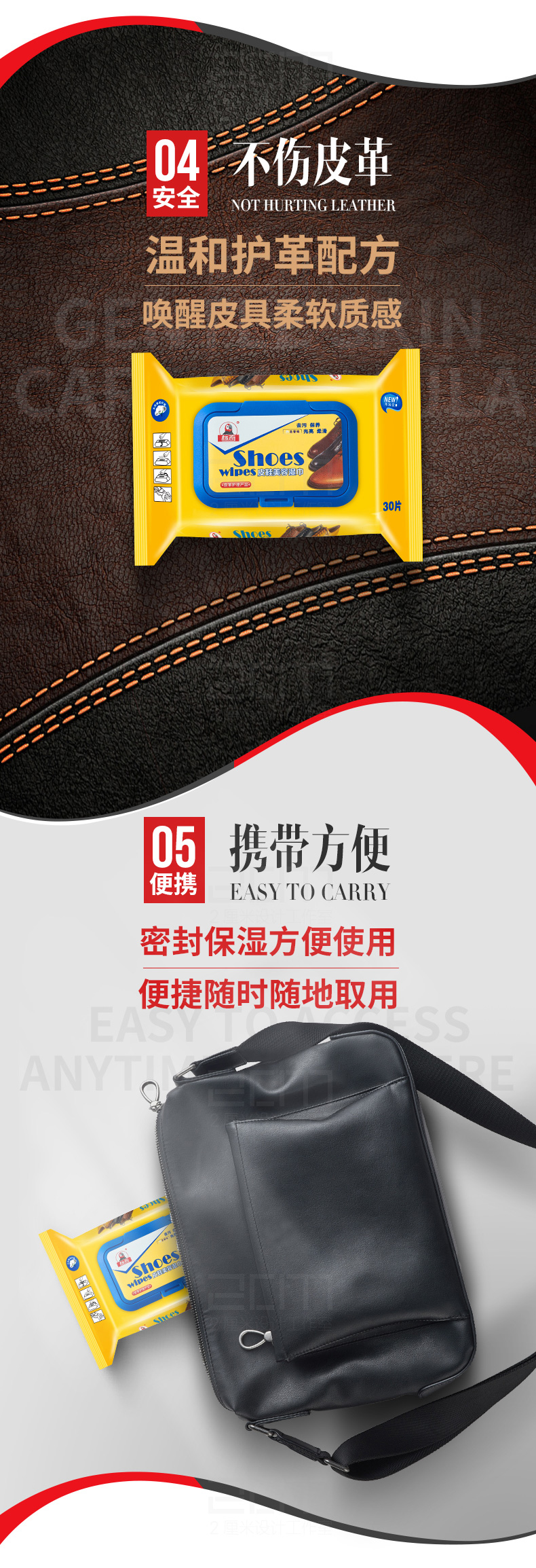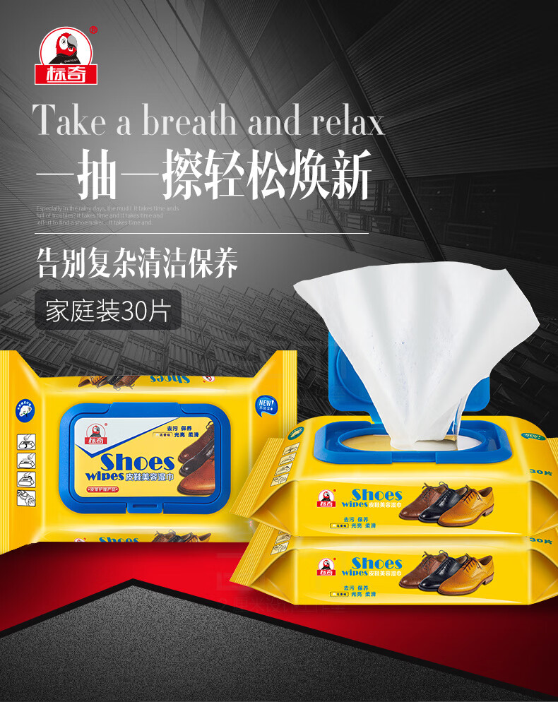 标奇 皮鞋湿巾30片*3包套装 真皮清洁养护 擦鞋湿巾 皮衣皮包鞋油保养