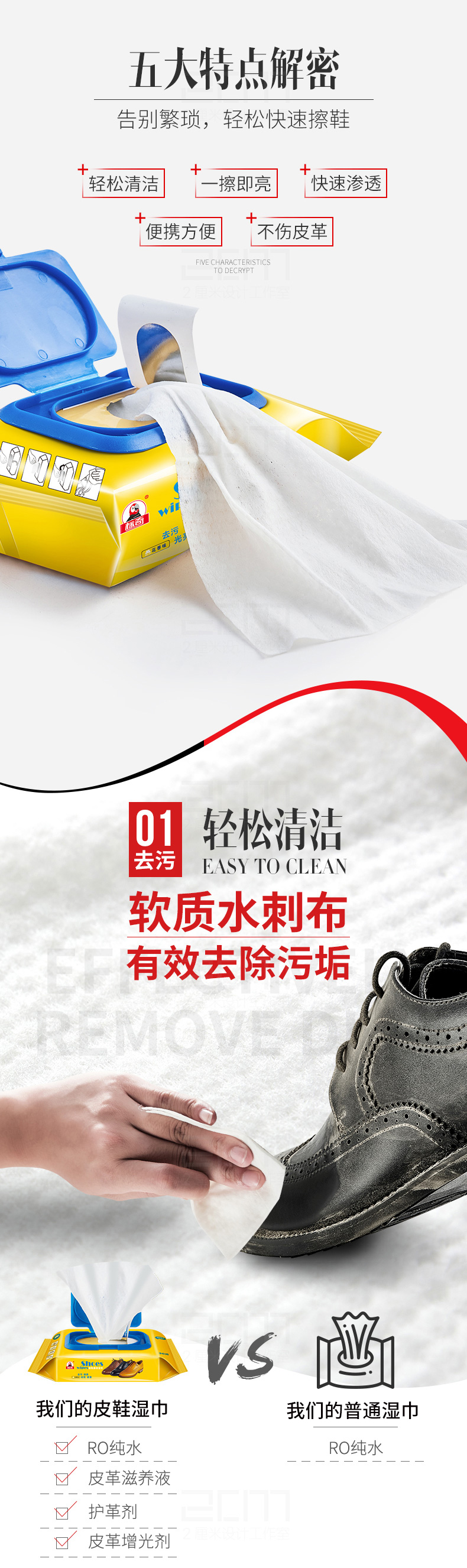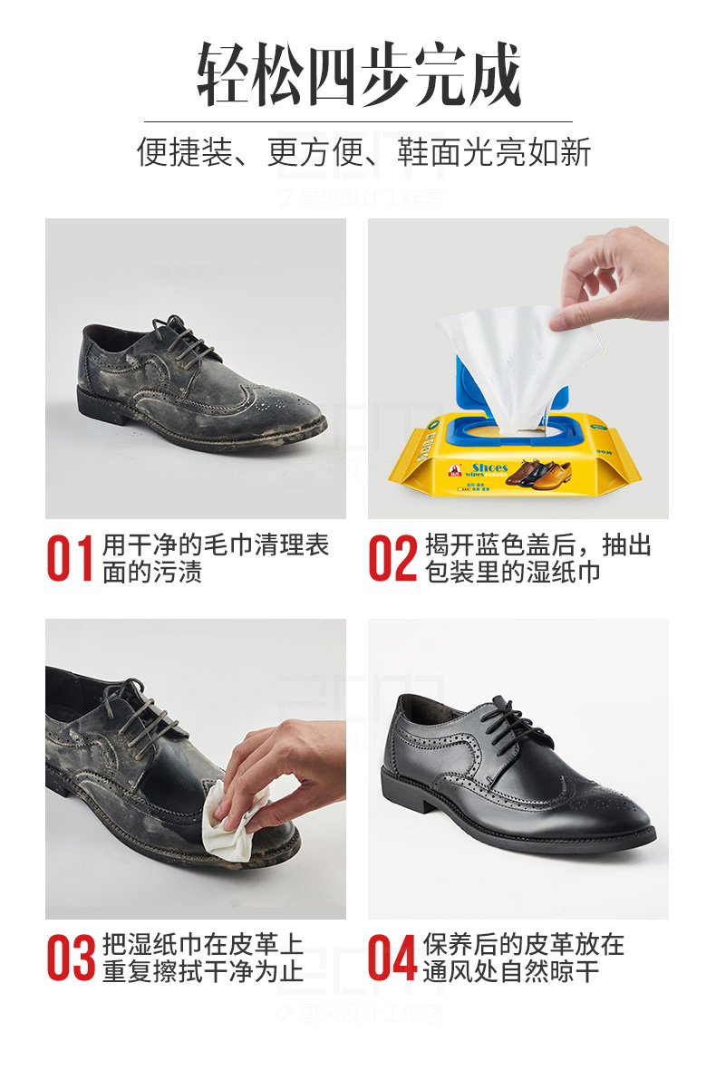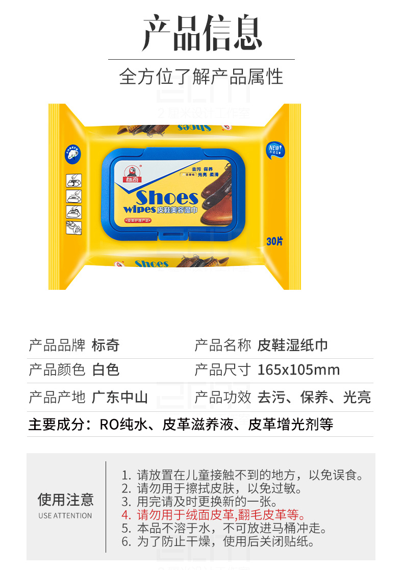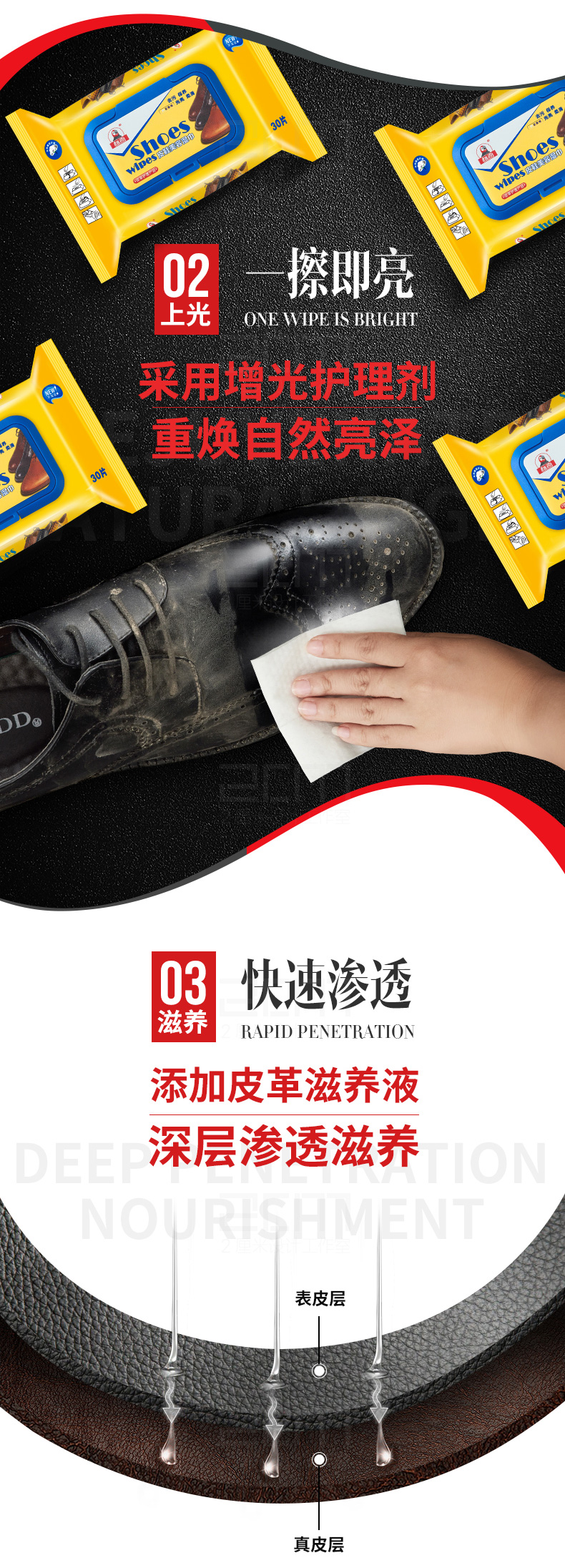 标奇 皮鞋湿巾30片*3包套装 真皮清洁养护 擦鞋湿巾 皮衣皮包鞋油保养