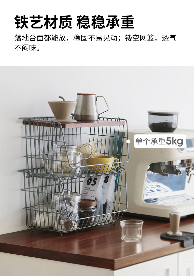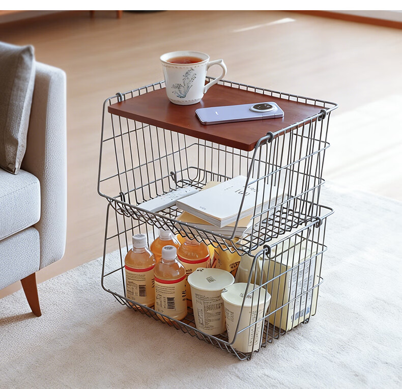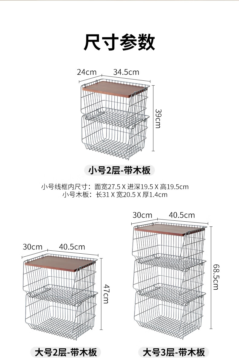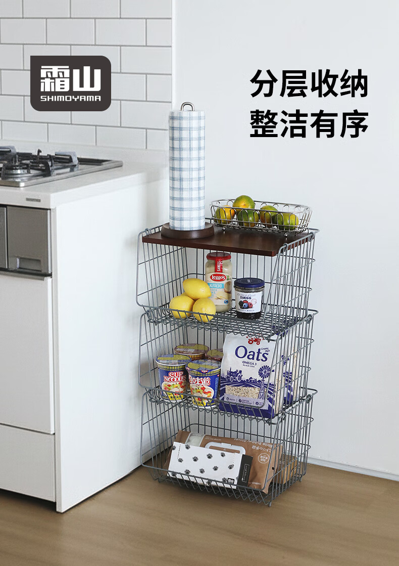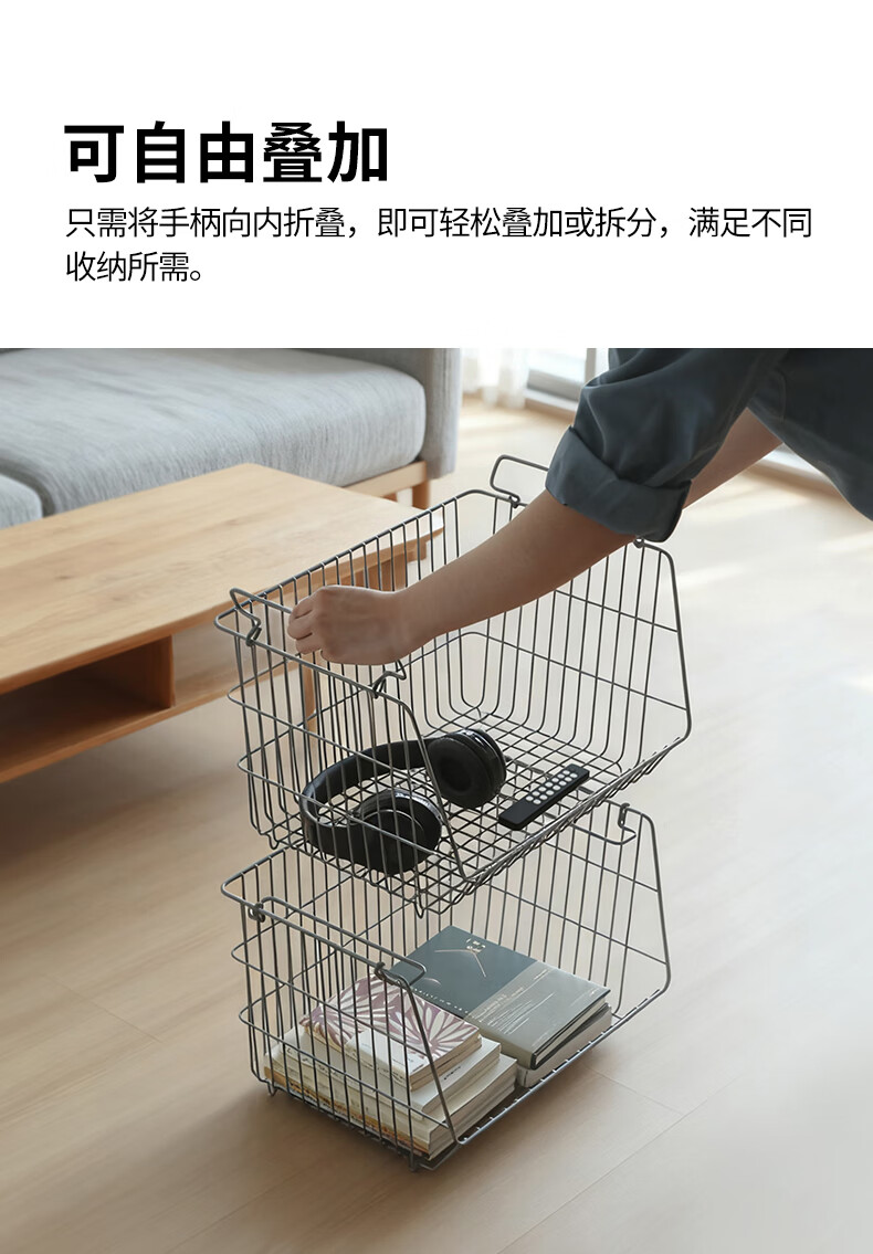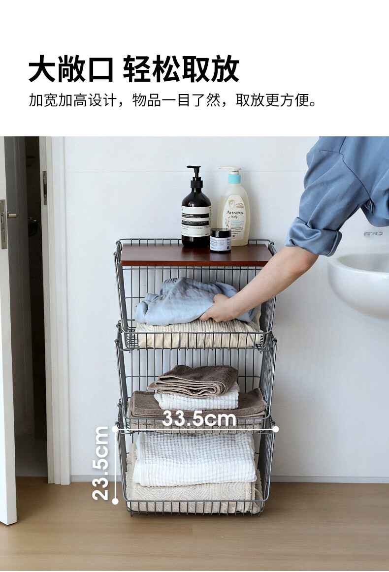 霜山河马口收纳筐可叠加浴巾衣服整理多层大容量储物篮厨房菜篮子 小号2层-面宽34.5*进深24*高39cm