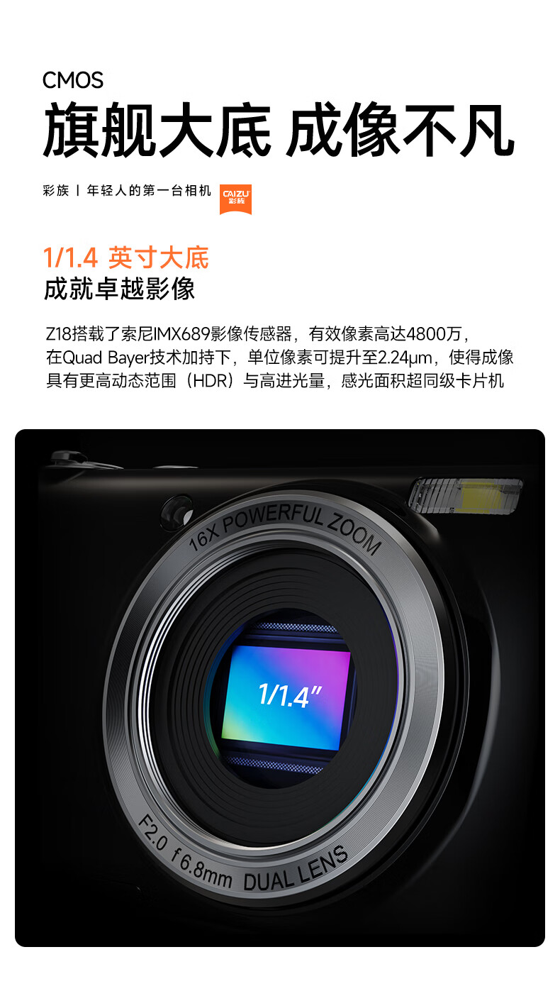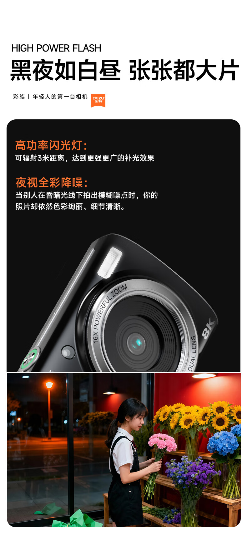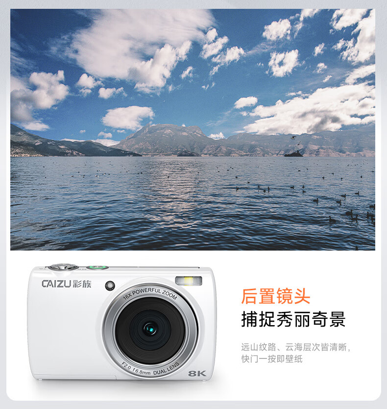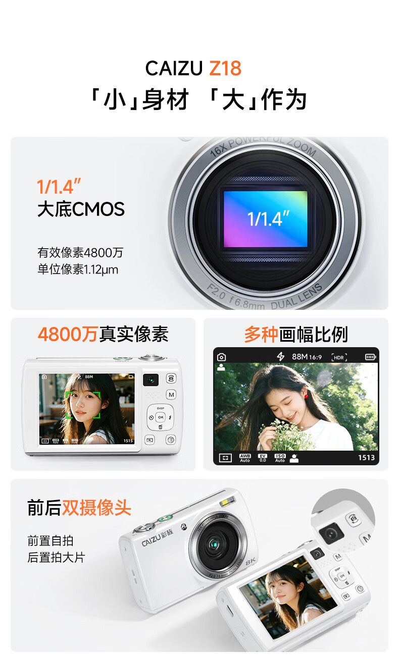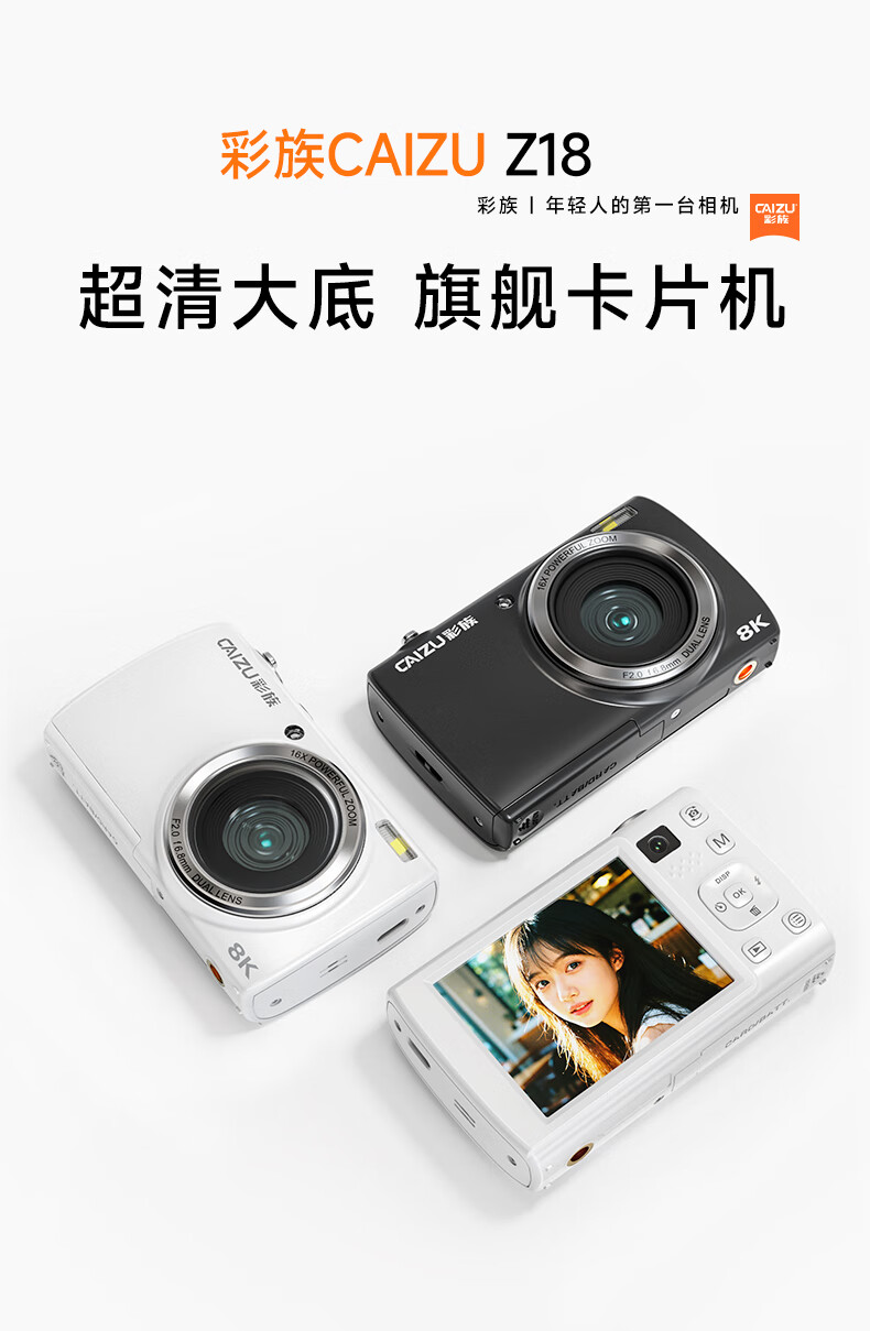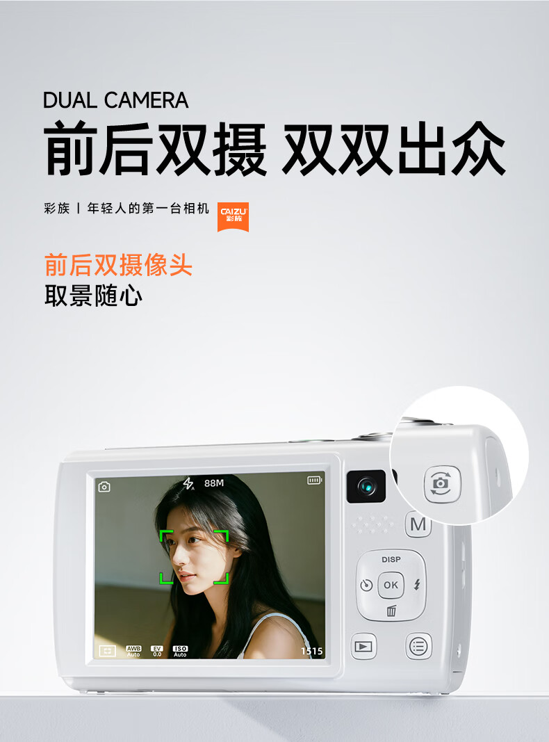 彩族(CAIZU)1.4大底影像传感器数码相机 8800万高清像素双摄自拍8K录像学生旅游摄影拍照取代ccd卡片照相机Z18