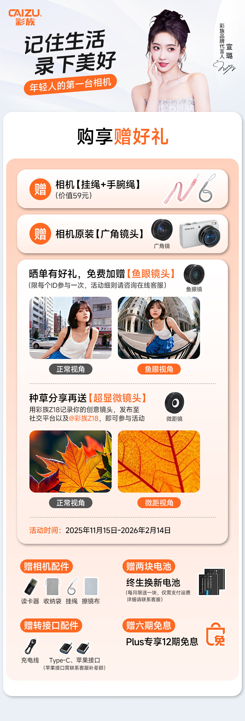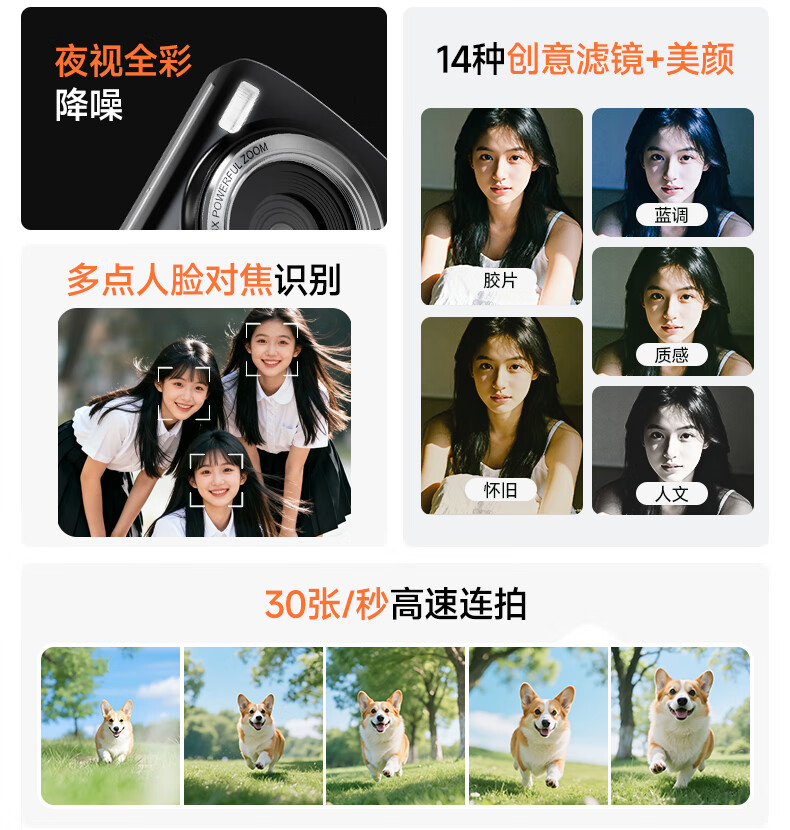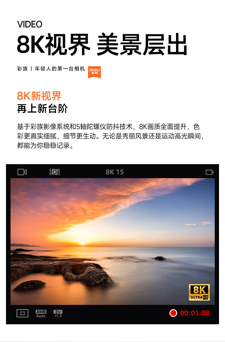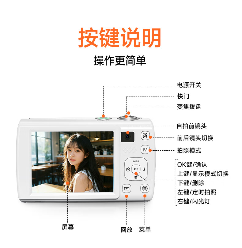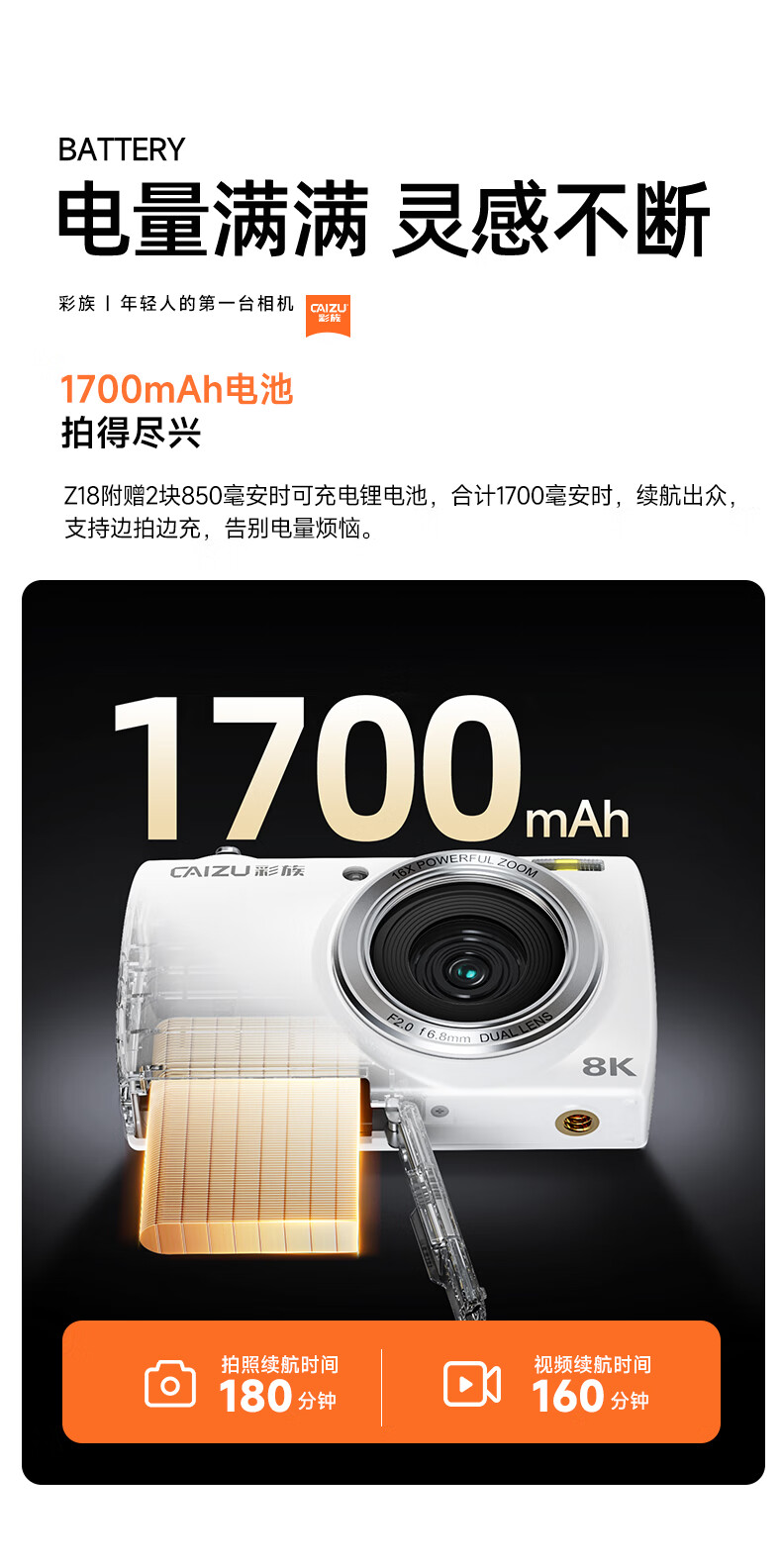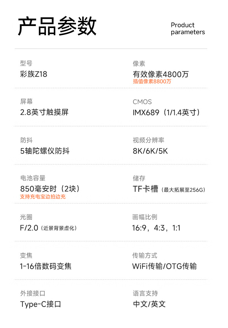 彩族(CAIZU)1.4大底影像传感器数码相机 8800万高清像素双摄自拍8K录像学生旅游摄影拍照取代ccd卡片照相机Z18