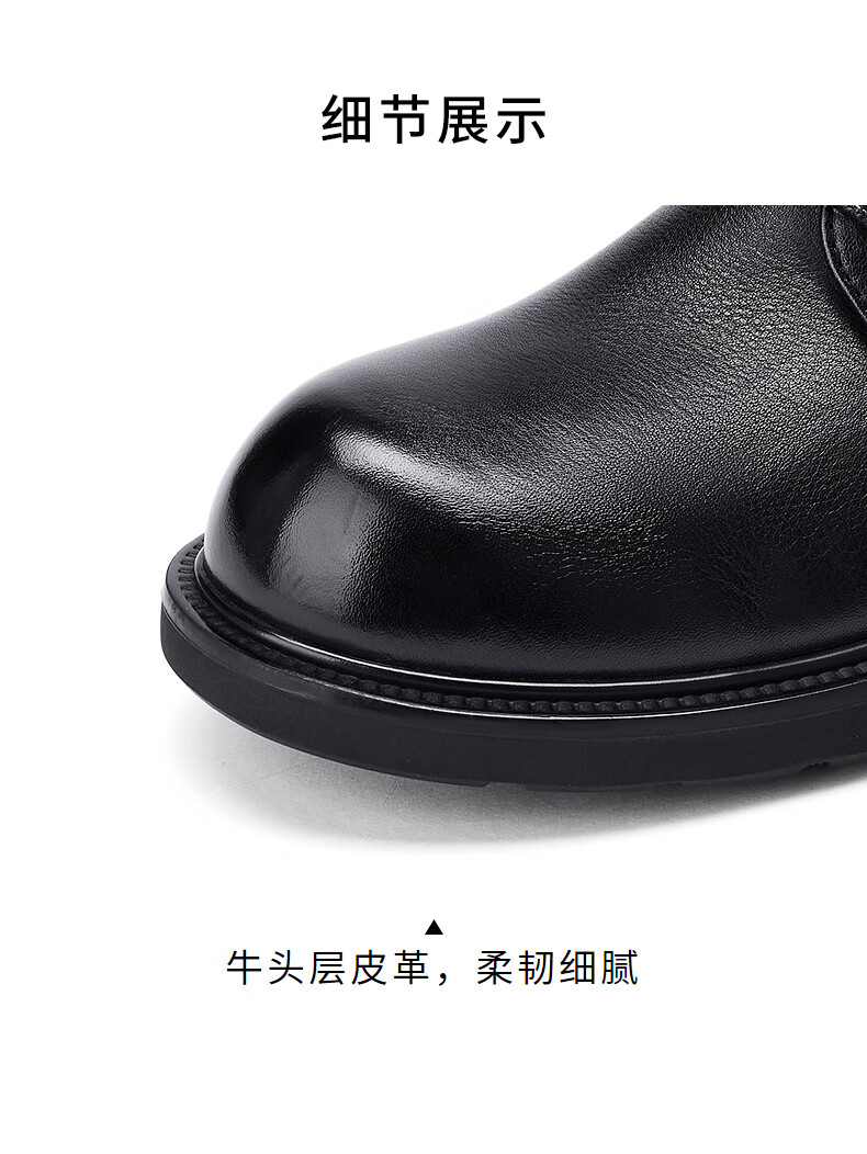 金利来(Goldlion)男鞋皮鞋男2025年秋冬新品商务正装鞋加绒厚底德比鞋男婚鞋西装鞋 黑色 39