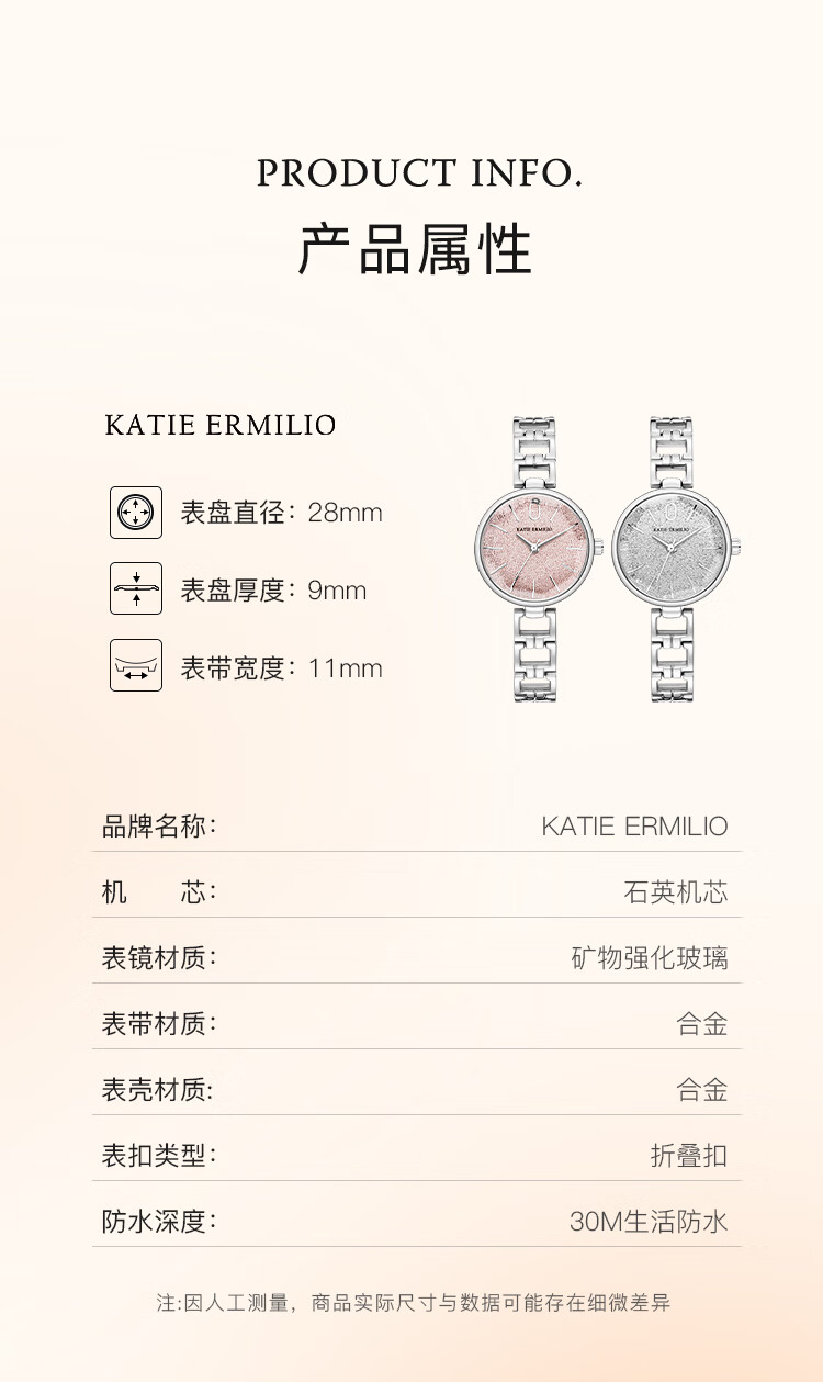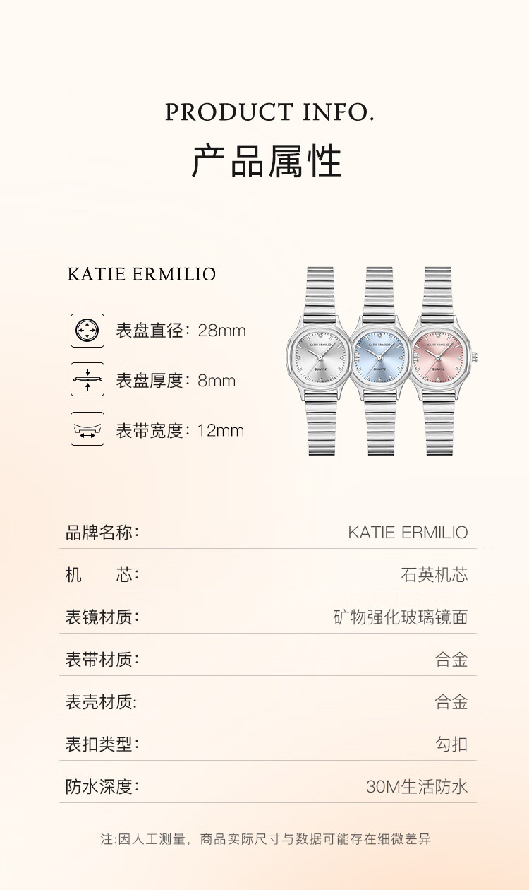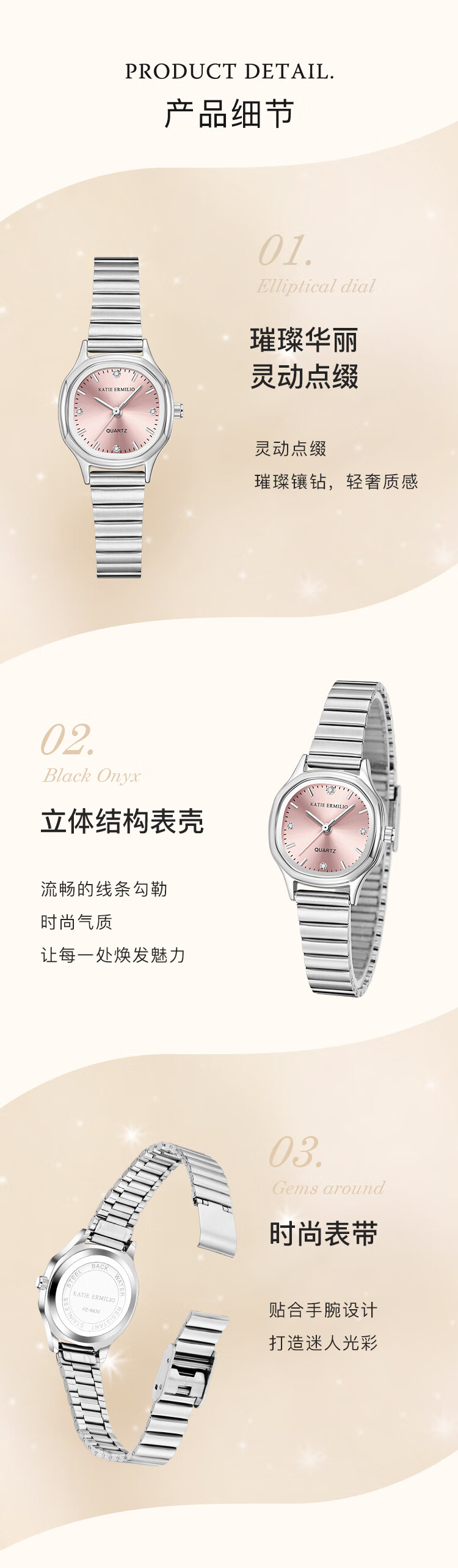 KATIE ERMILIO气质职场高颜值简约百搭手表高级感女士腕表七夕情人节礼物送女友