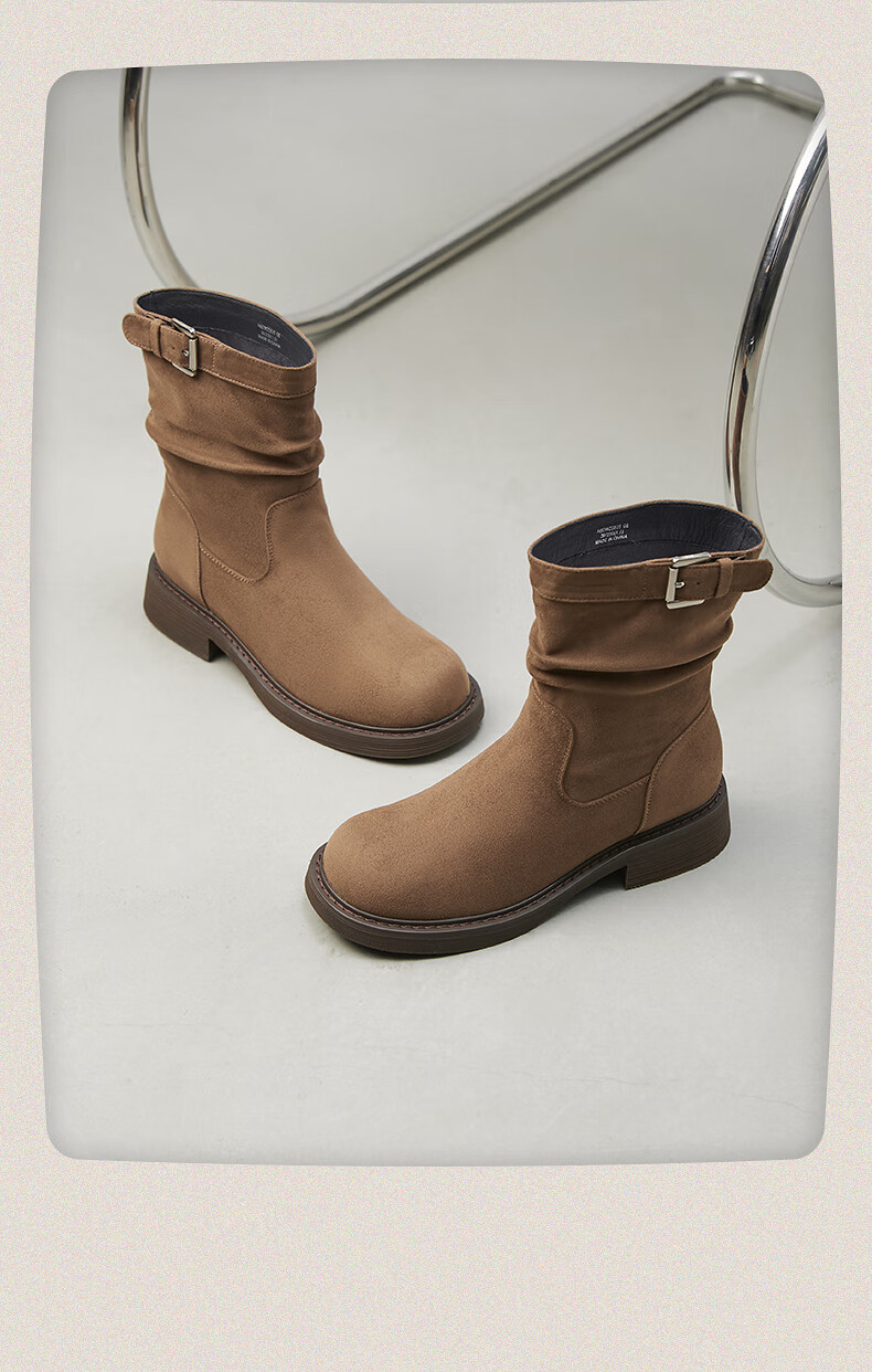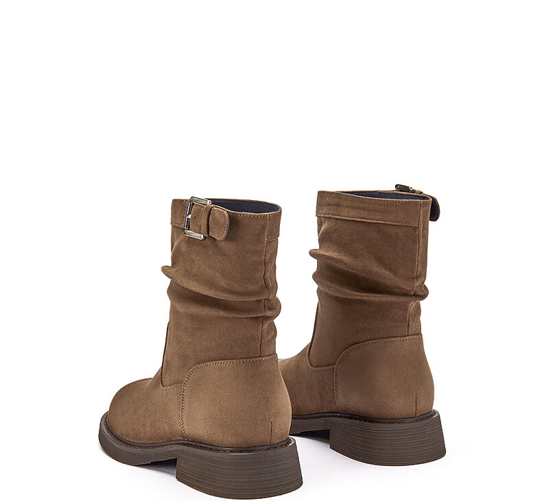 天美意西部靴粗跟百搭日常休闲一脚蹬潮流女靴2025新款KXZ15DZ5 绒面款-黄色 37