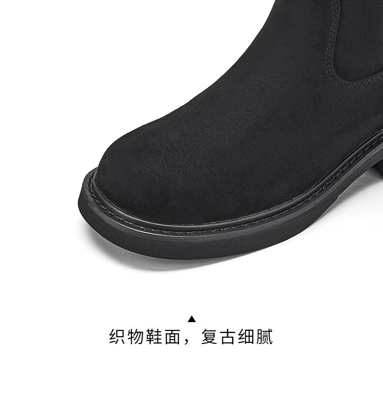 星期六(St&Sat)复古百搭轻奢时装靴女秋季新款中筒潮流牛仔靴德训靴SZSSD3116P2G 黑色 35
