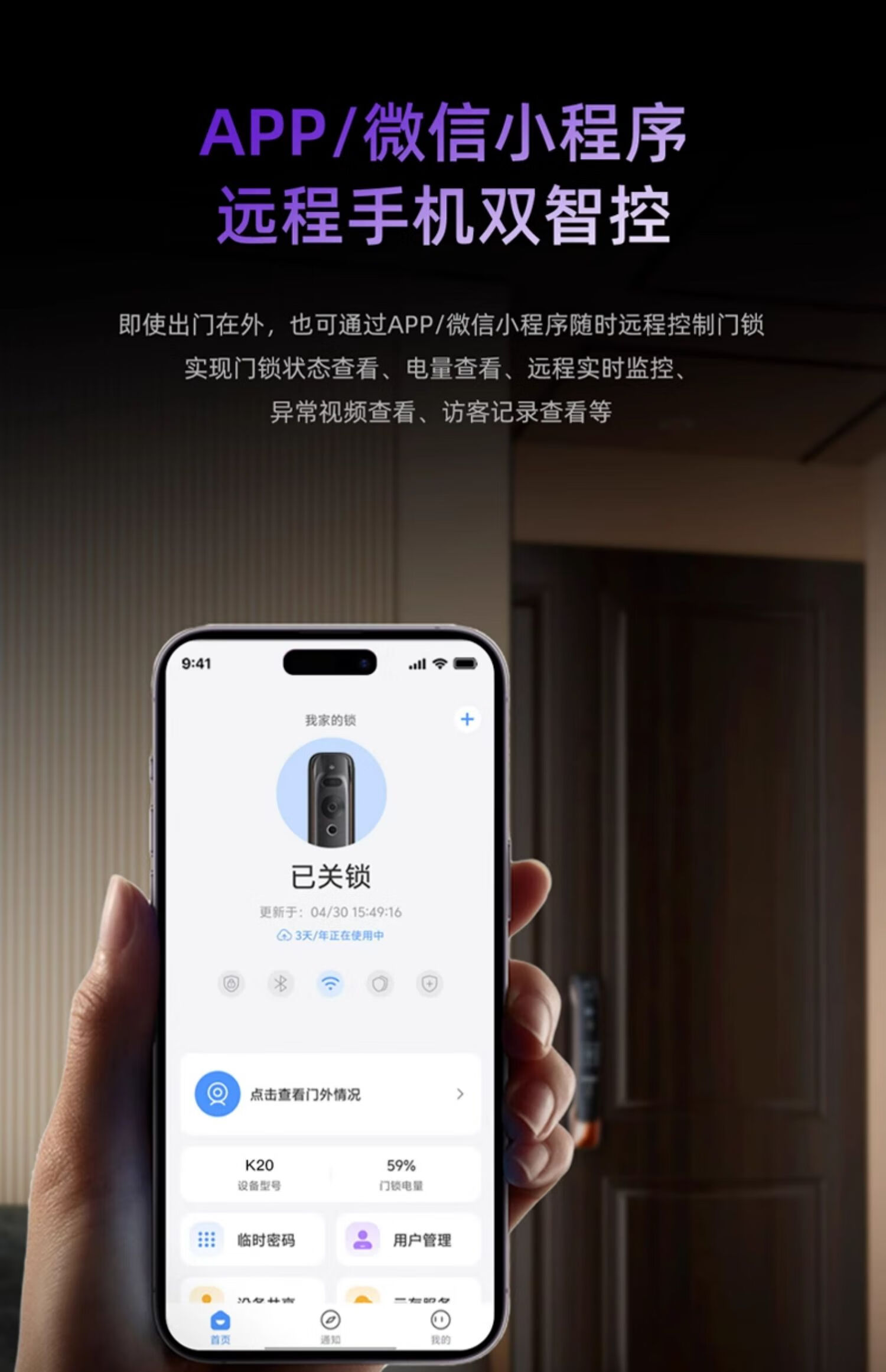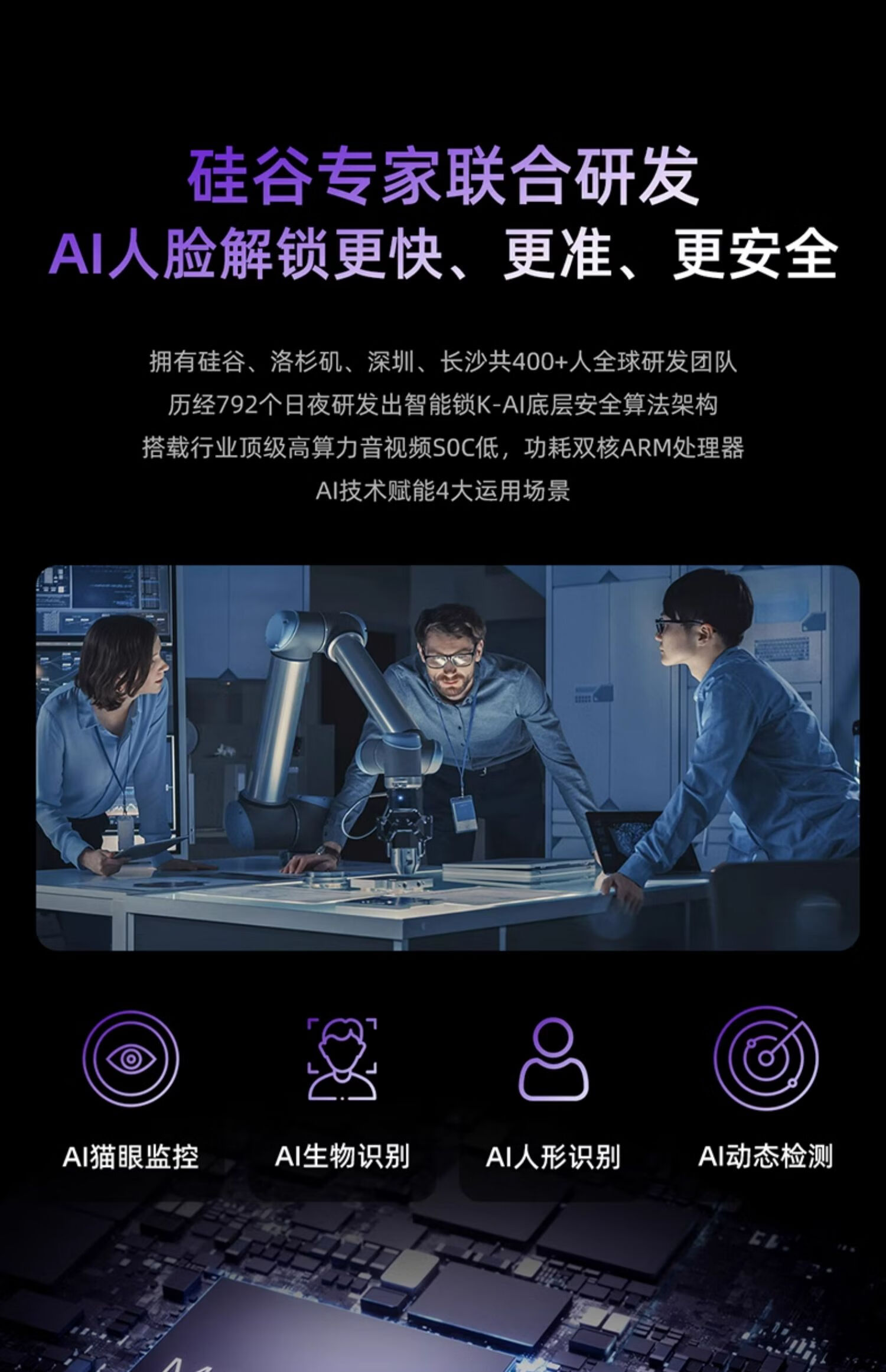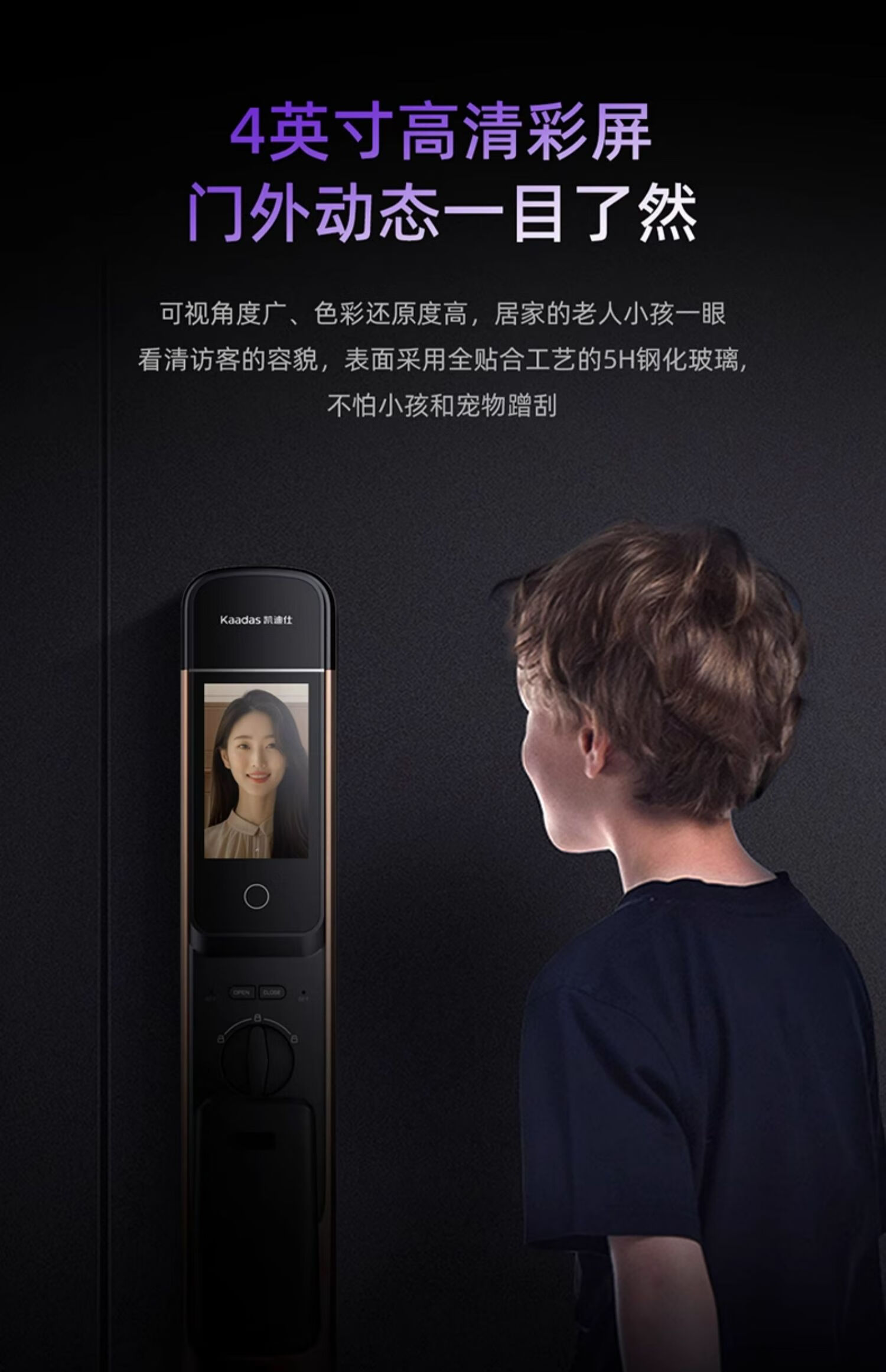 凯迪仕(kaadas)智能门锁 可视猫眼监控 大屏人脸指纹锁智能锁 传奇大师K70 新版