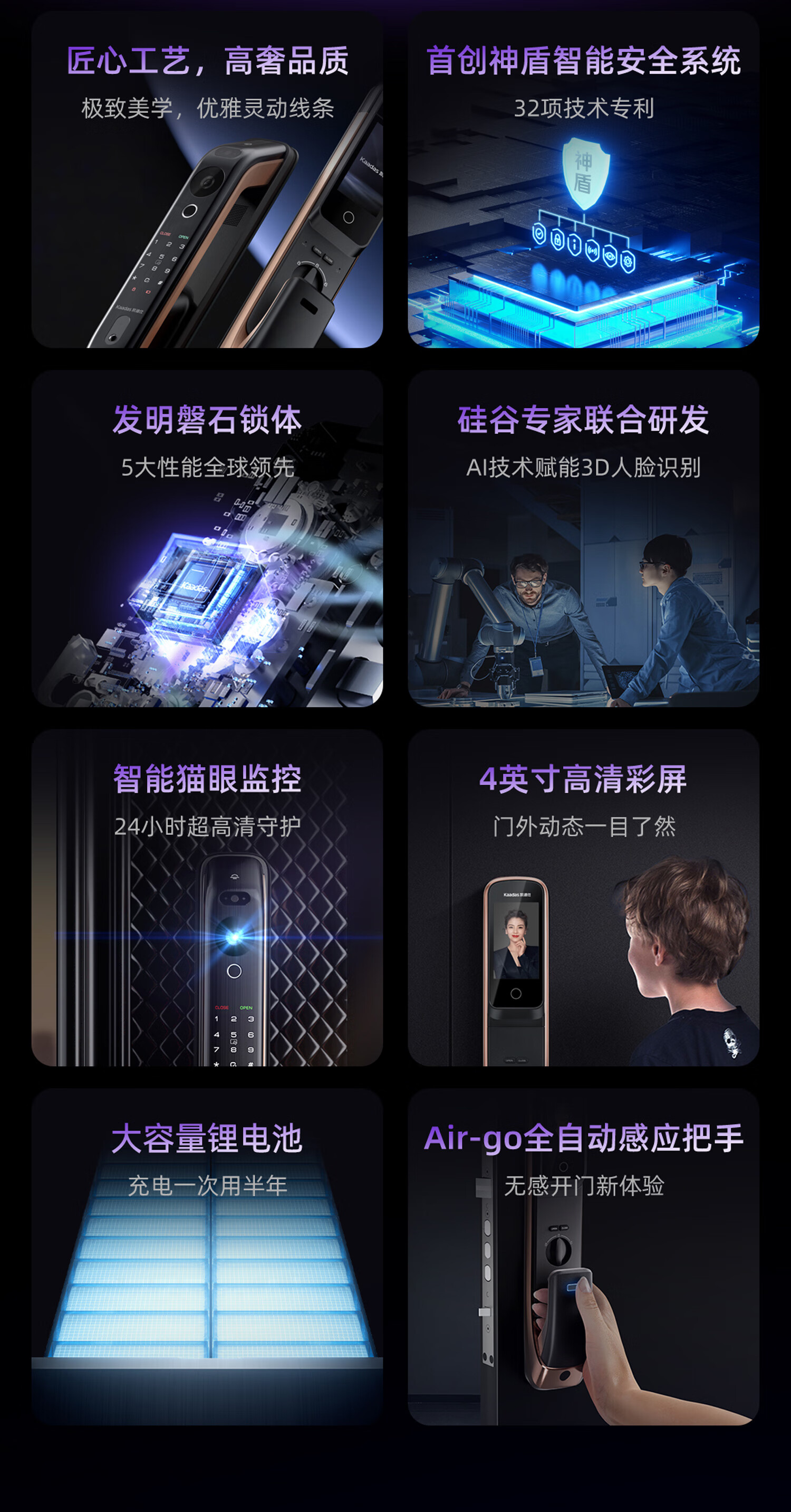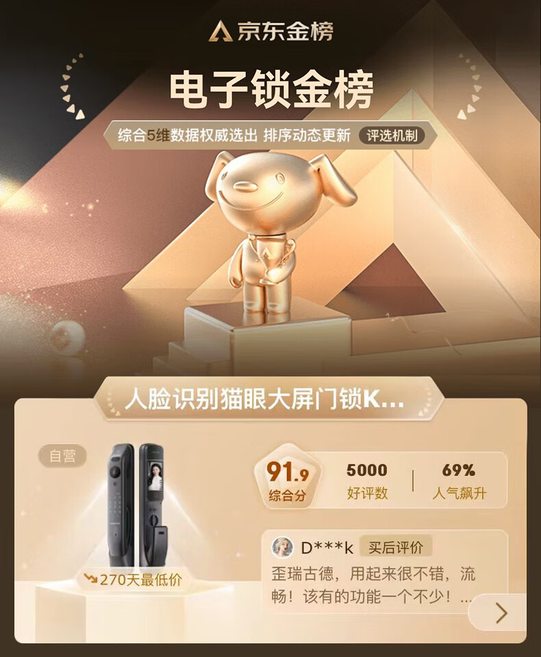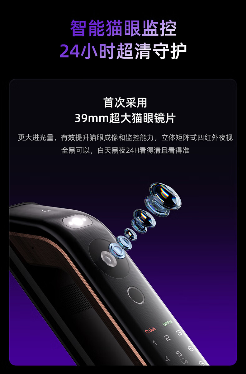 凯迪仕(kaadas)智能门锁 可视猫眼监控 大屏人脸指纹锁智能锁 传奇大师K70 新版