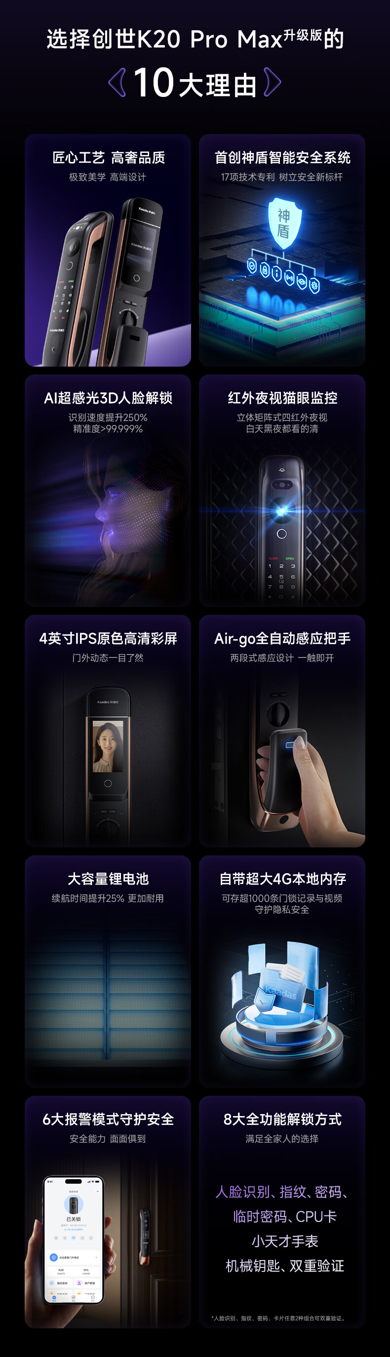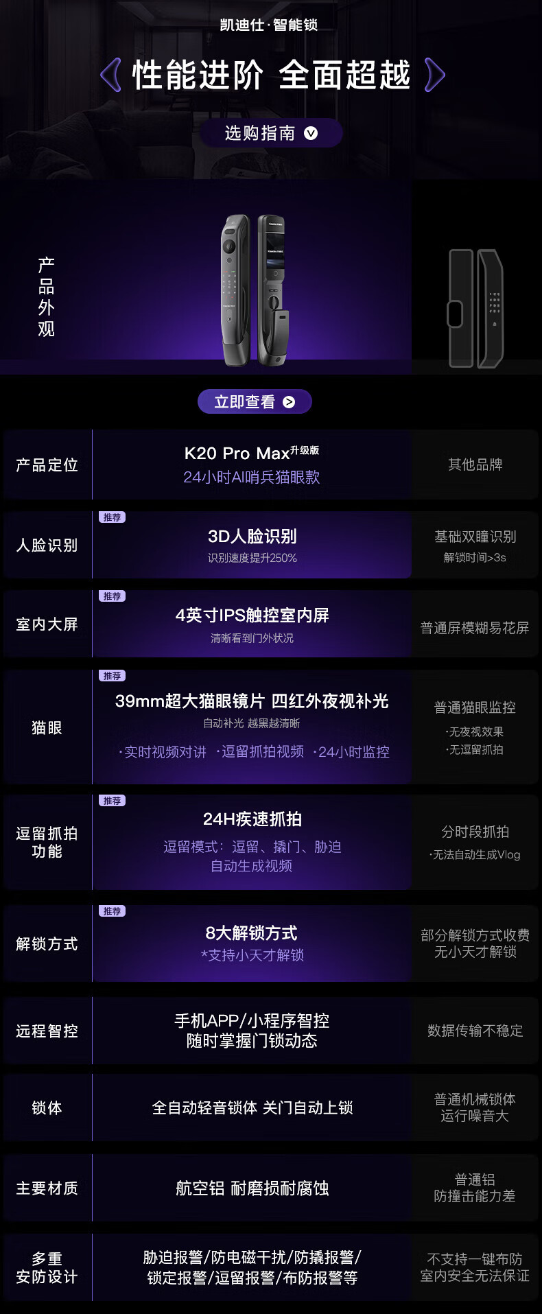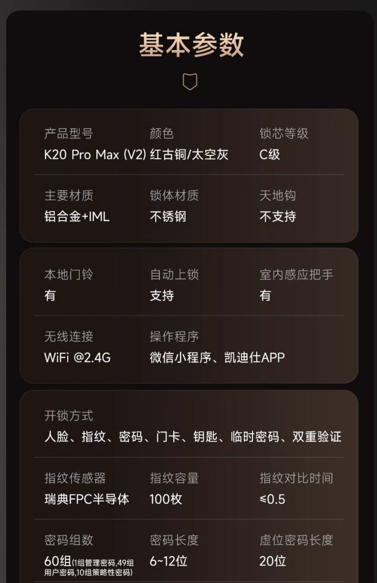 凯迪仕(kaadas)智能门锁 可视猫眼大屏人脸识别智能锁指纹锁 创世K20 Pro MaxV2