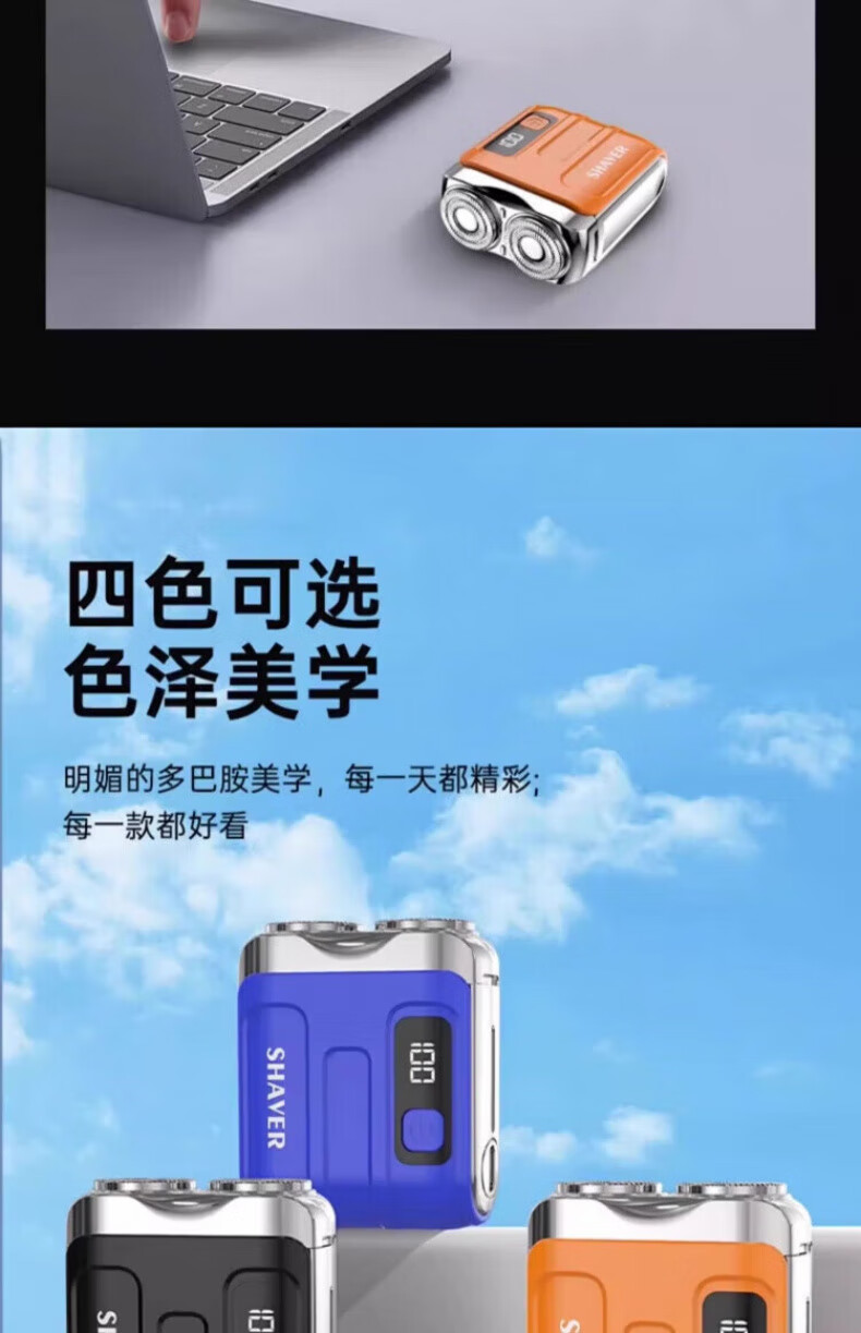 飒望【德国品牌】电动剃须刀2025新款男士不留黑点干净刮胡子刀迷你便携式小钢炮旅行车载送男友礼物 【沙漠金】12核德芯动力 12核电机/磁吸刀头
