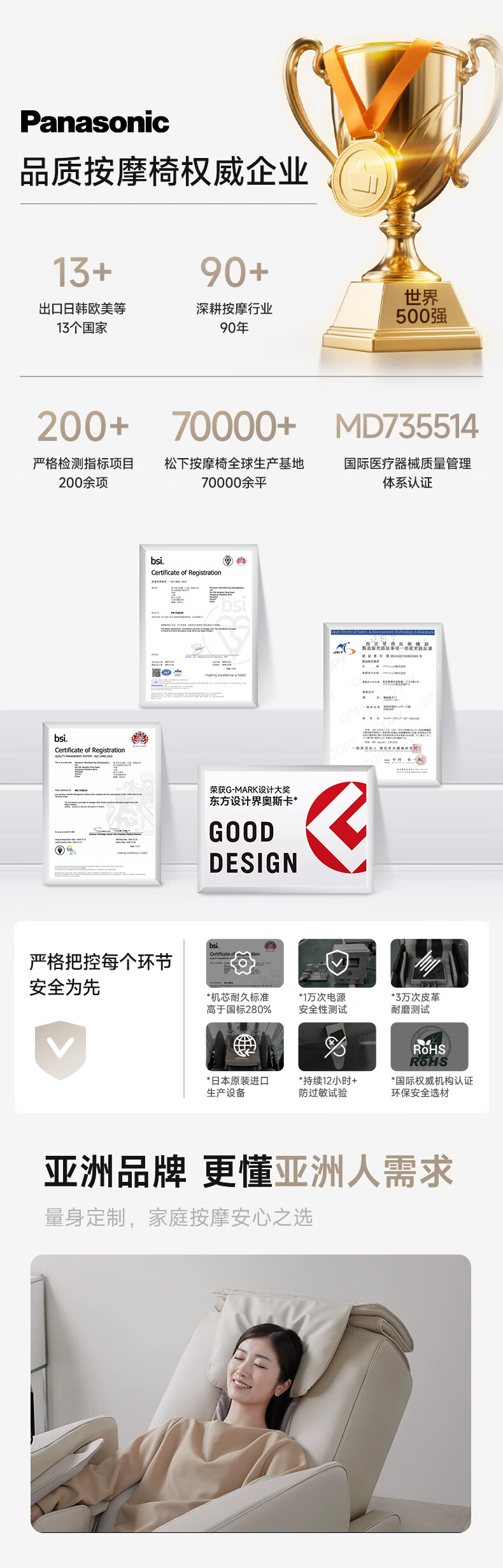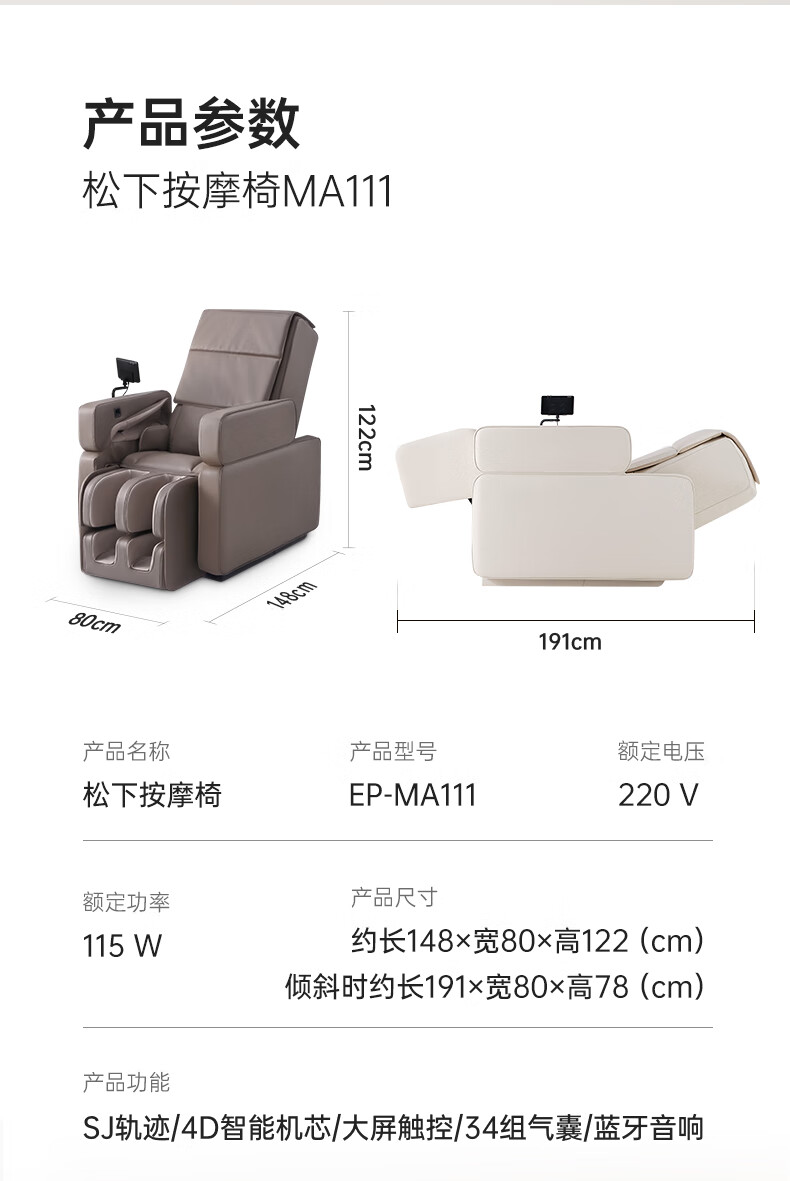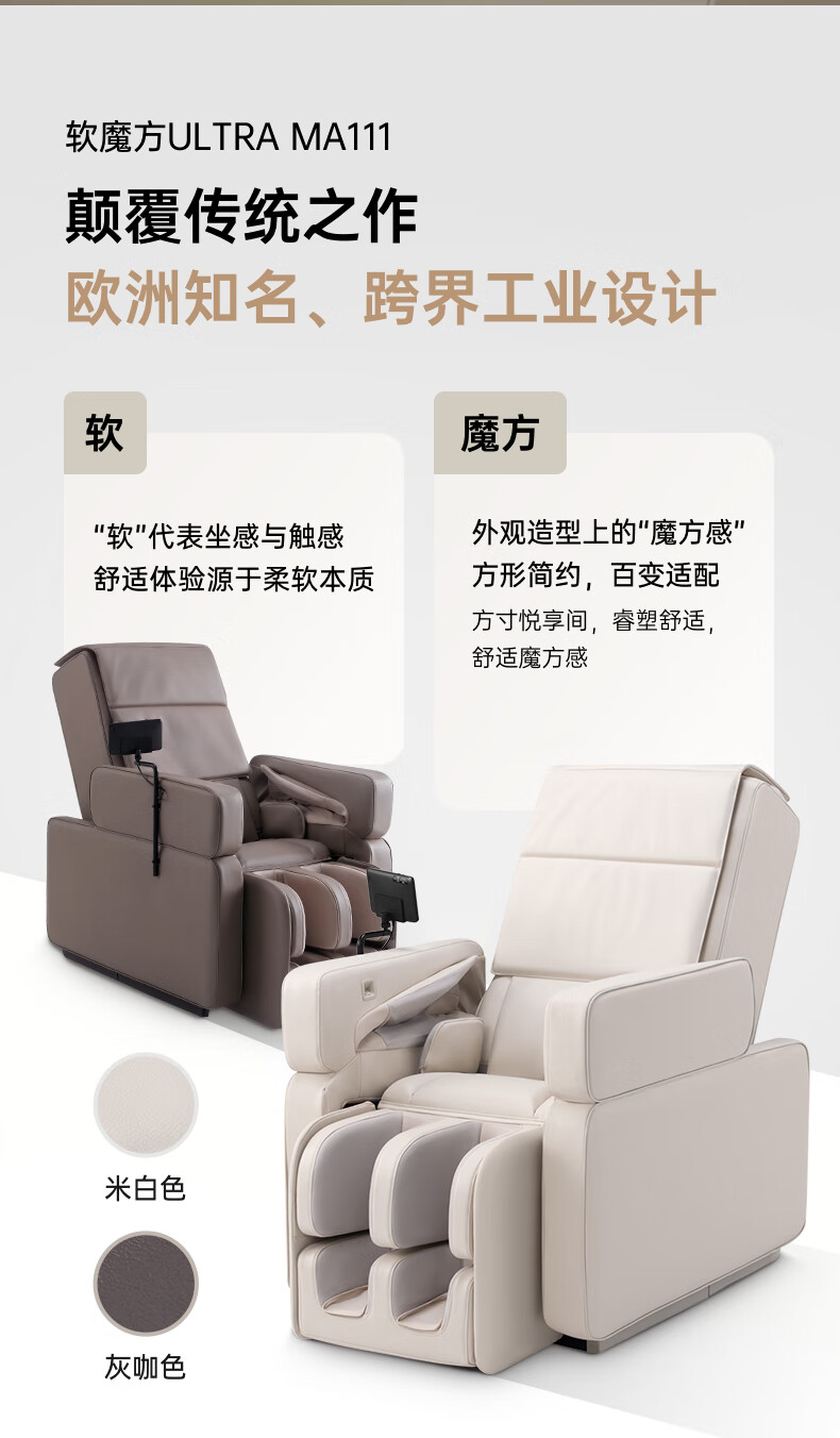 松下【重磅新品】软魔方按摩椅家用多功能全身智能高端太空舱按摩沙发电动椅子4D机芯送父母生日礼物 【4D智能机芯+34组气囊】MA111灰咖色