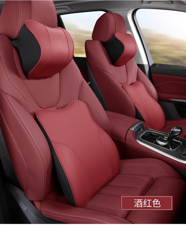 启忆梦红旗头枕腰靠护颈枕H5/HS5/H9/HS9/H7/HS7车载靠枕靠背车内饰用品 石榴红 头枕1个+腰靠1个
