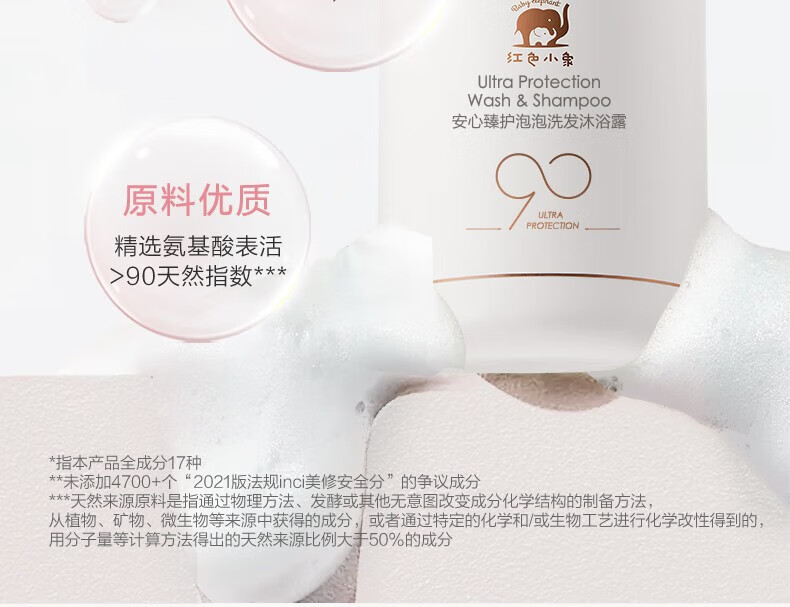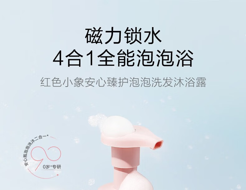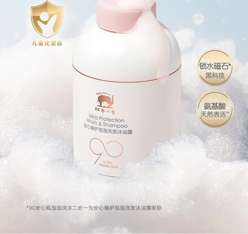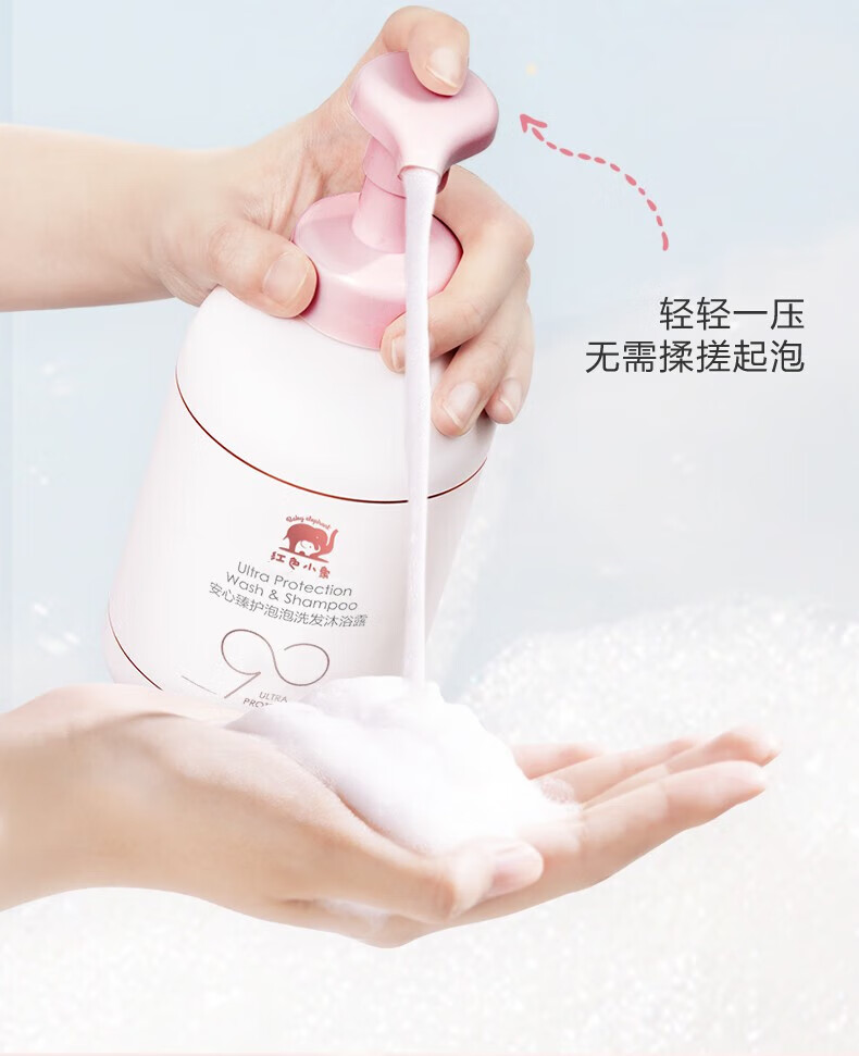 红色小象儿童婴幼儿洗发沐浴露二合一男女宝宝沐浴液无泪清爽洁净保湿护发 【90臻护泡泡洗发沐浴露500ml】