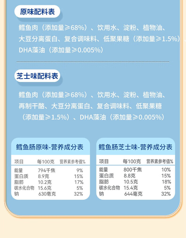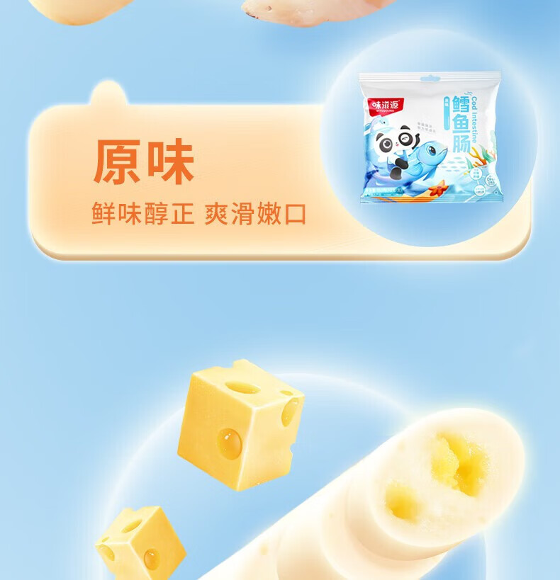 味滋源鳕鱼肠深海鳕鱼即食鱼肠火腿肠儿童孕妇营养零食添加DHA-3 1份 原味*1袋+芝士味*1袋