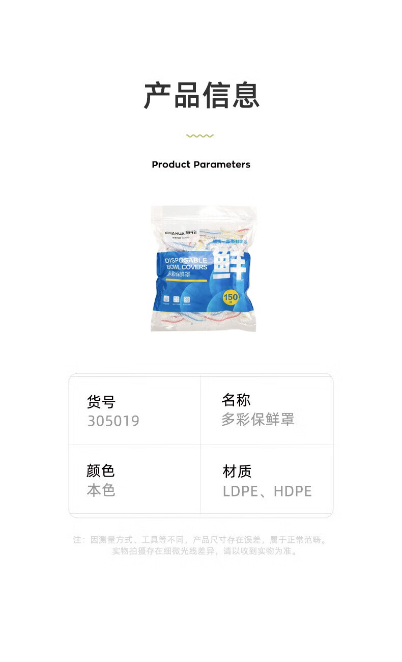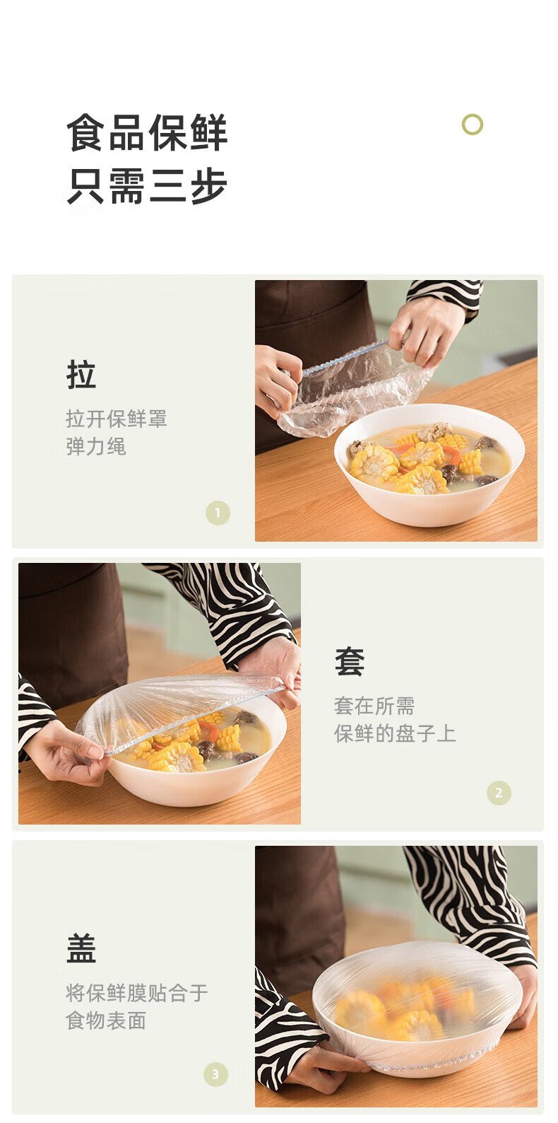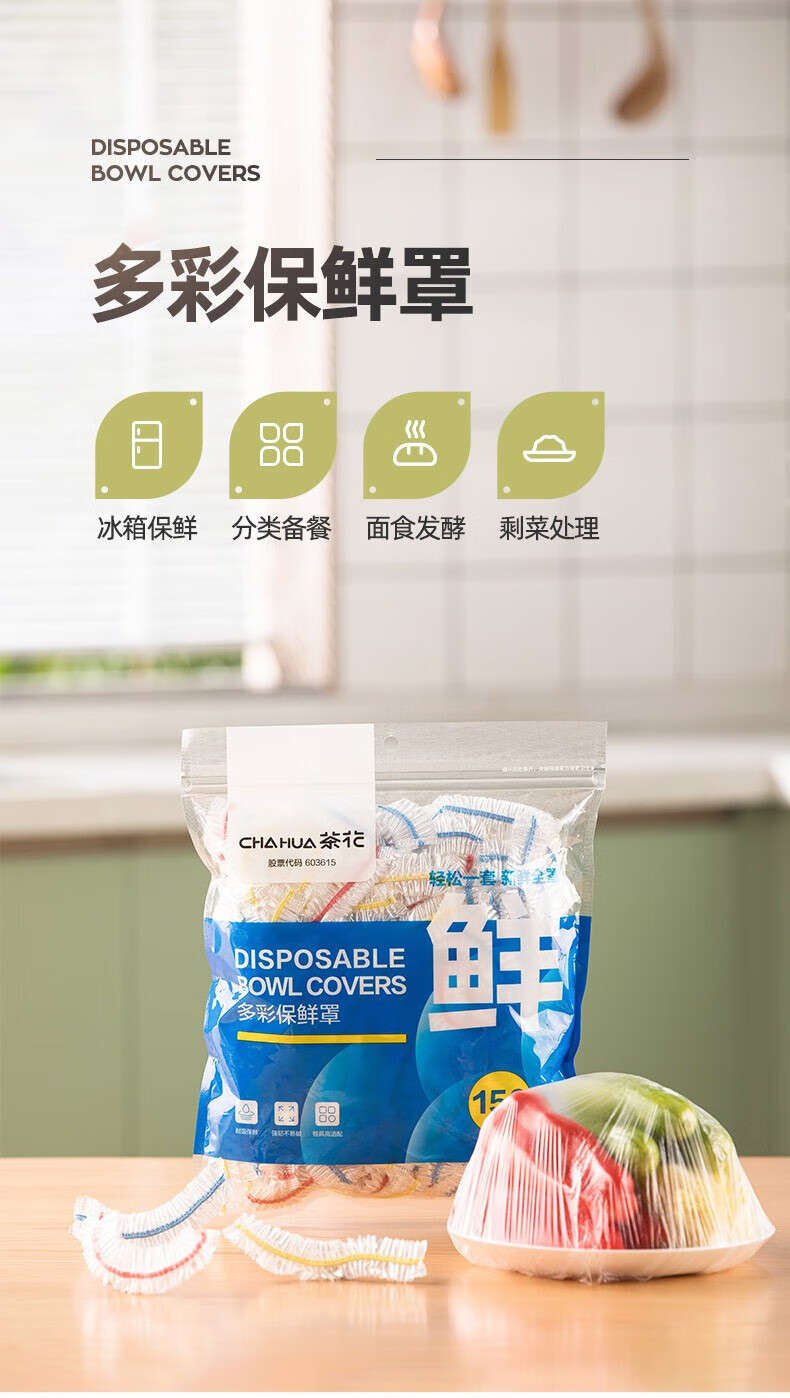 茶花保鲜罩家用冰箱剩菜专用松紧口套碗盘食品级保鲜膜套150只浴帽式