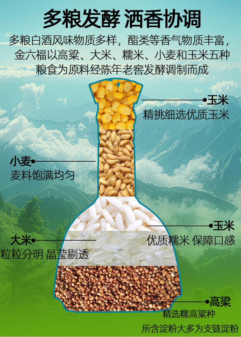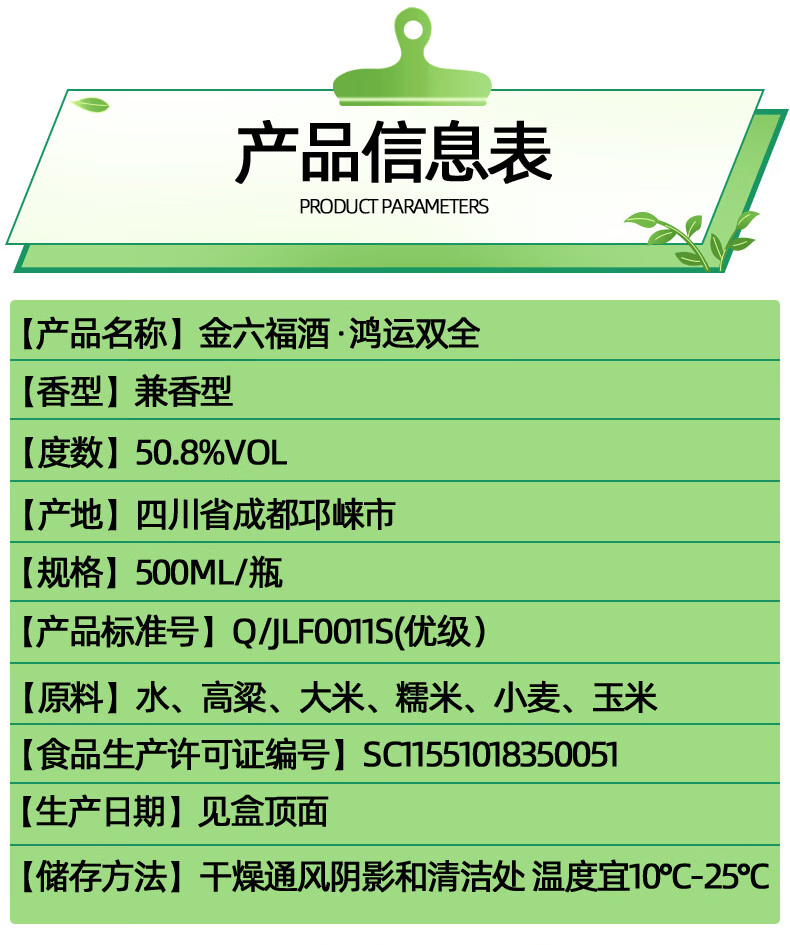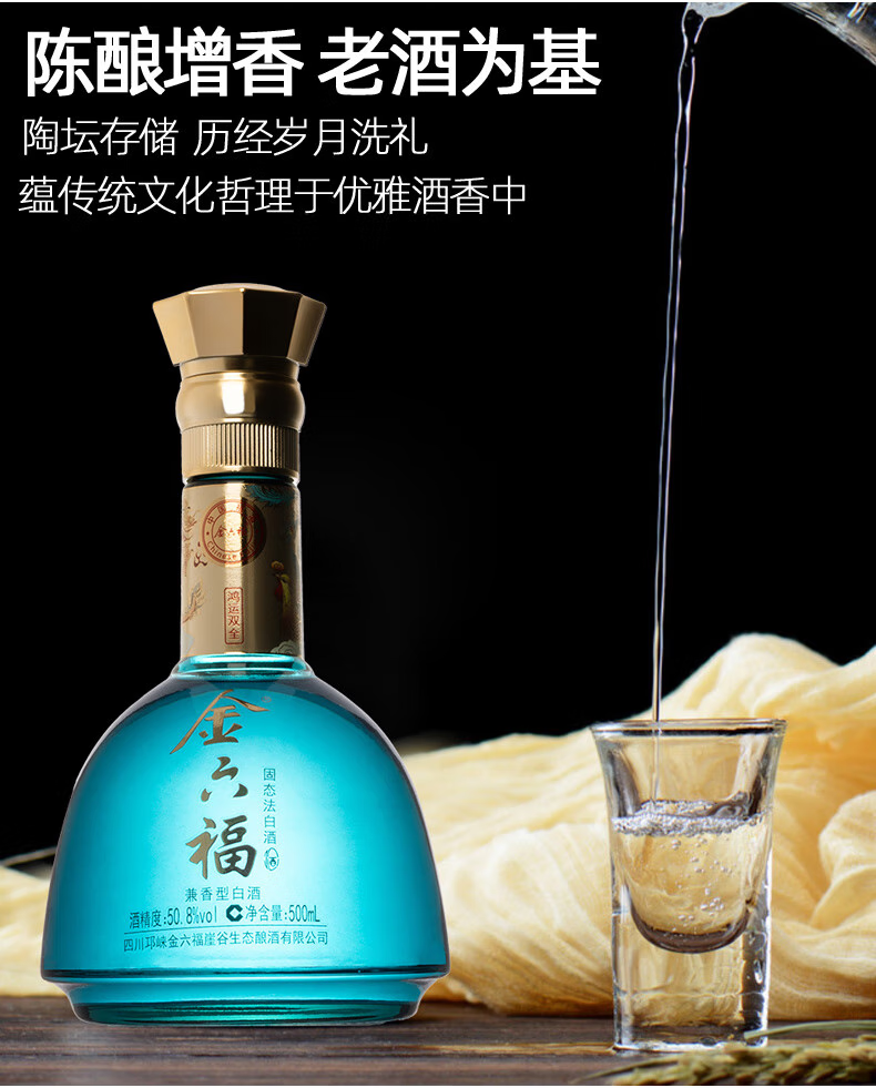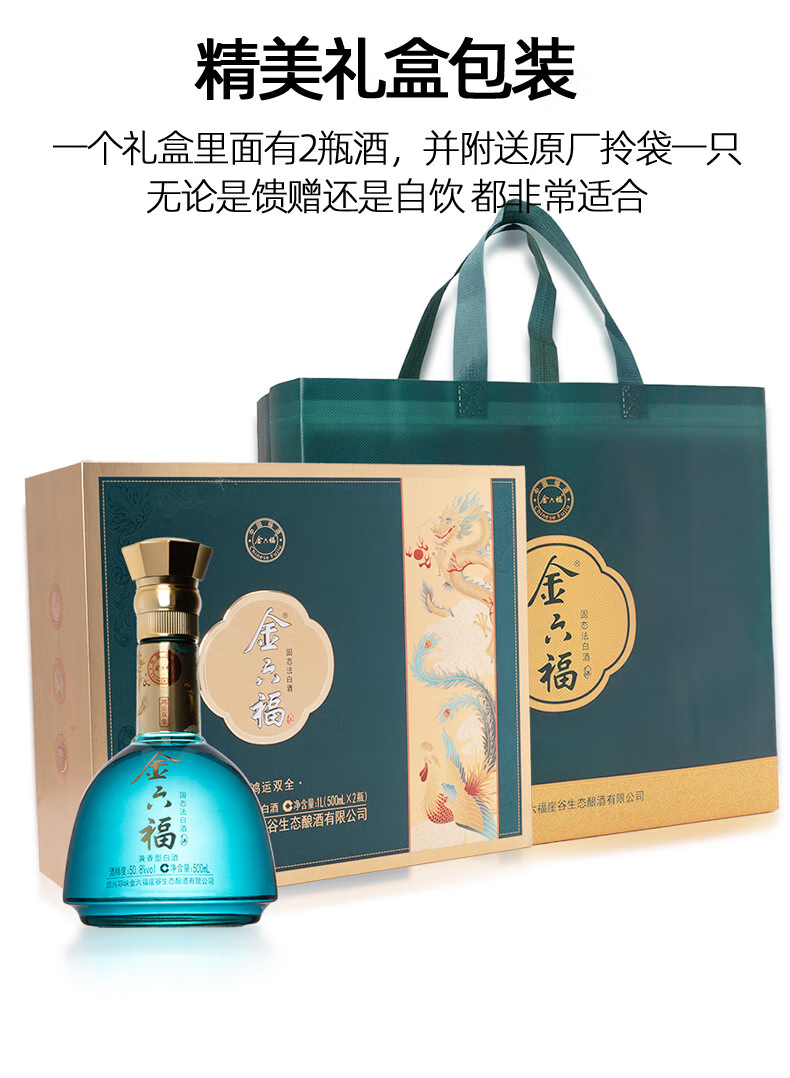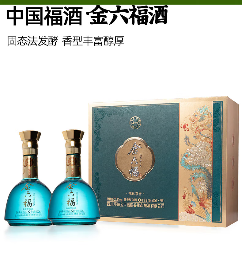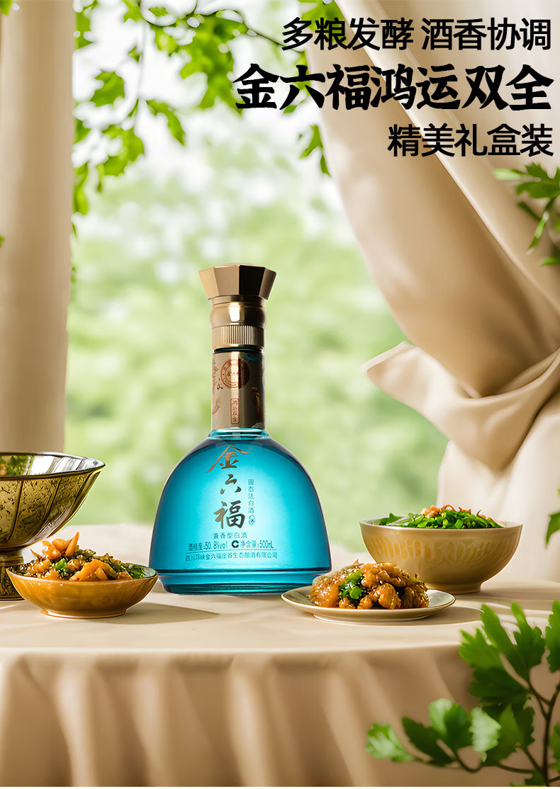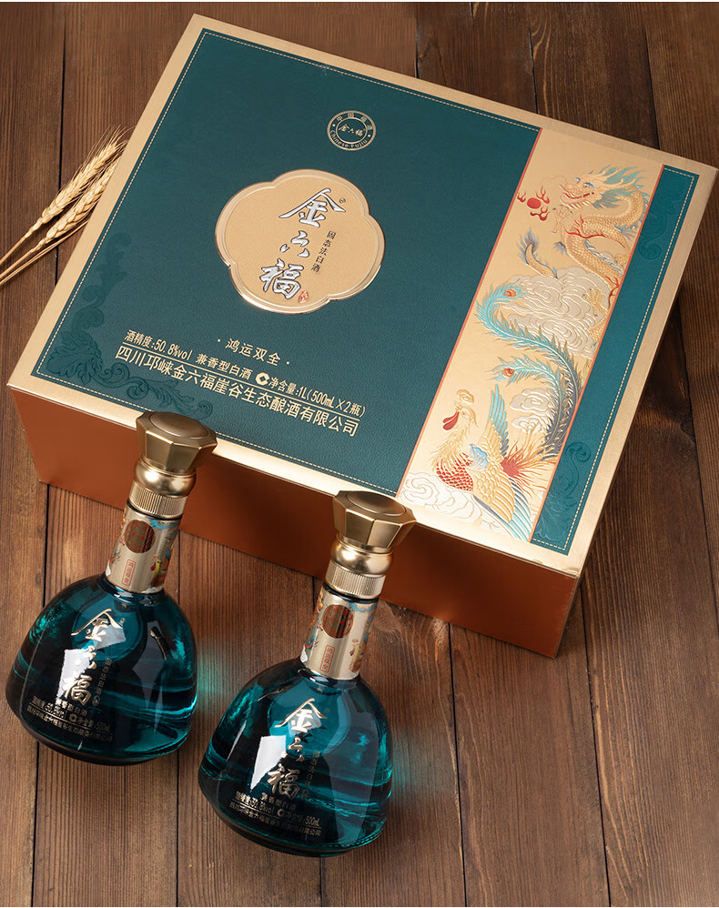 金六福鸿运双全礼盒装 兼香型白酒 50.8度 500mL 6瓶