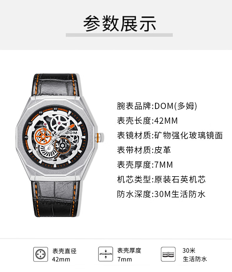 DOM超跑型男手表男士机械风石英夜光运动潮流品牌十大名表礼物送男友