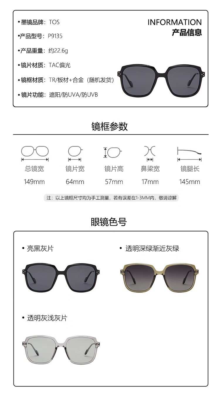 TOSGM墨镜女男太阳镜眼镜偏光防紫外线晒高级感2024新款迪丽热巴同款