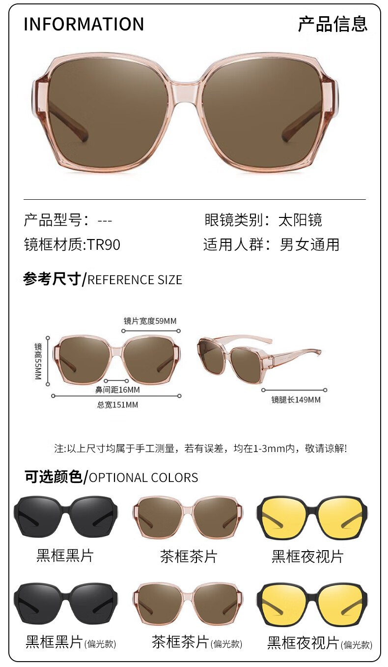 白小奢墨镜套近视眼镜 茶框茶片 墨镜男女款 开车防紫外线太阳偏光镜