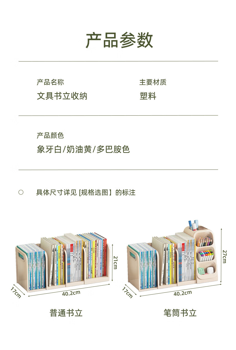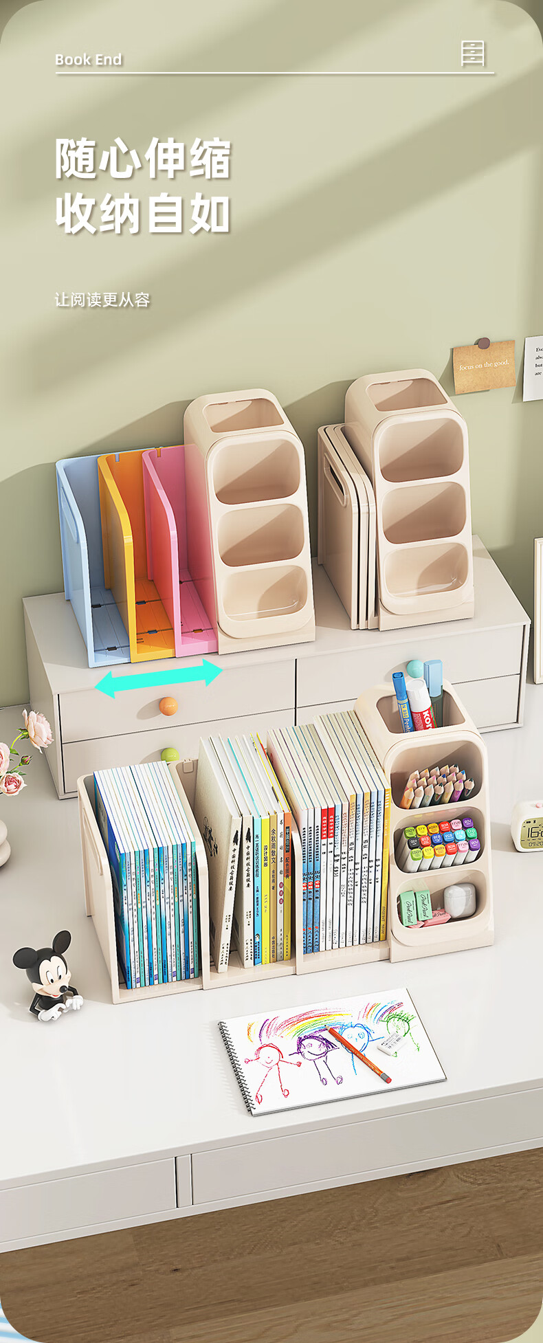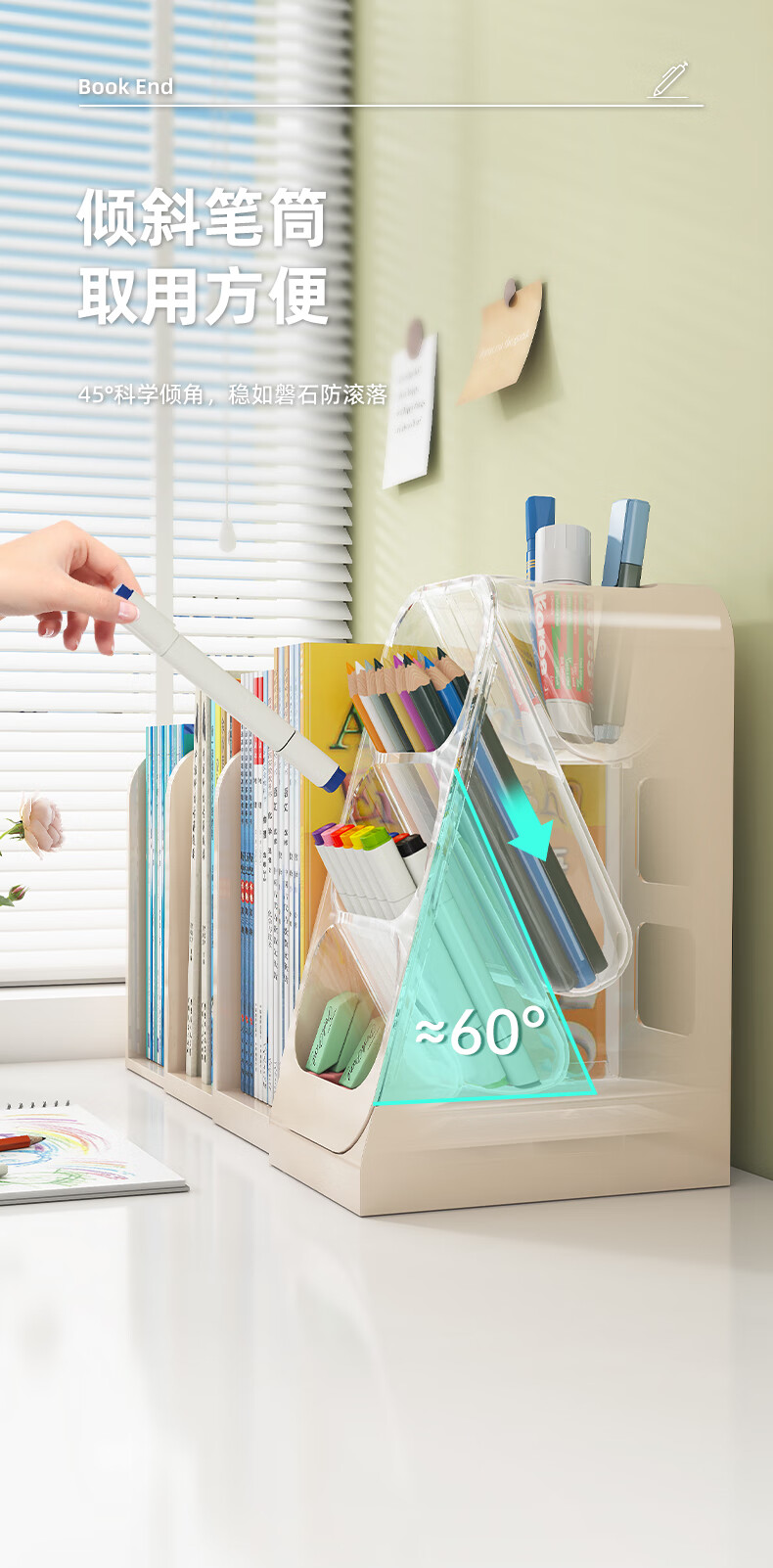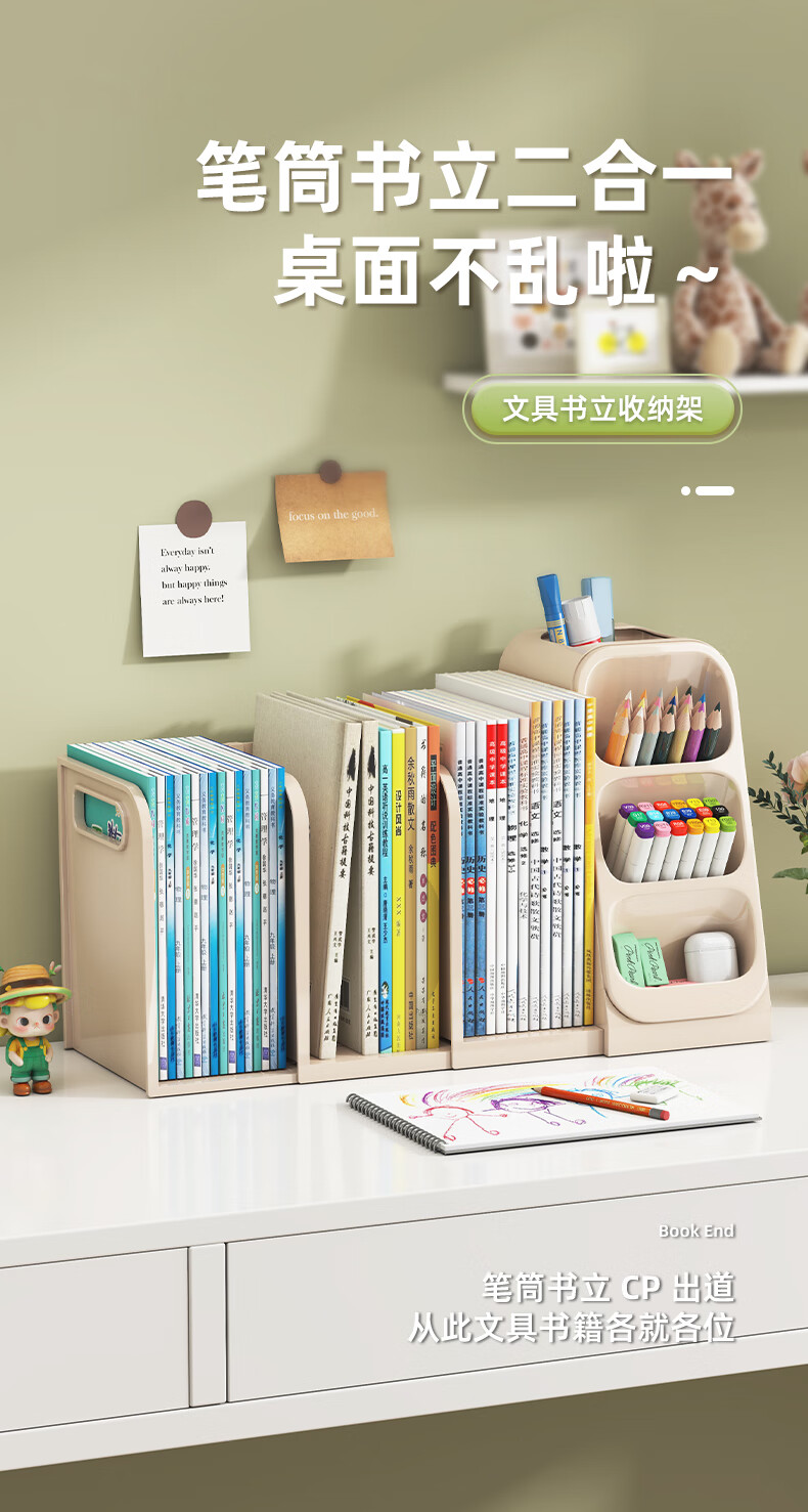纳份爱学生桌面收纳盒桌上书立书架儿童书桌文具收纳置物架课桌斜插笔筒 奶油白-1个装【可伸缩丨笔筒+书立一体】 大容量丨自由分区收纳
