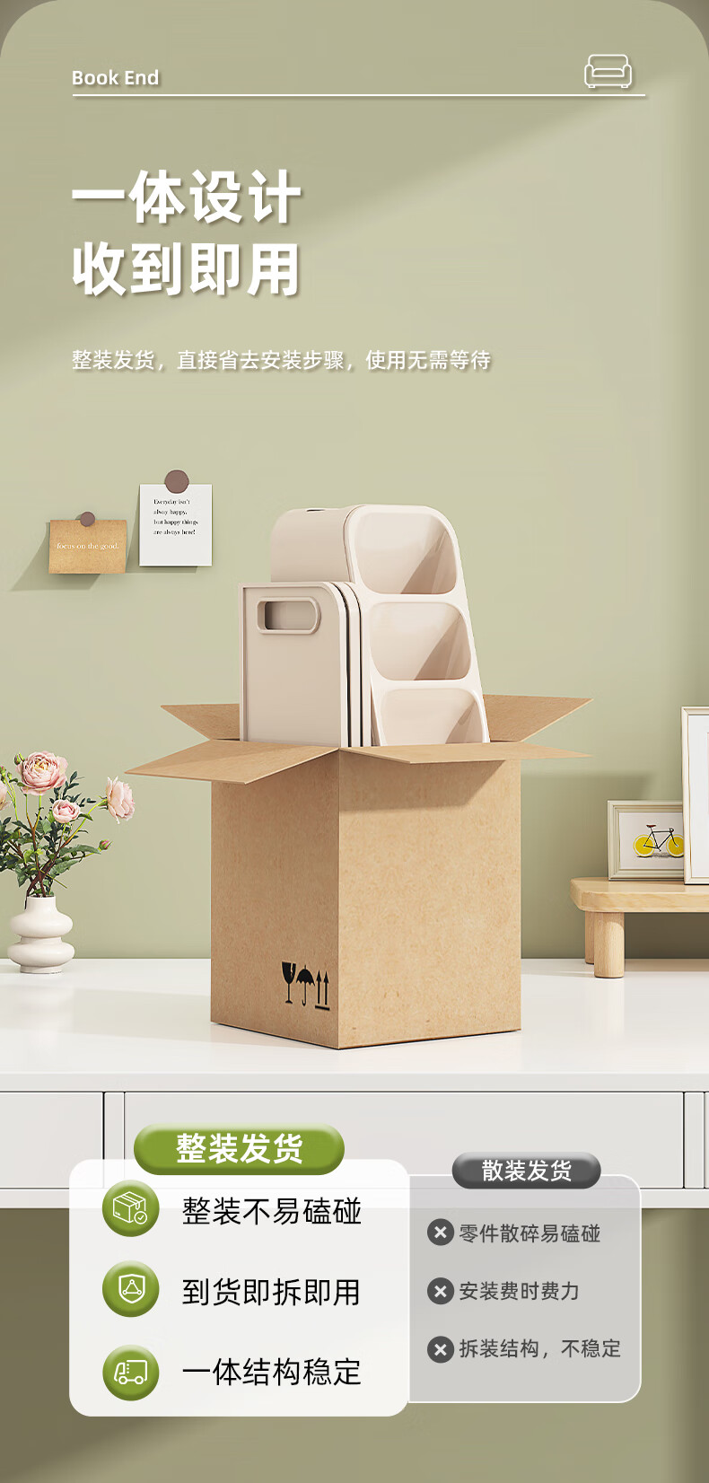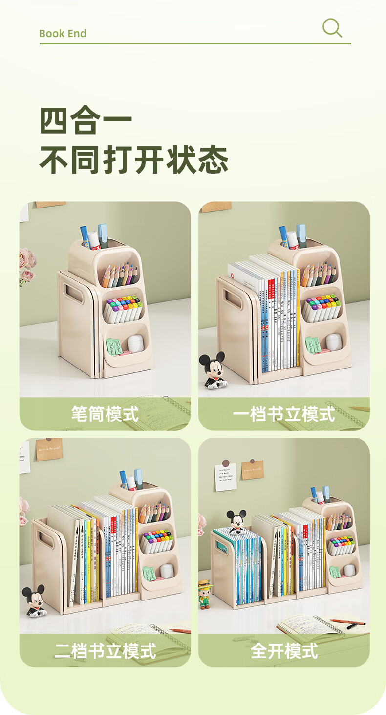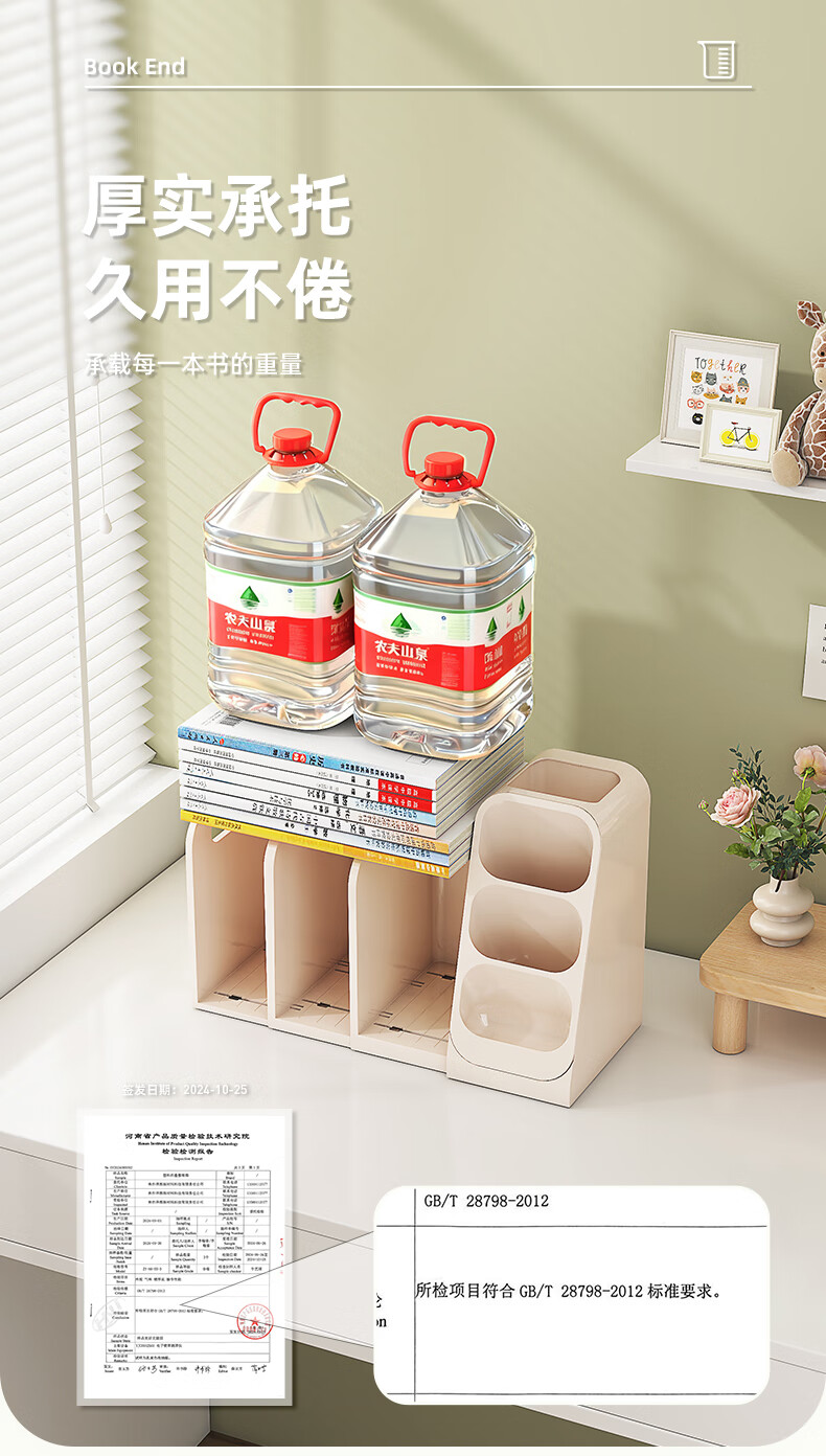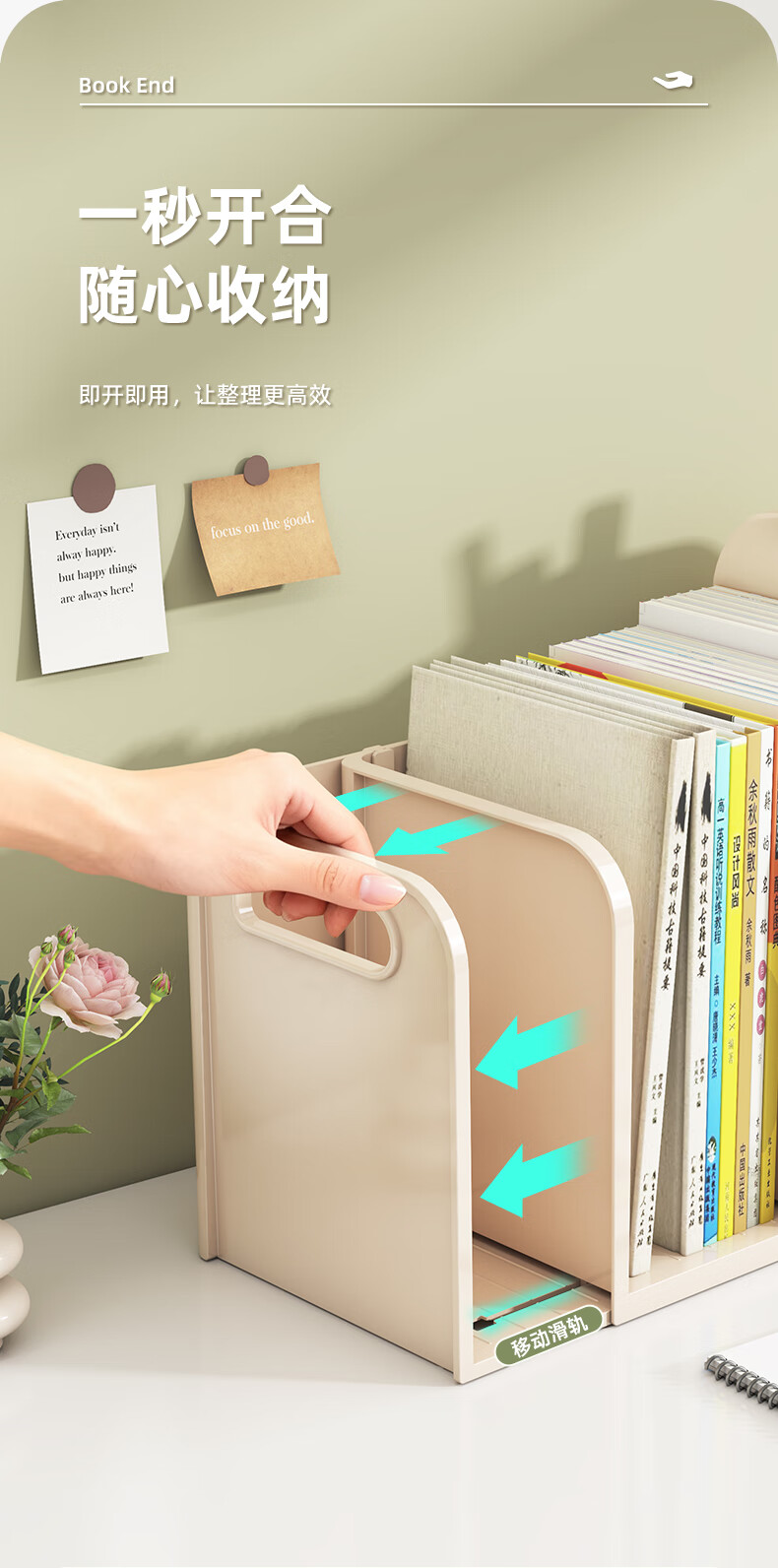 纳份爱学生桌面收纳盒桌上书立书架儿童书桌文具收纳置物架课桌斜插笔筒 奶油白-1个装【可伸缩丨笔筒+书立一体】 大容量丨自由分区收纳