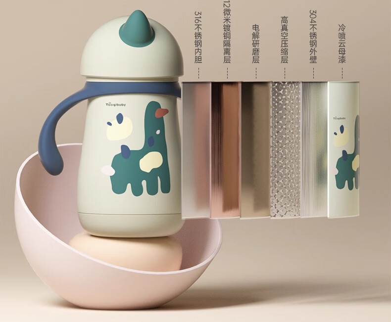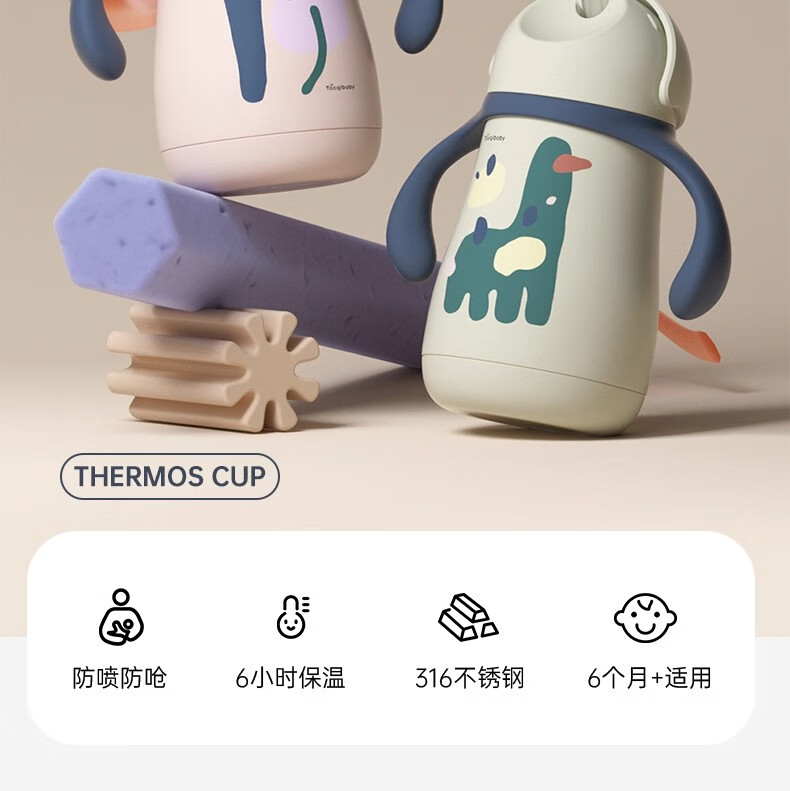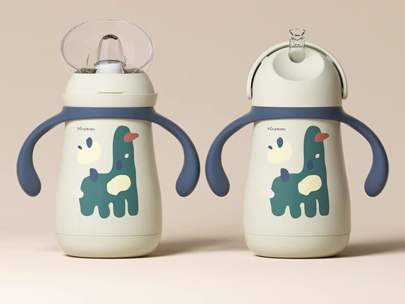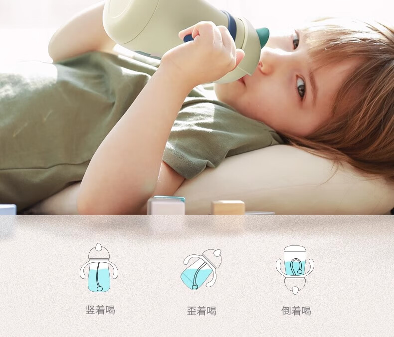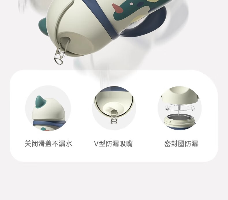DEATKN德国婴幼儿防呛鸭嘴保温杯一岁以上宝宝学饮儿童外出奶瓶吸管水杯 青芥绿(吸管杯+背带+鸭嘴) 360ml