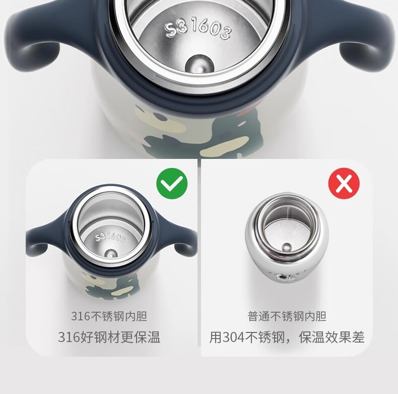 DEATKN德国高端儿童保温杯上学女生高颜值316双饮吸管水杯一年级小学生 316锁温库洛米【一盖双饮】 500ml