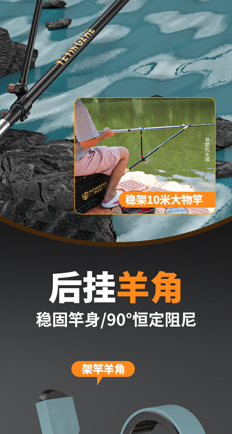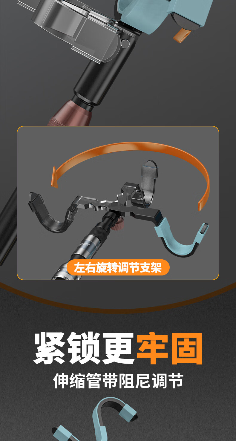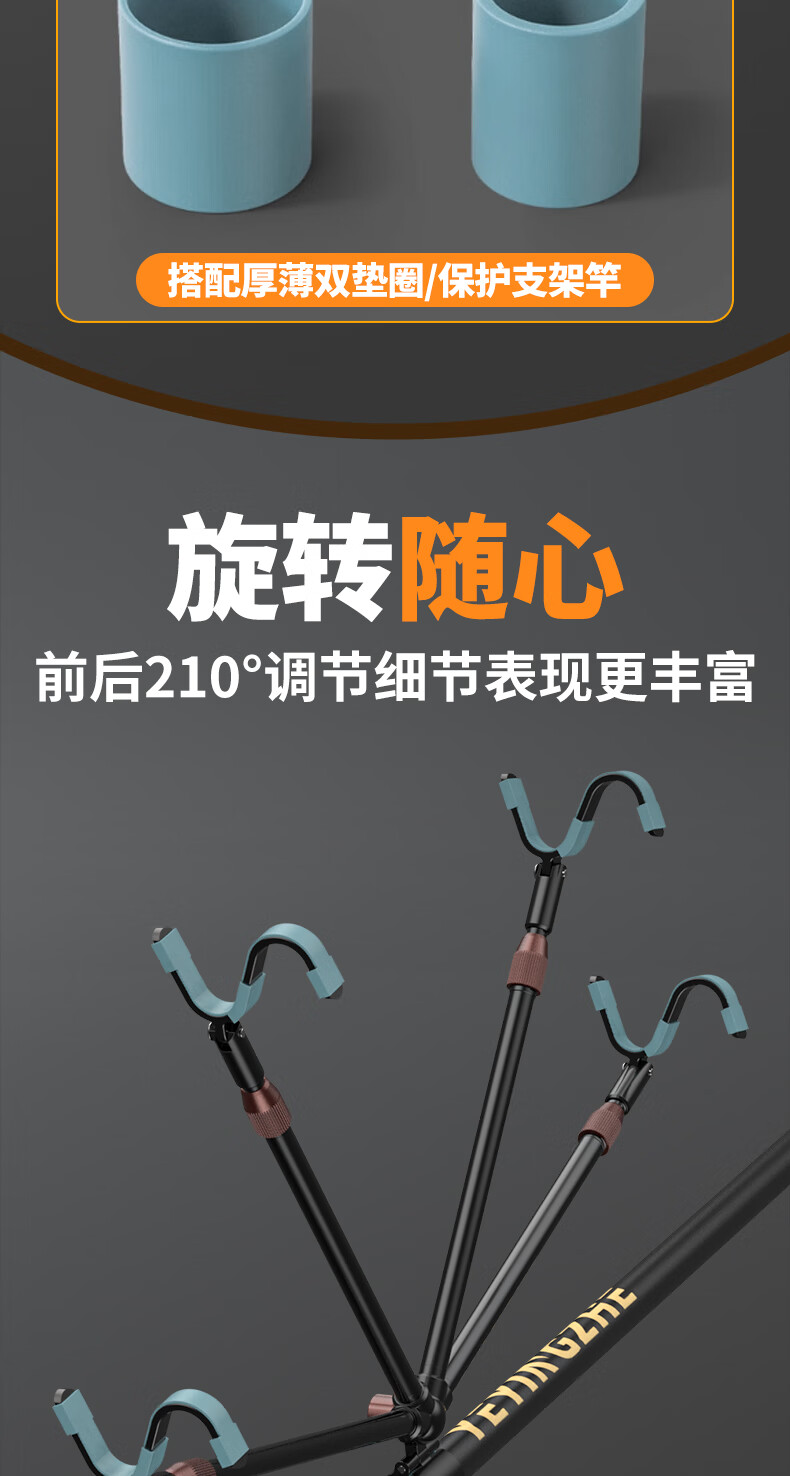 野营者加长饵盘架延长臂夜钓灯架加高拓展臂钓箱钓椅食盒架饵盒架 黑金-加长【饵盘架延长臂】+夜钓灯架+手机架