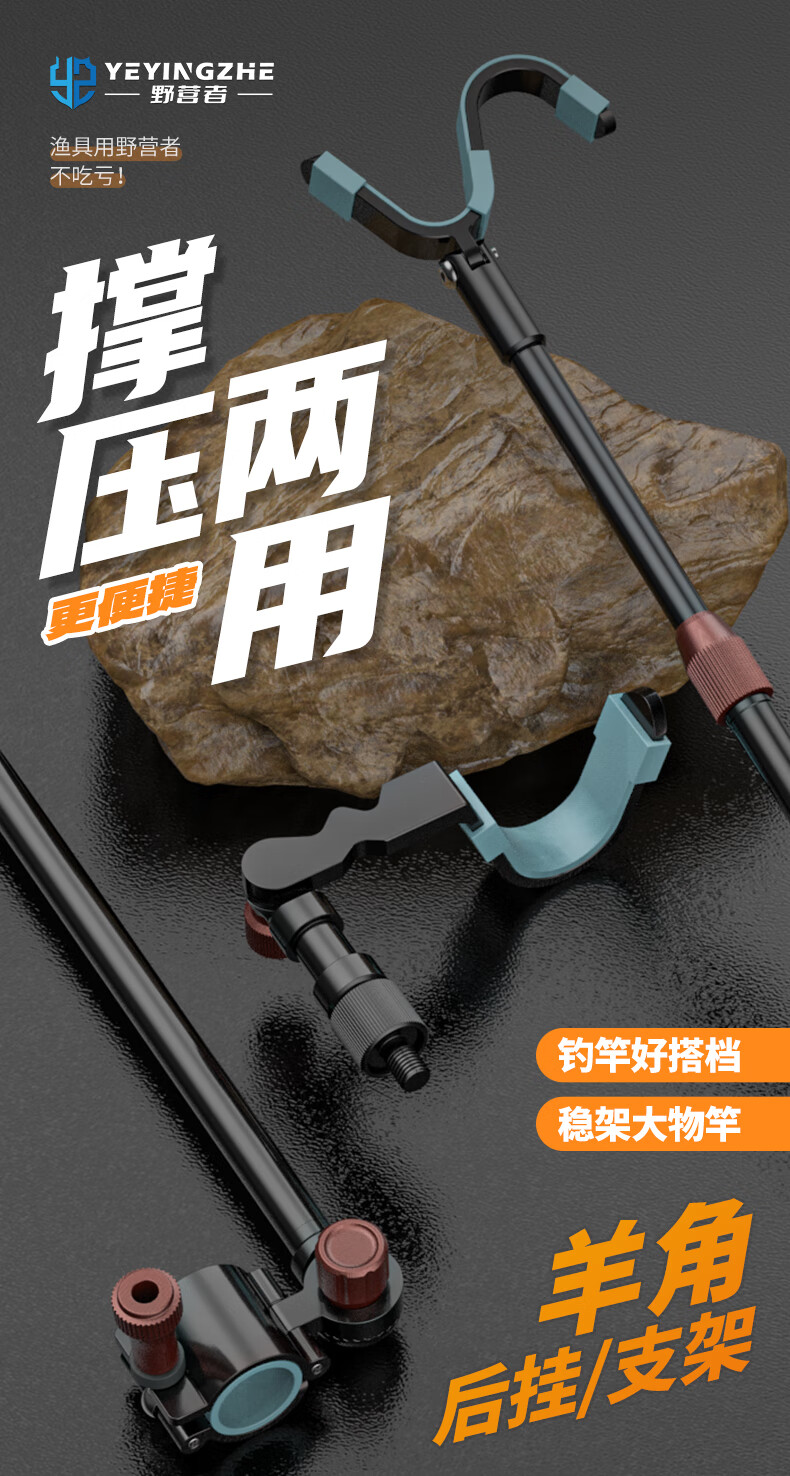 野营者通用炮台后挂S型拐角羊角支架头快拆架杆天线鱼竿钓鱼支架 《黑战神》镁铝合金快拆