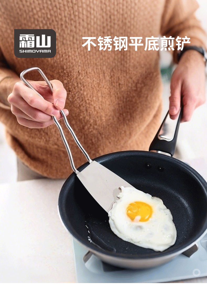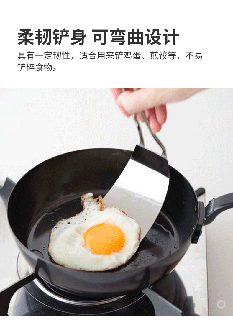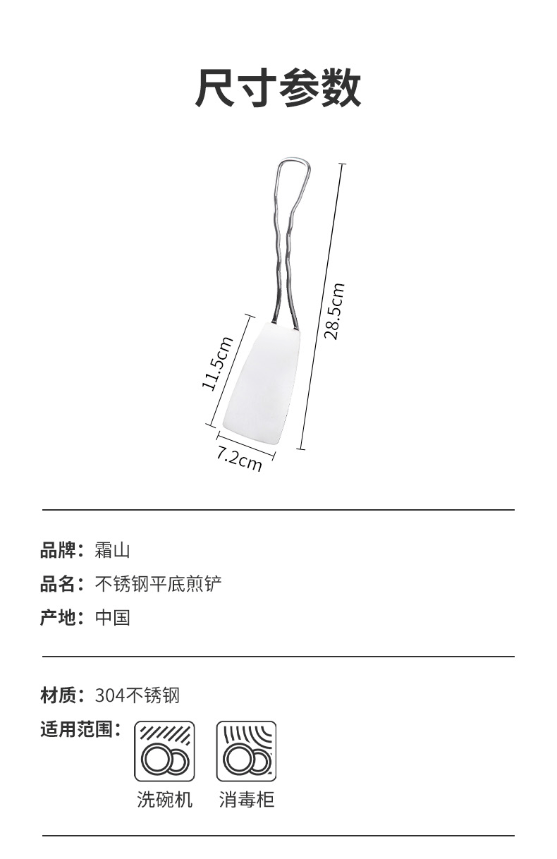 霜山平底煎铲304不锈钢弹力锅铲轻薄可弯曲煎蛋锅贴铲子家用平铲 【0.4mm薄铲】长28.5cm 洗碗机ok
