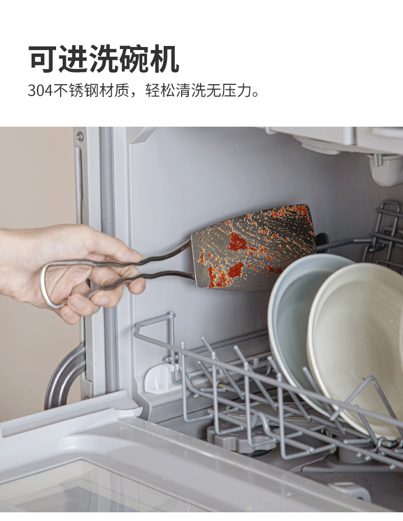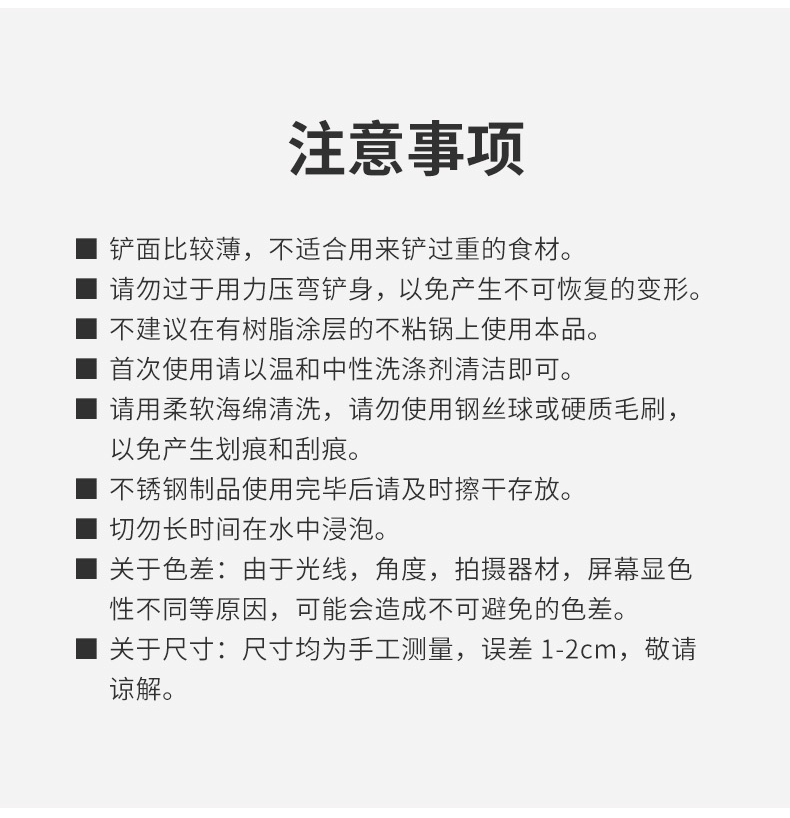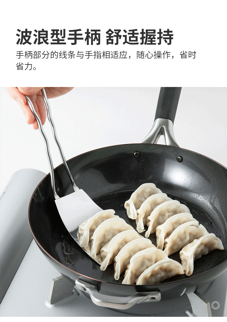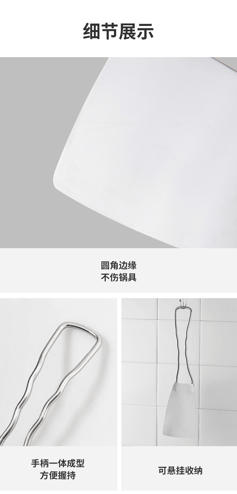霜山平底煎铲304不锈钢弹力锅铲轻薄可弯曲煎蛋锅贴铲子家用平铲 【0.4mm薄铲】长28.5cm 洗碗机ok