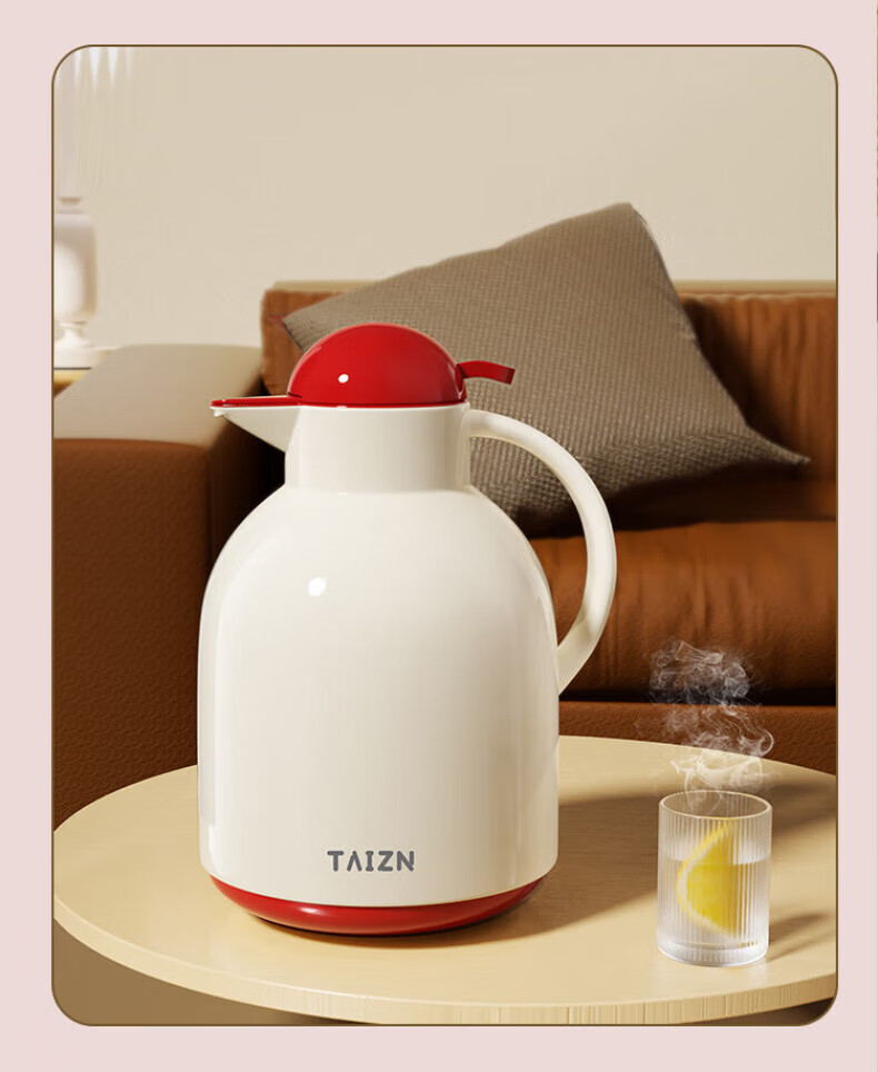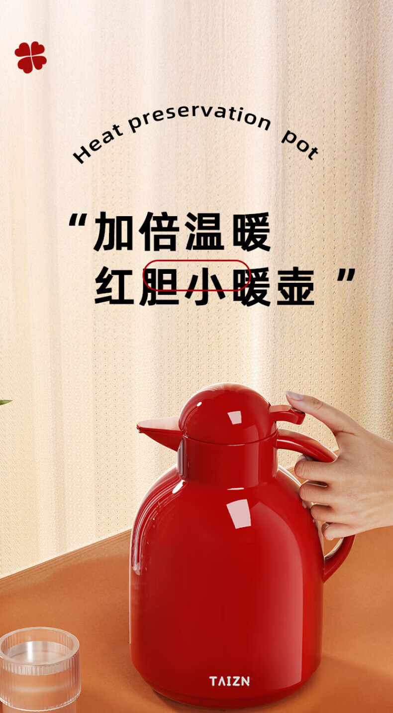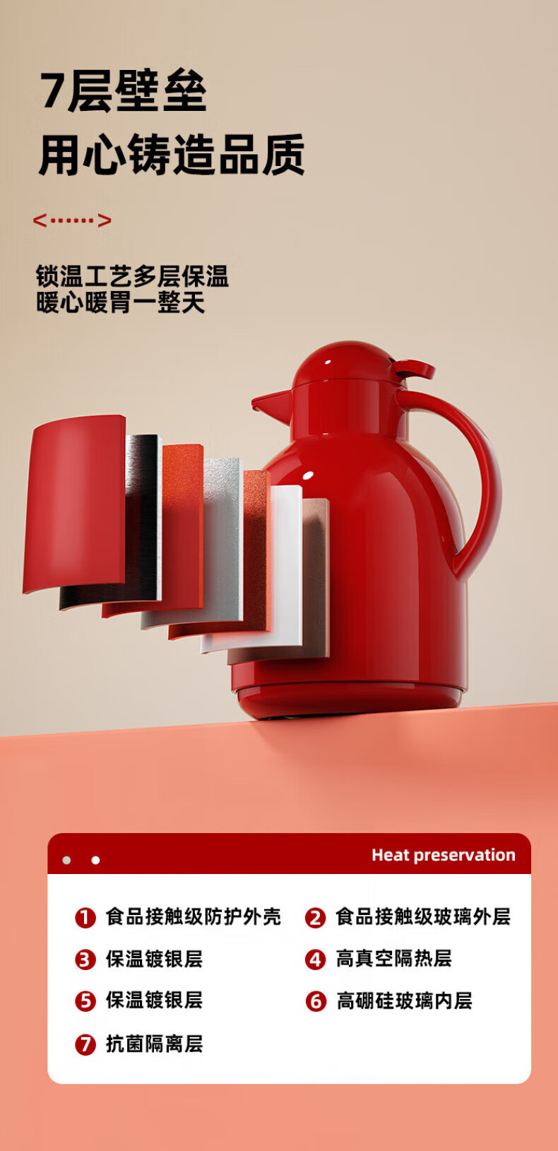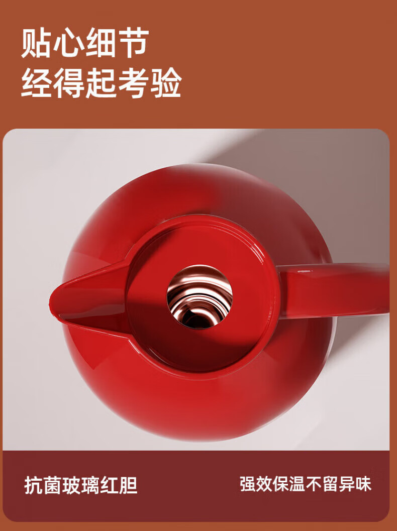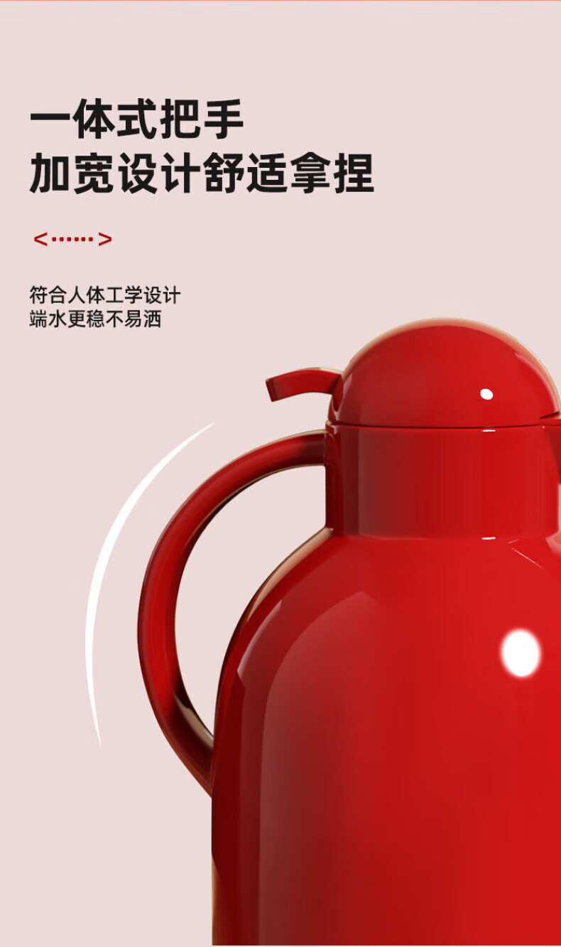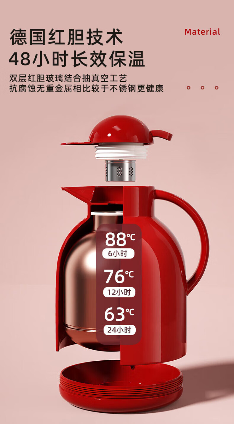 DEATKN德国家用保温壶72小时长效保温水壶大容量热水壶保温瓶便携暖 胭红(玻璃银胆+防尘壶嘴+ 1L