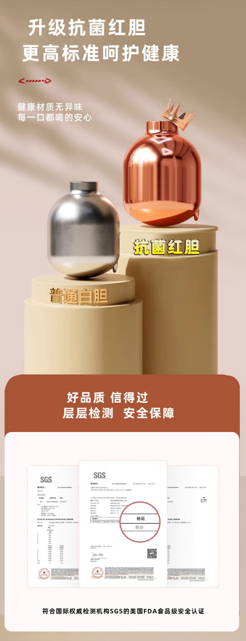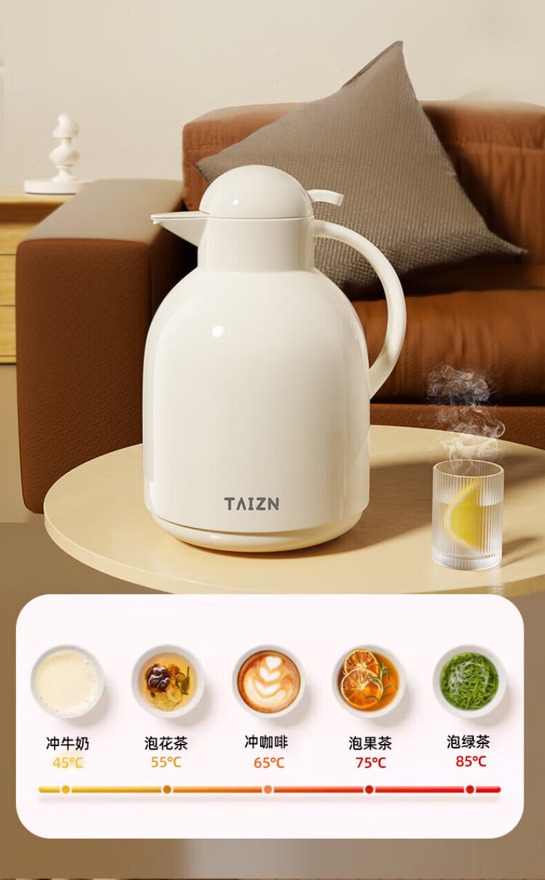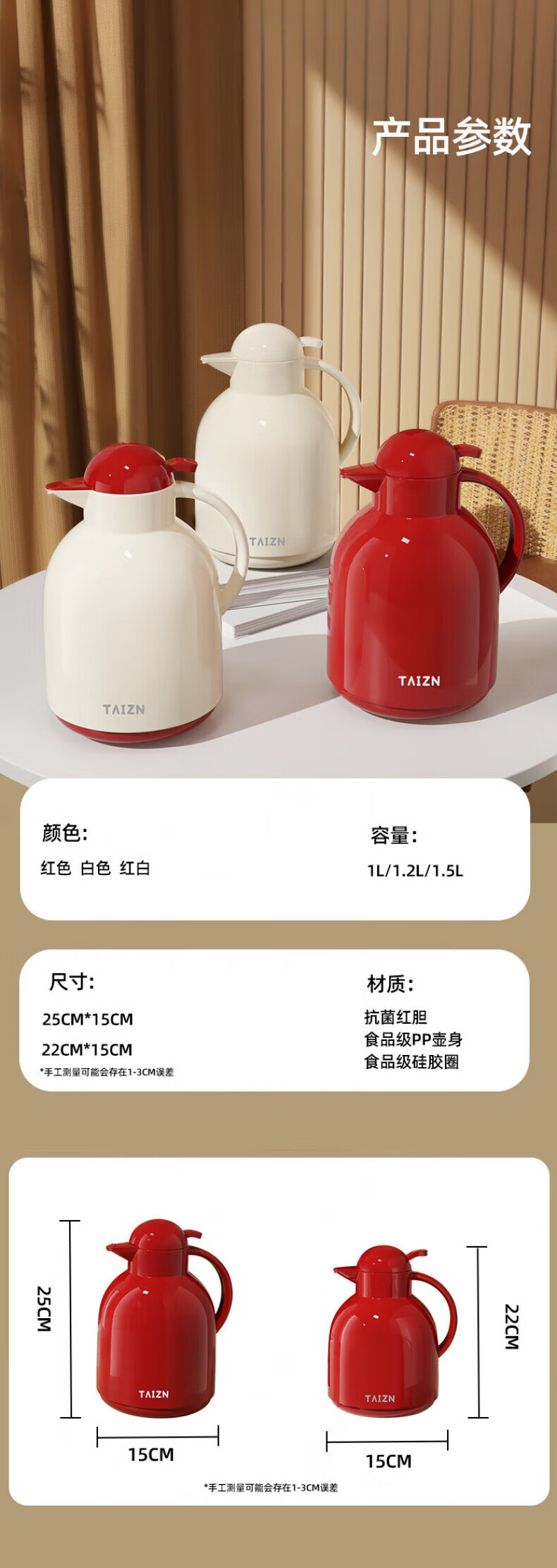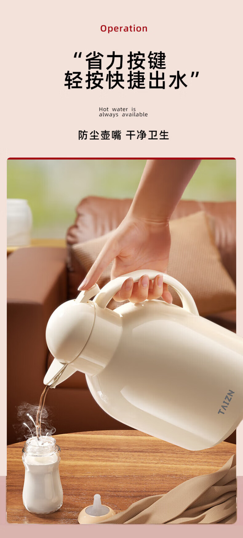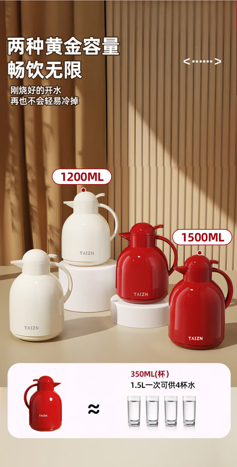 DEATKN德国家用保温壶72小时长效保温水壶大容量热水壶保温瓶便携暖 胭红(玻璃银胆+防尘壶嘴+ 1L