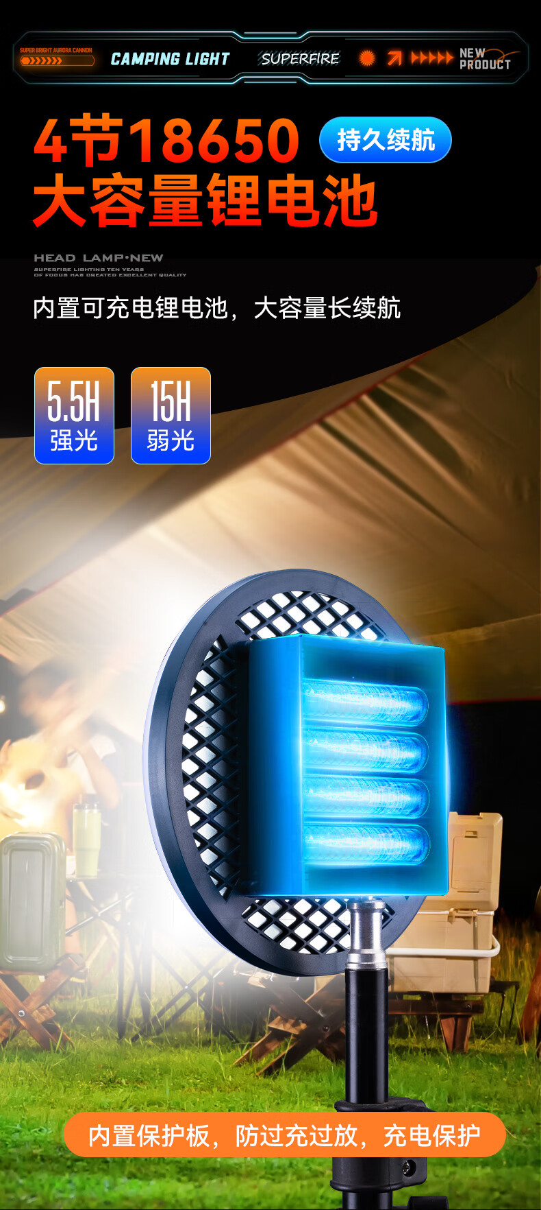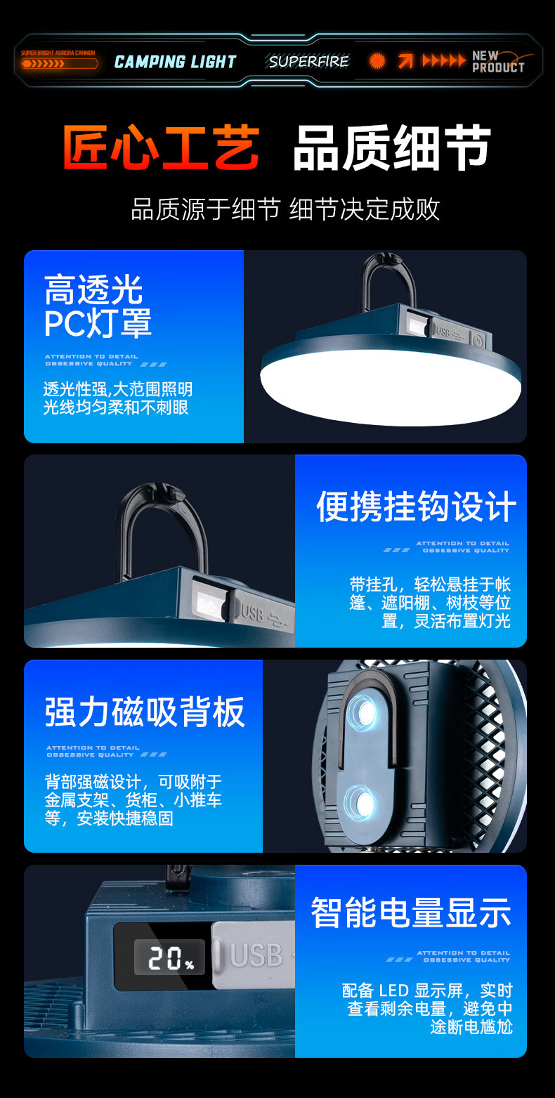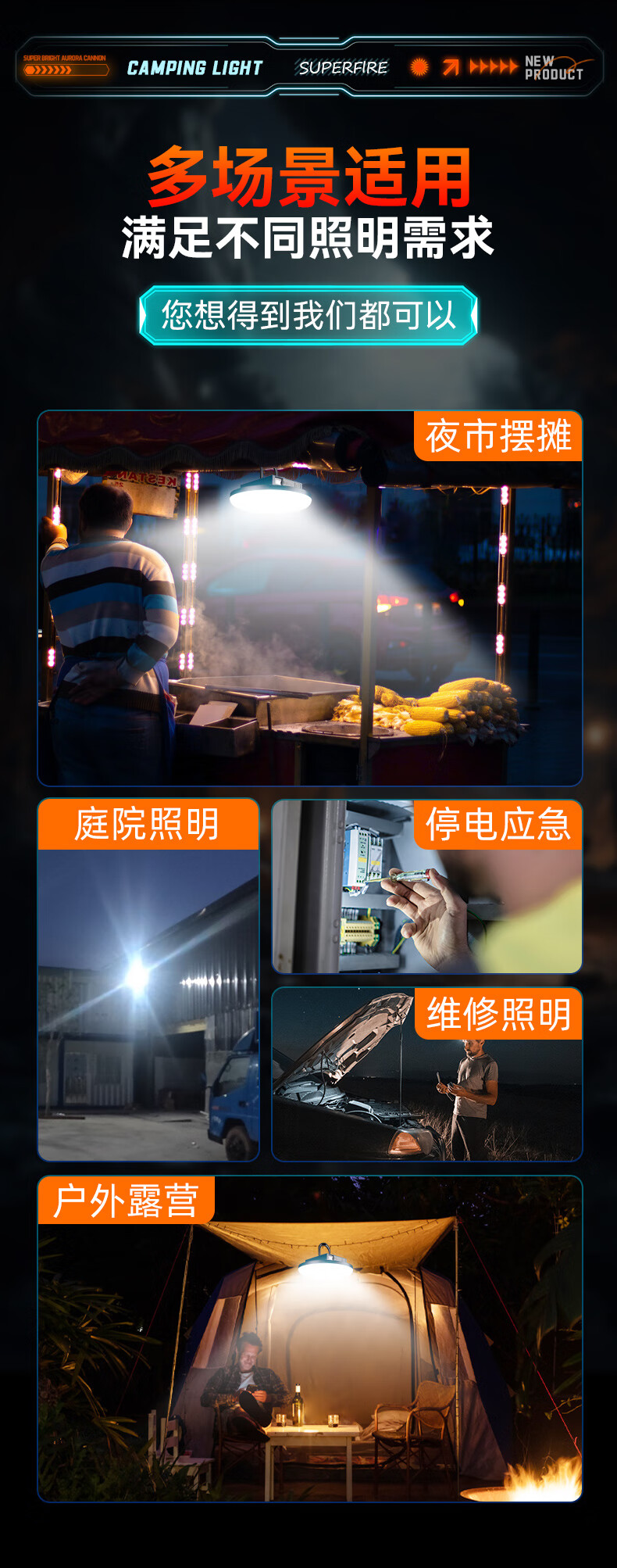 神火露营灯户外超亮长续航摆地摊夜市吊灯帐篷灯家用应急照明磁吸 F4-155爆亮2000流明磁吸挂钩