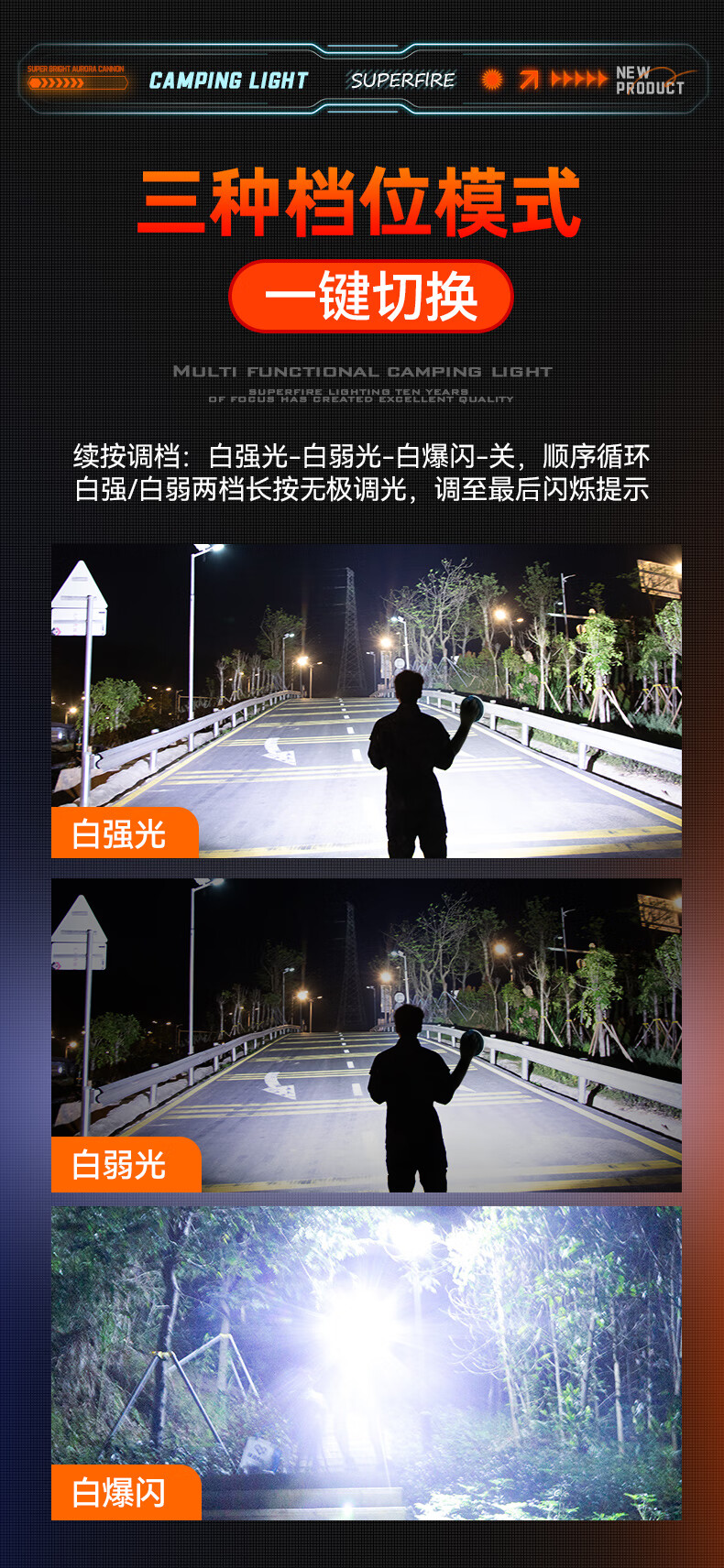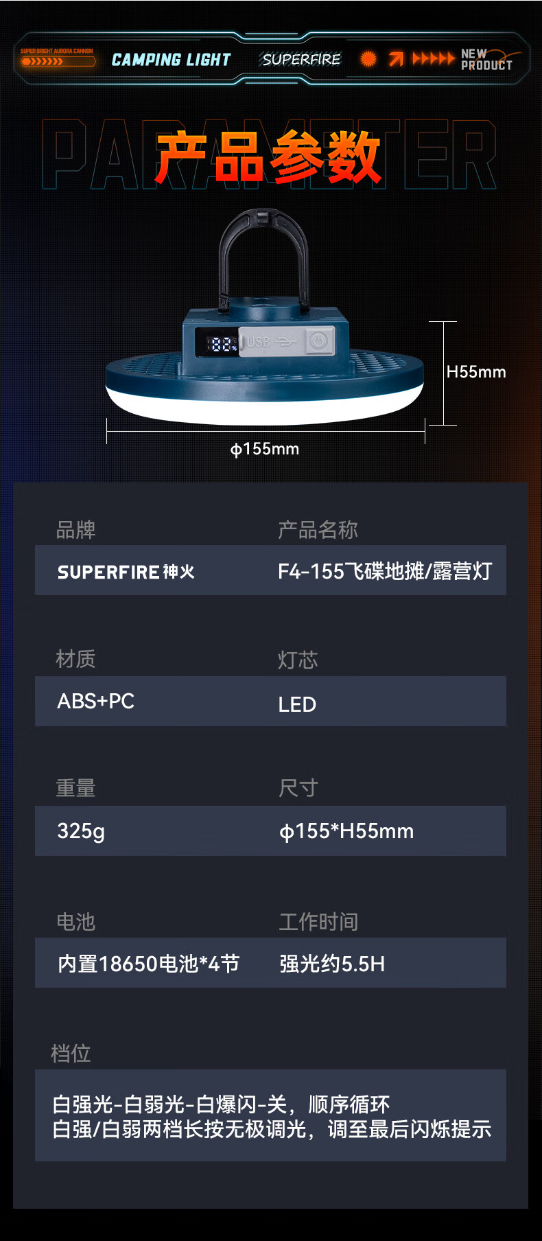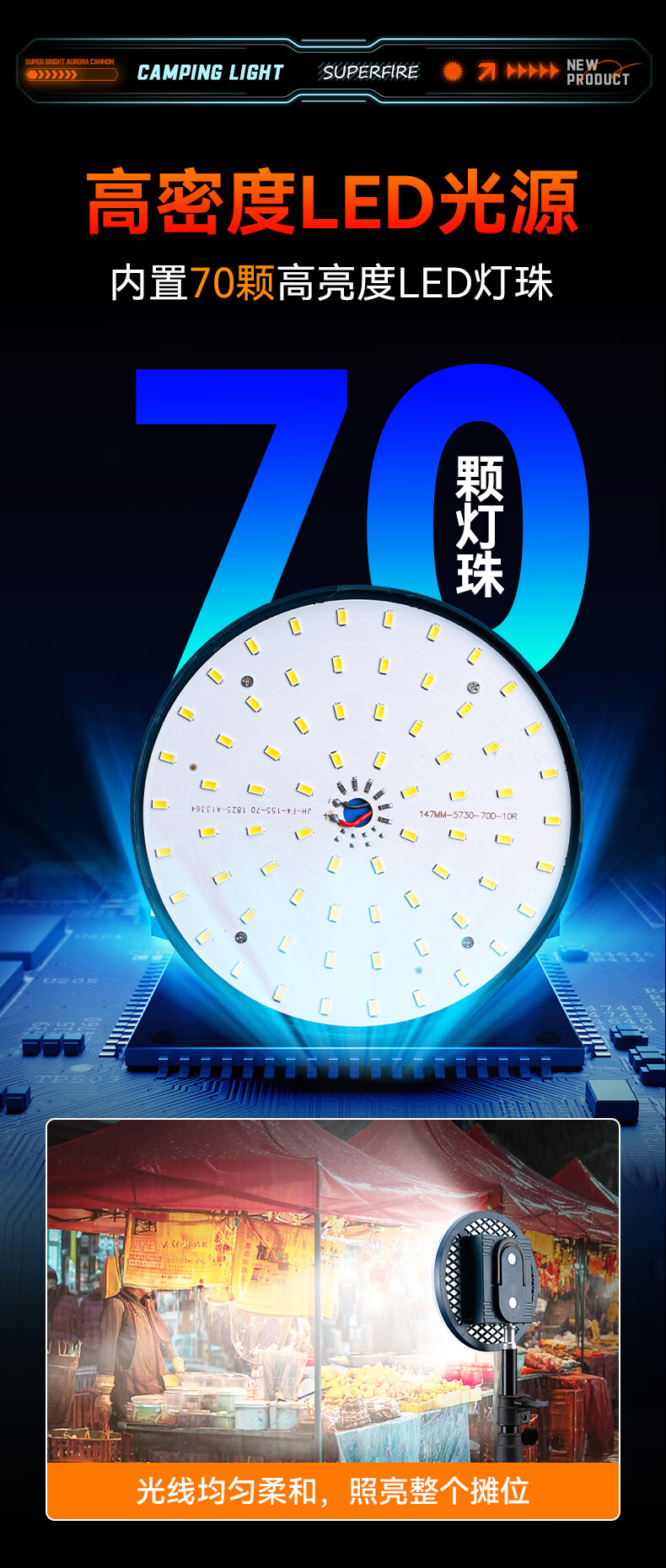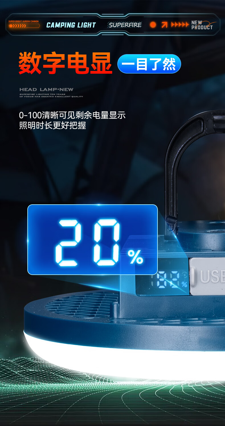 神火露营灯户外超亮长续航摆地摊夜市吊灯帐篷灯家用应急照明磁吸 F4-155爆亮2000流明磁吸挂钩