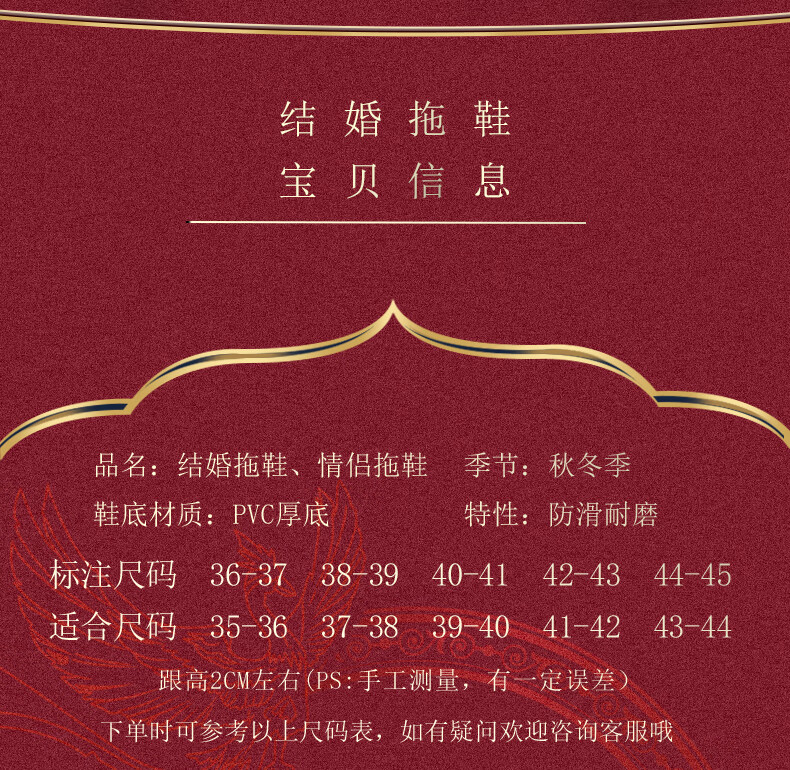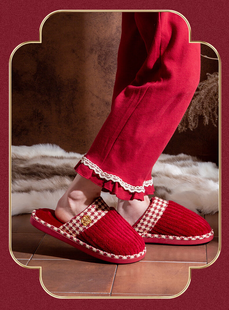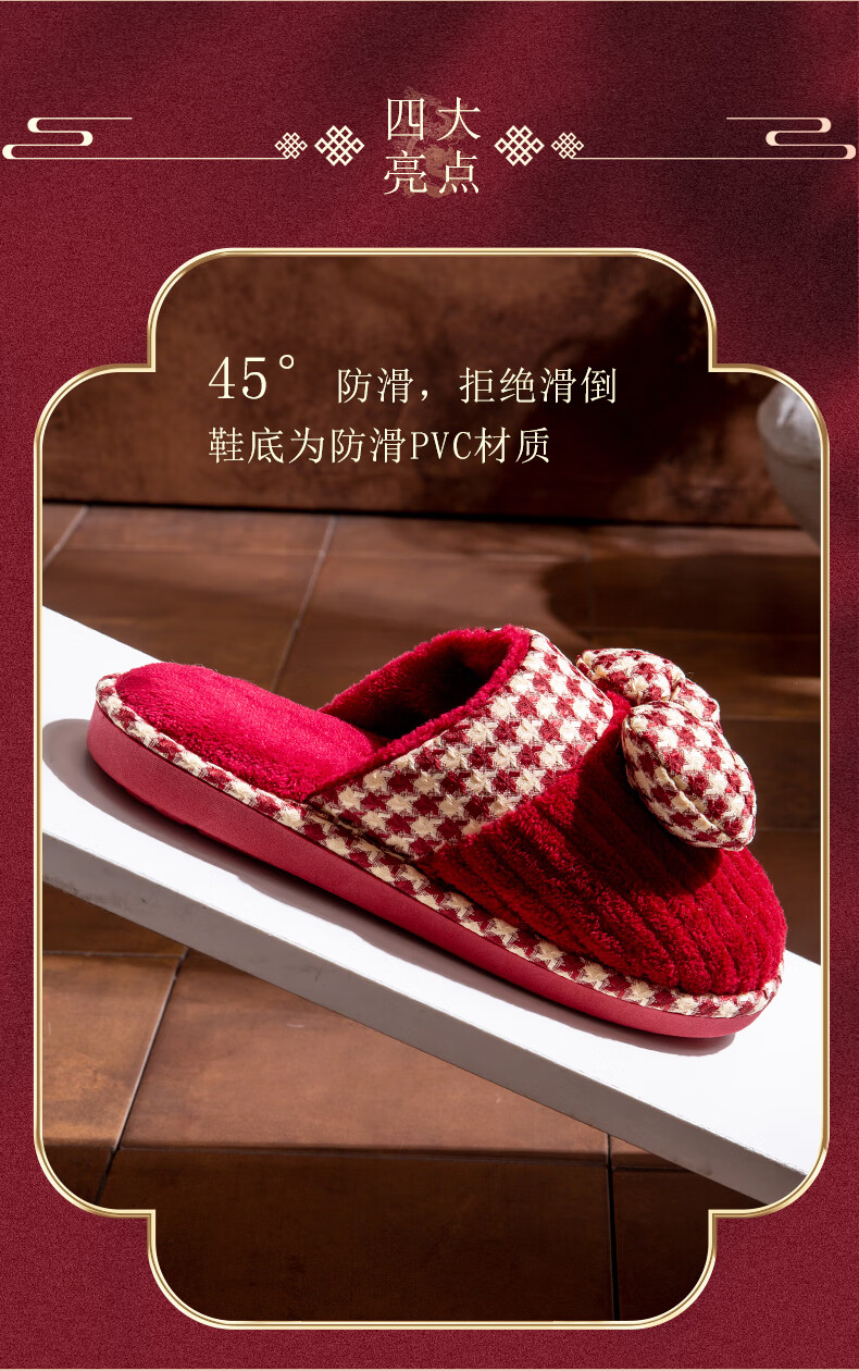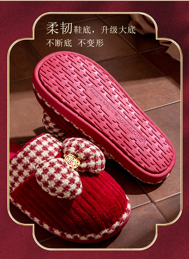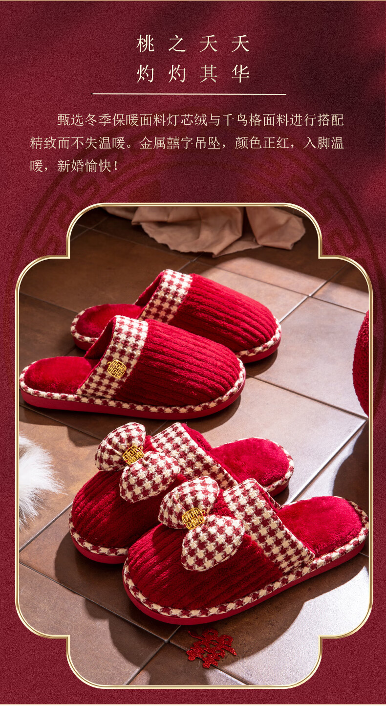 DEATKN德国结婚拖鞋喜庆红色一对冬季新婚礼新娘陪嫁轻奢晨袍棉拖鞋婚鞋 新娘+新郎【圆鼓花蝴蝶结】 36-37 女+男40-41