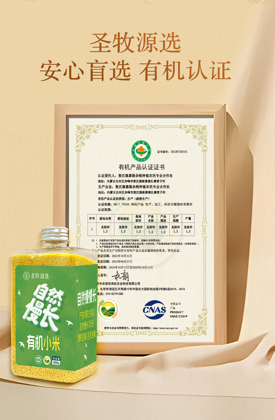 SHENGMU SINCE 2009圣牧源选有机杂粮 小米粥 辅食粥 源头直发内蒙古敖汉旗 有机纯牛奶200ml*10盒