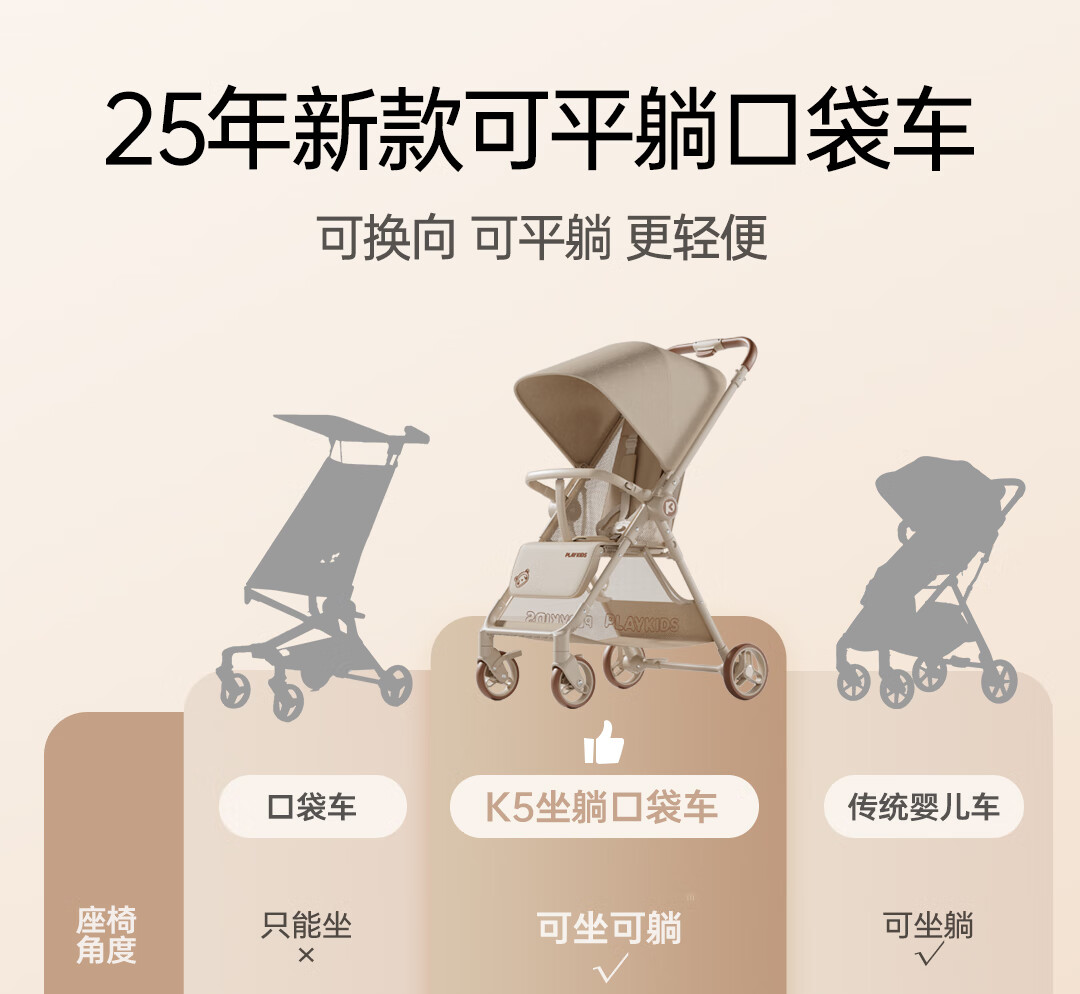 普洛可K5口袋推车可坐可躺新生儿轻便婴儿推车0-3岁换向四轮推车 K5天使之翼(推把换向)