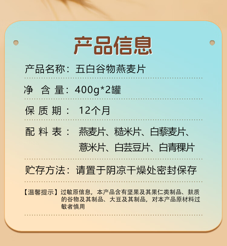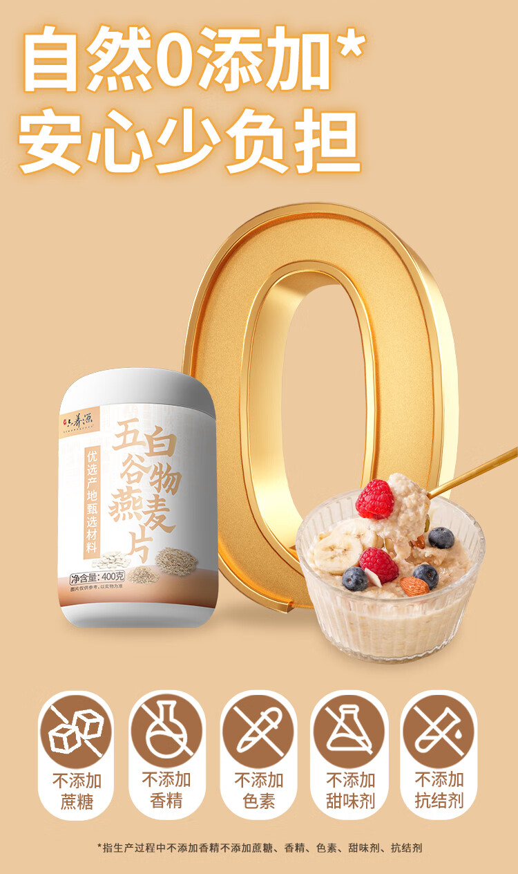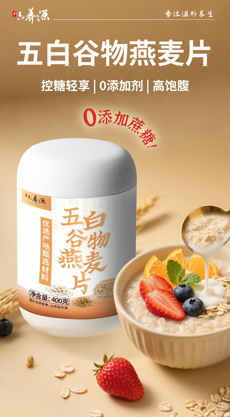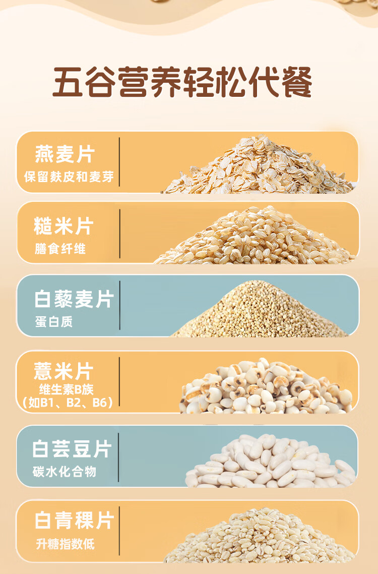 六养源五白谷物杂粮糙米薏米白藜麦白芸豆白青稞即食麦片减无糖肥400g*2