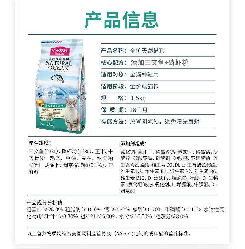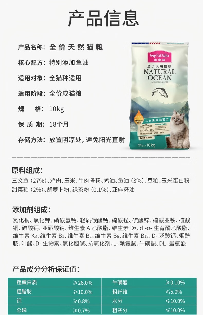 麦富迪猫粮三文鱼油成猫粮10kg天然营养布偶猫咪通用20斤实惠装