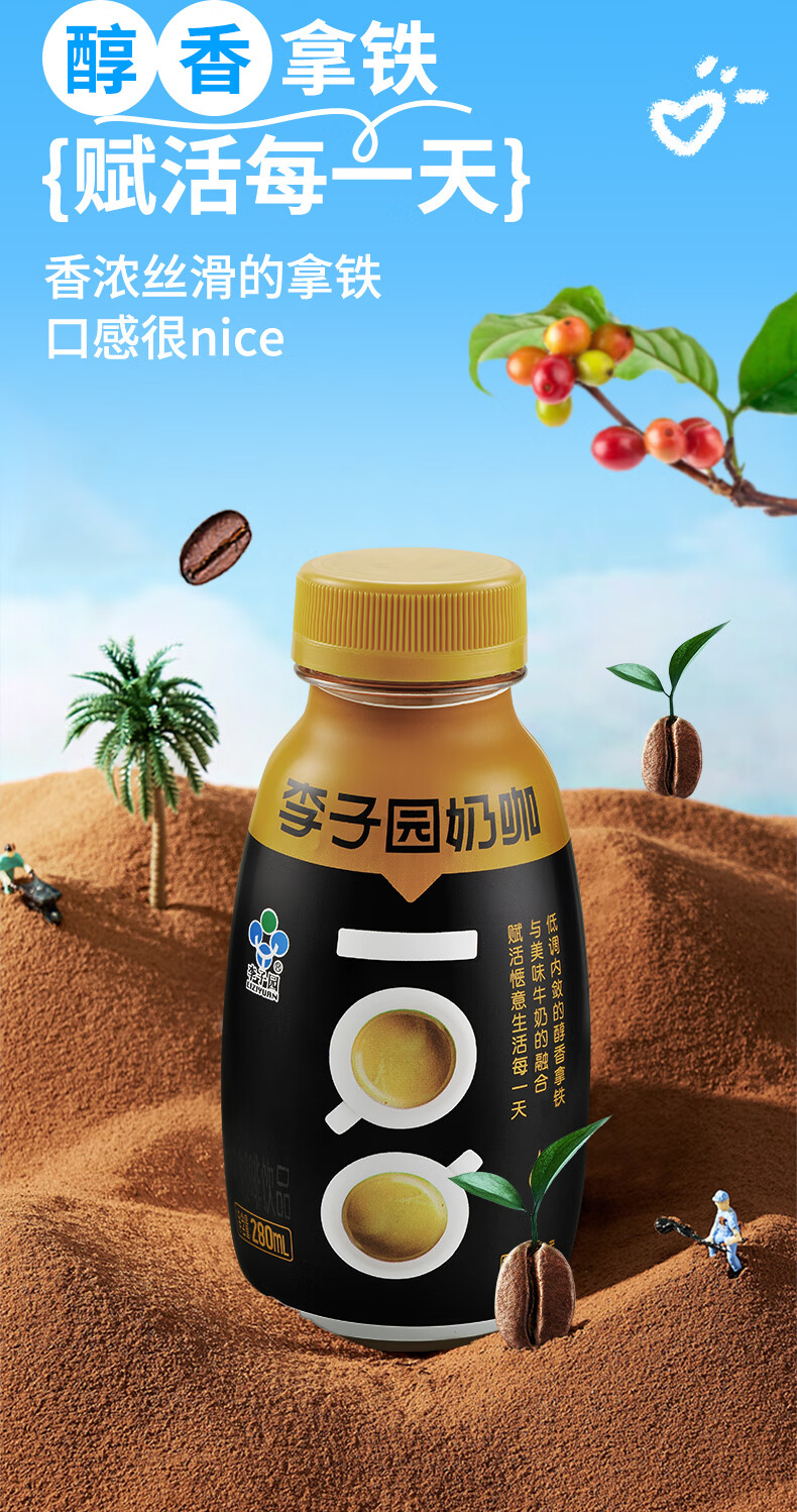 李子园奶咖牛奶咖啡饮品拿铁风味乳饮料280ml*15瓶装