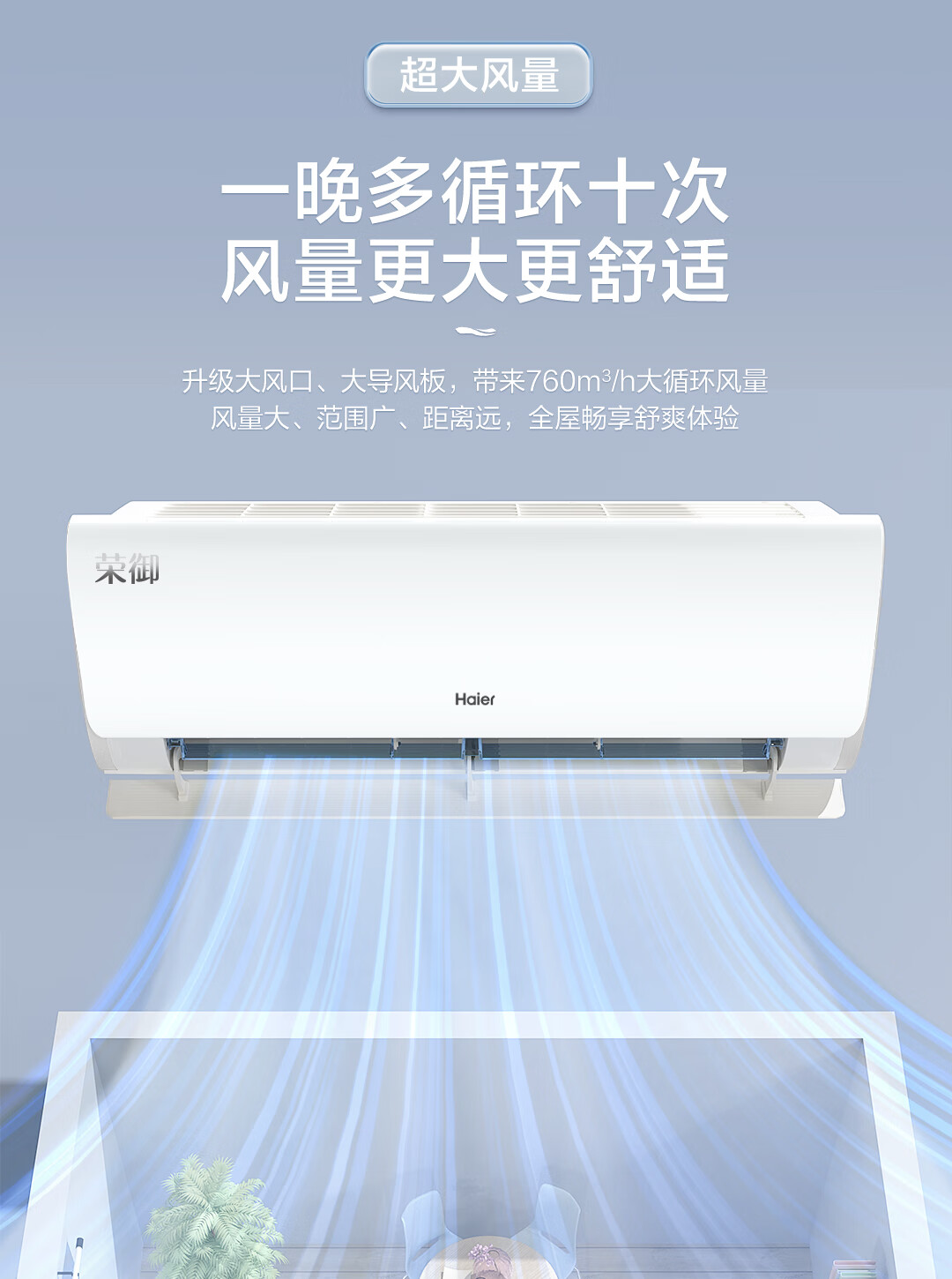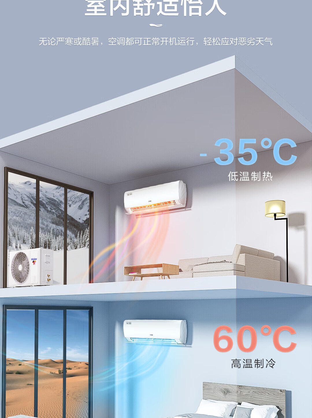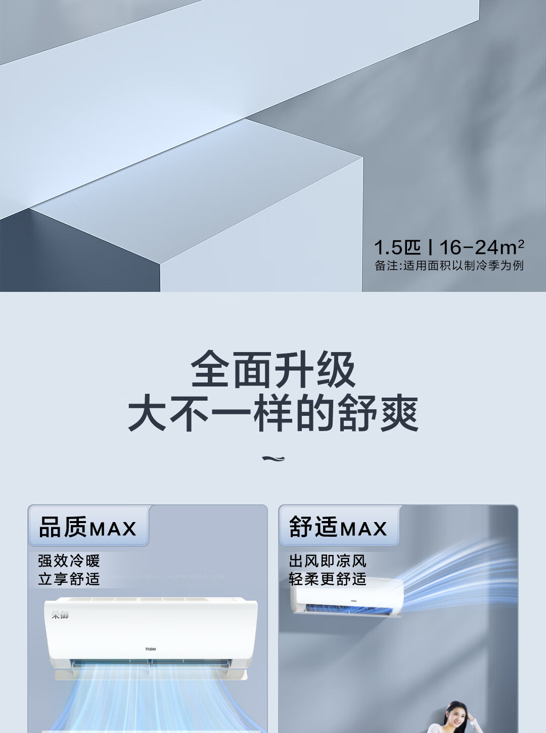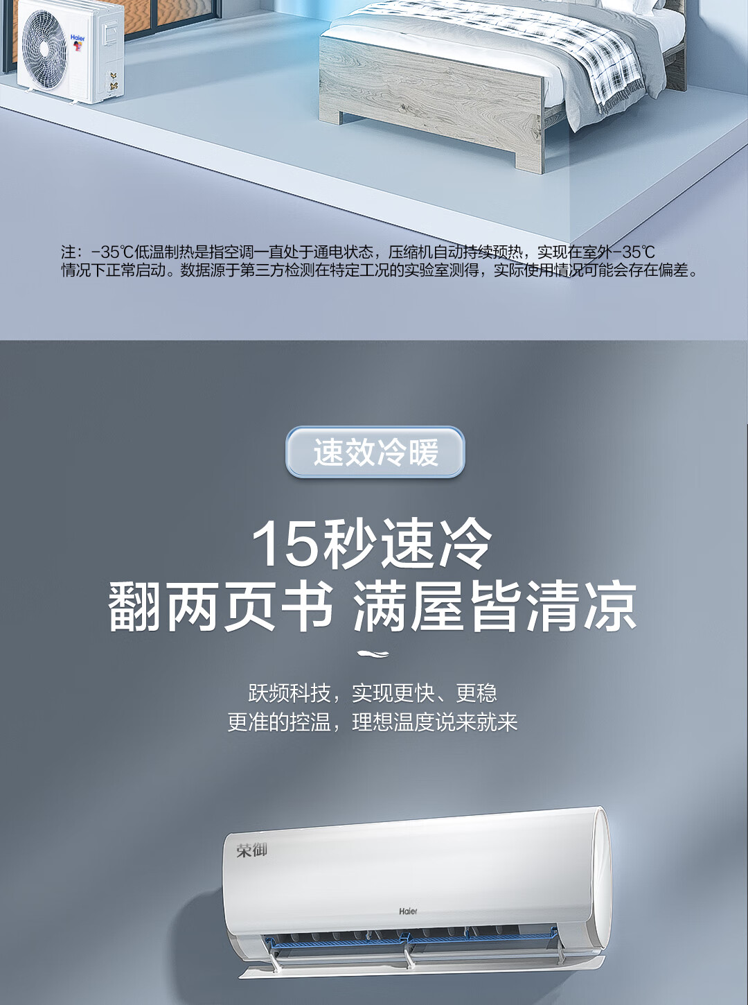 海尔(Haier)空调1.5匹新一级能效 荣御系列 变频冷暖 壁挂式空调挂机卧室智能家用KFR-35GW/B5LBA81U1