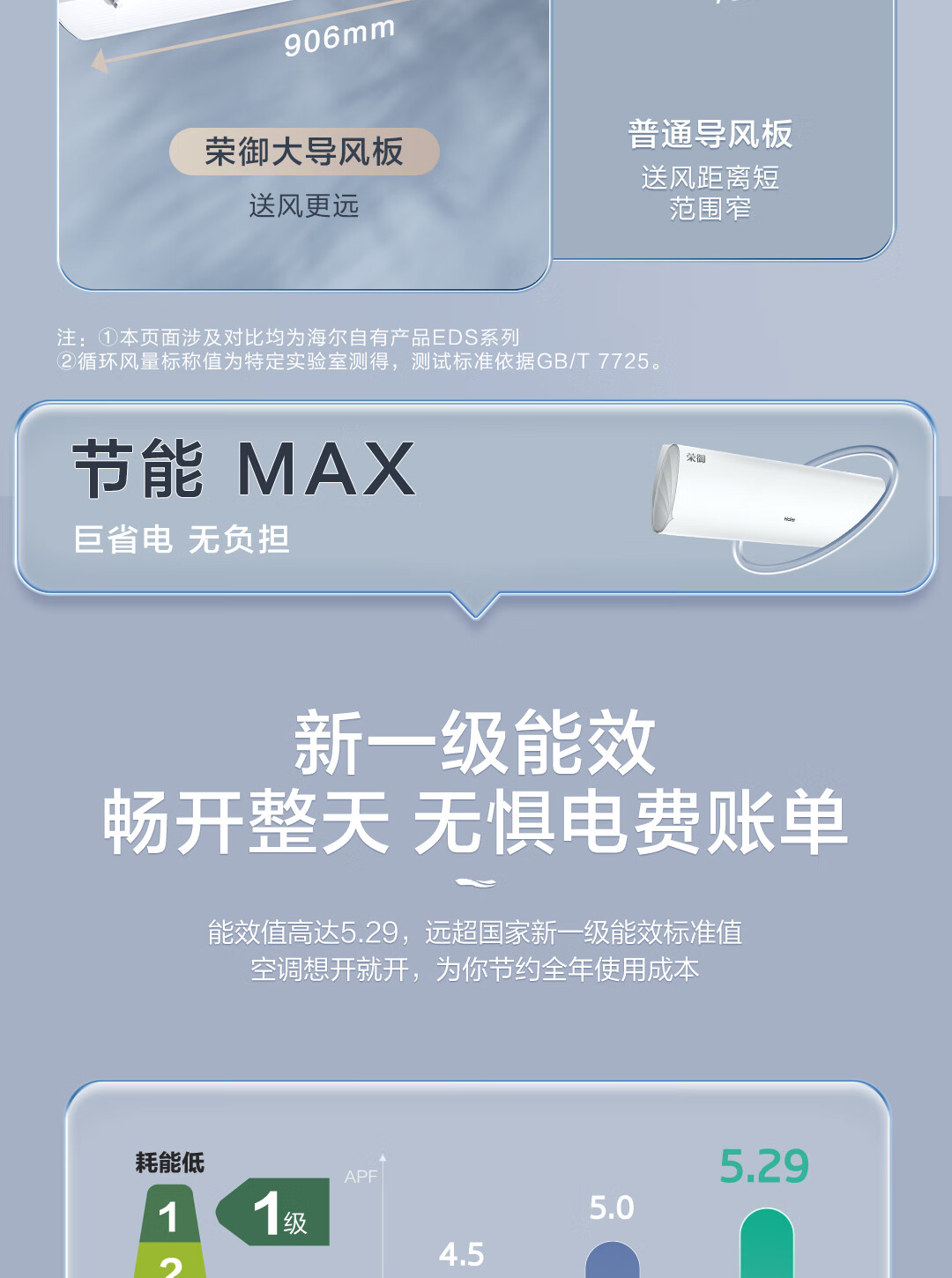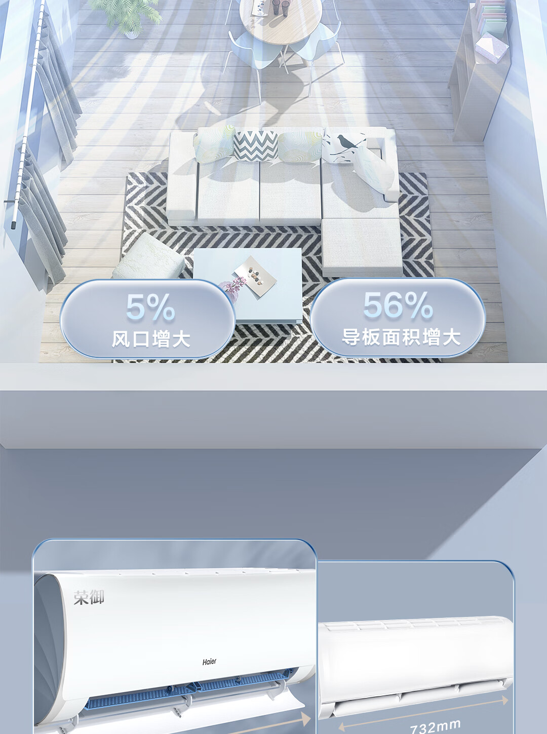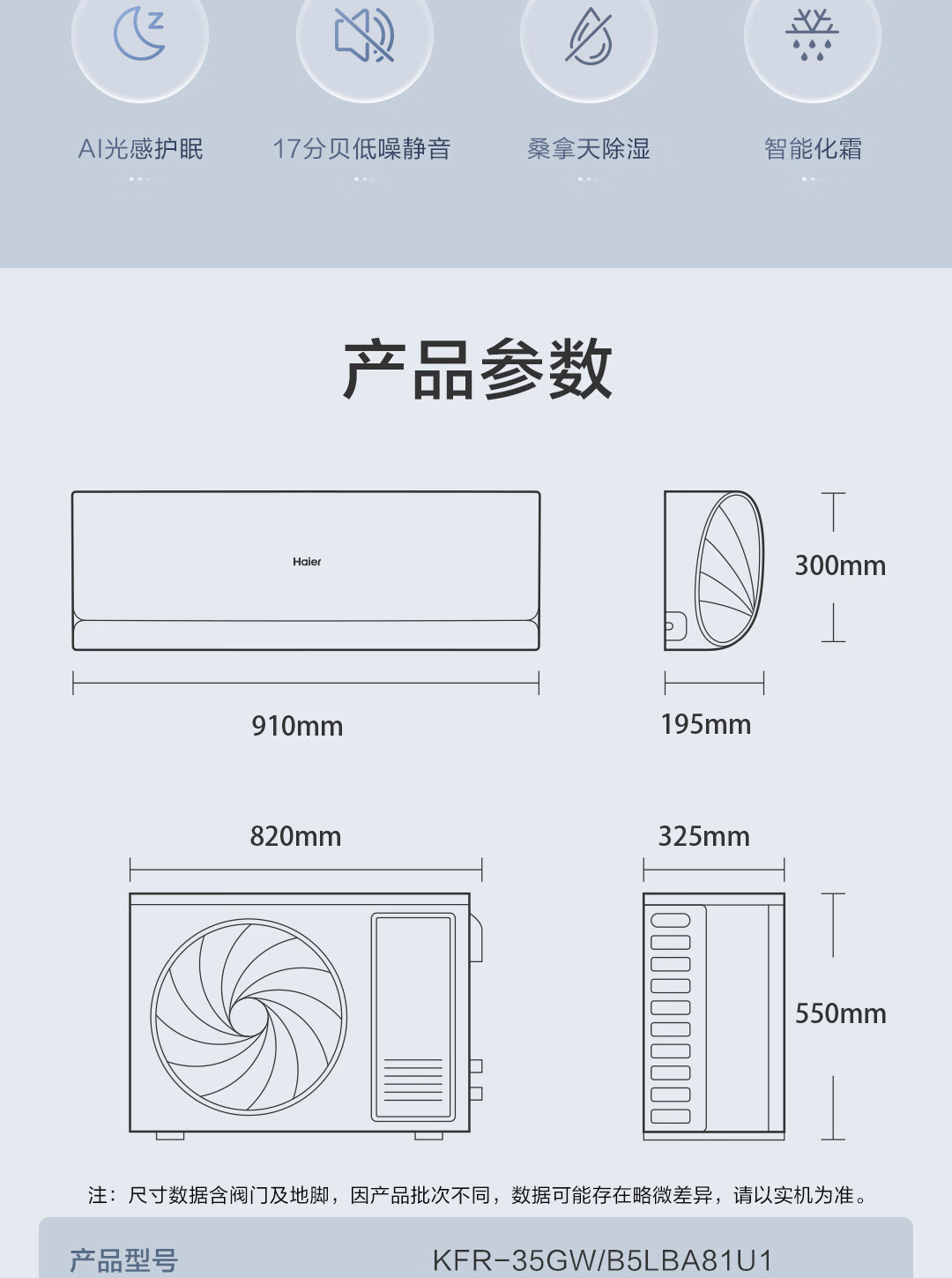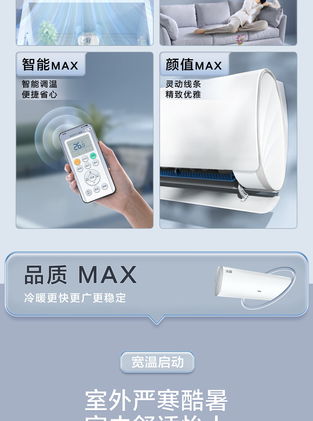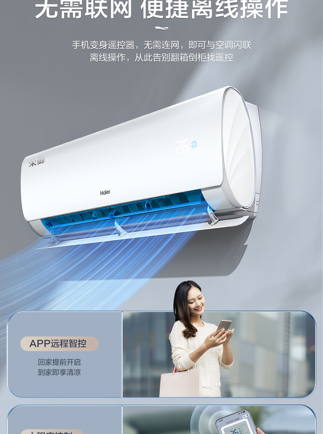 海尔(Haier)空调1.5匹新一级能效 荣御系列 变频冷暖 壁挂式空调挂机卧室智能家用KFR-35GW/B5LBA81U1