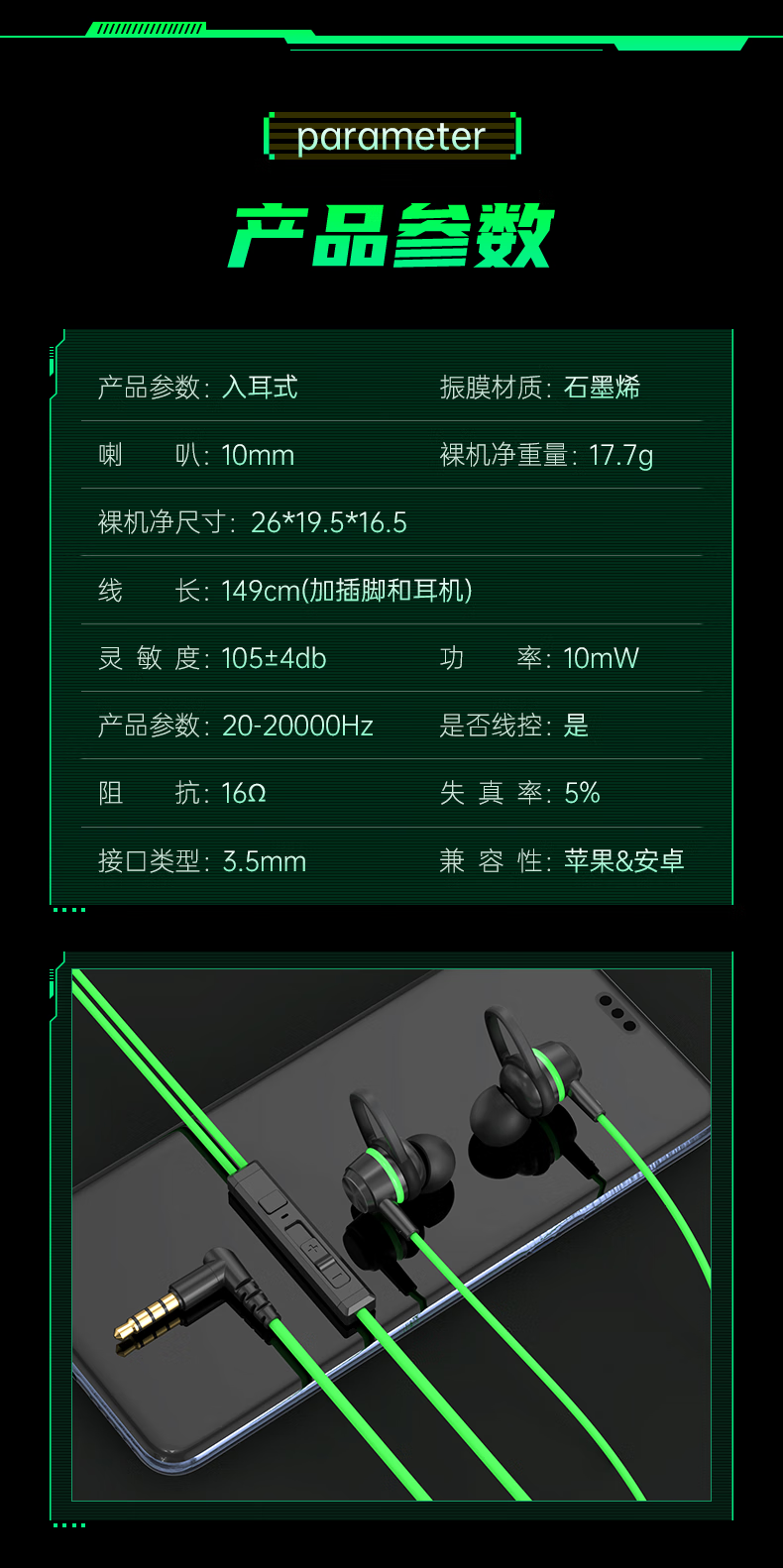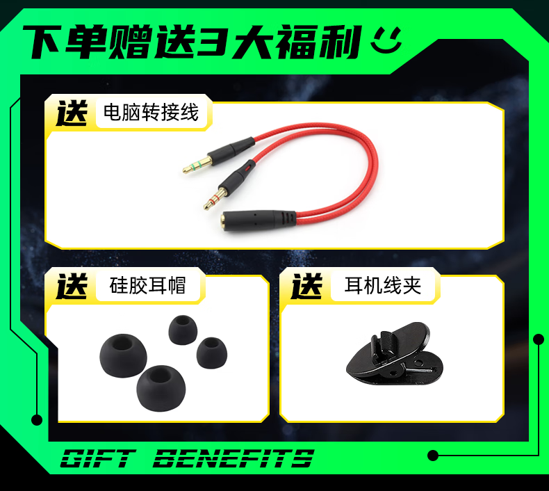 智国者【TOP榜第1名】游戏耳机有线电脑电竞入耳圆头吃鸡麦克风二合一笔记本3.5mm专用三角洲听声辩位fps