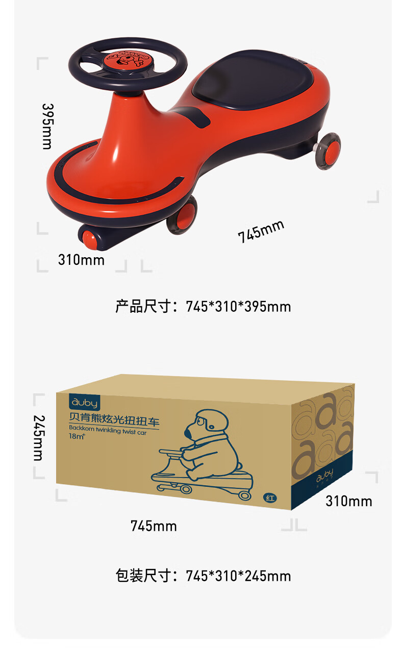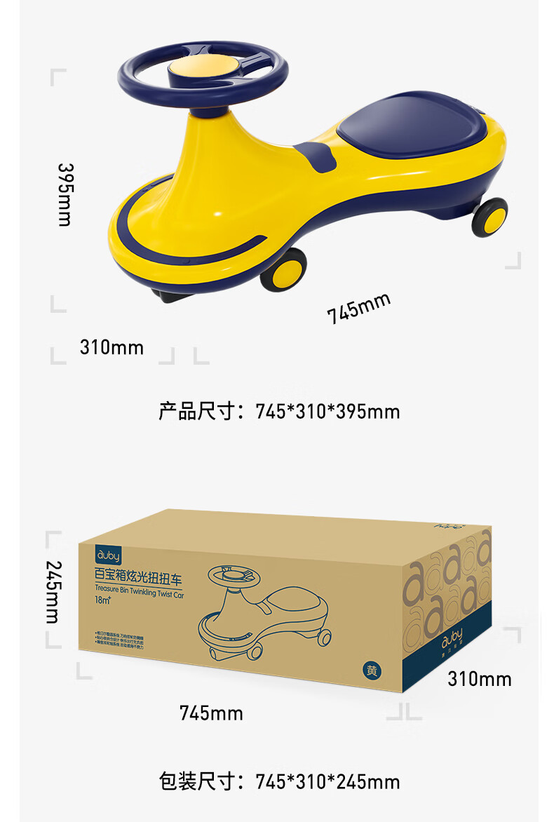 澳贝(auby)婴儿童玩具男女孩炫光扭扭车宝宝溜溜车1-3-6岁滑行车生日礼物