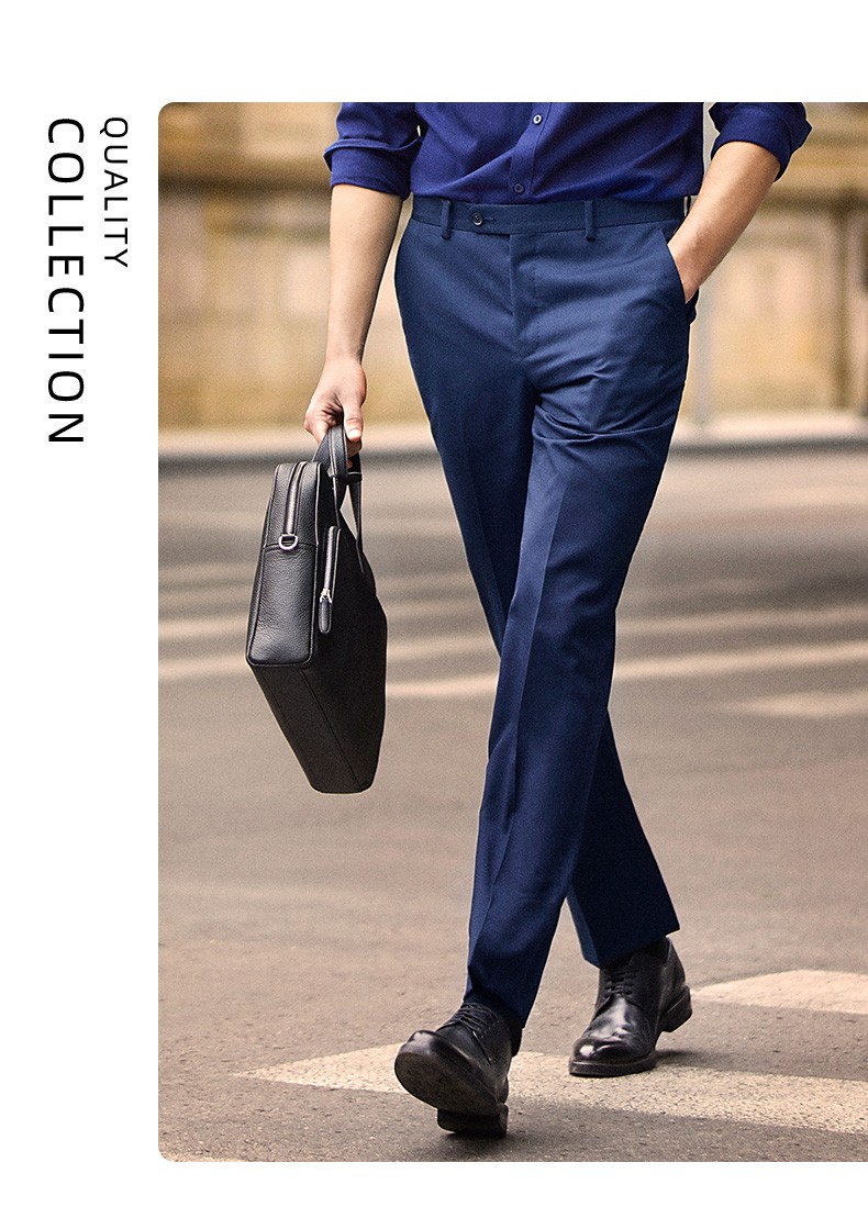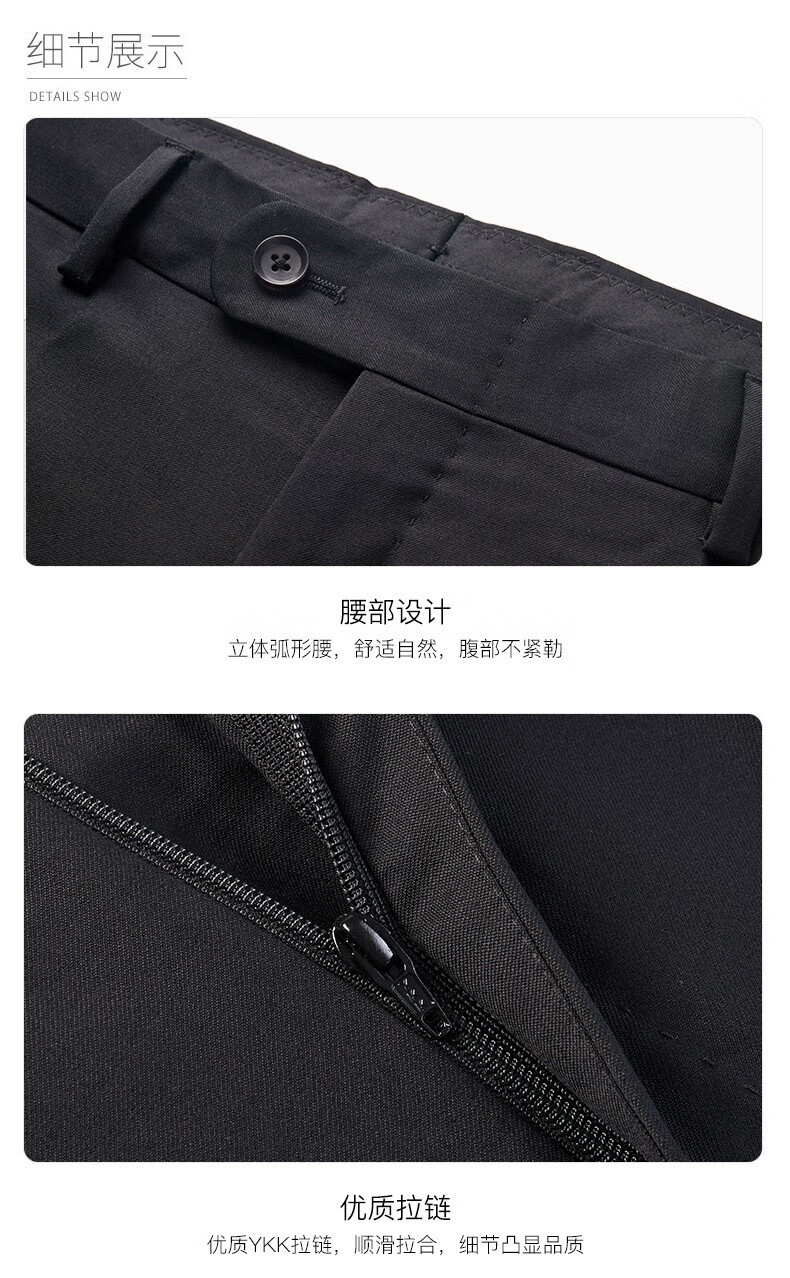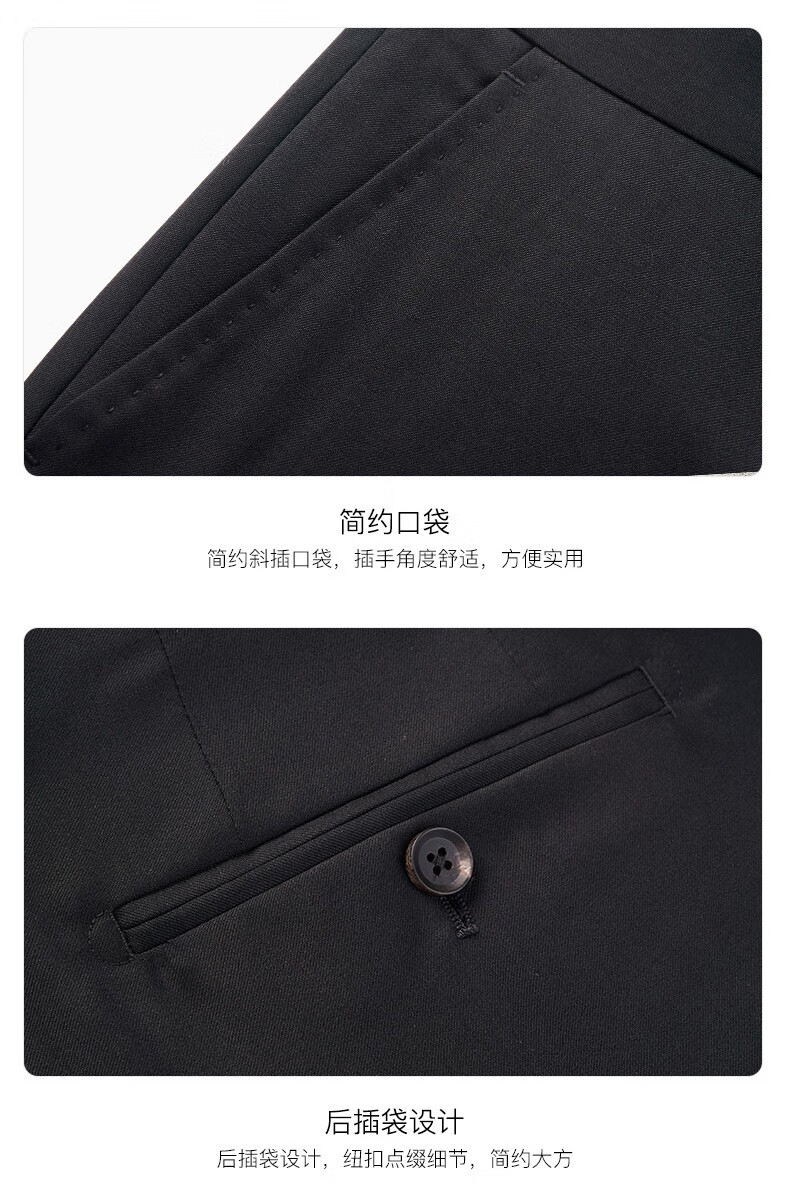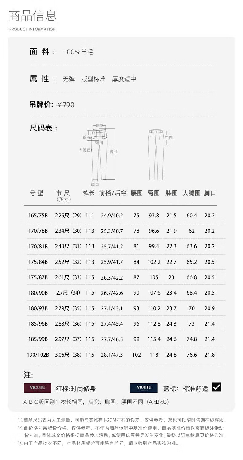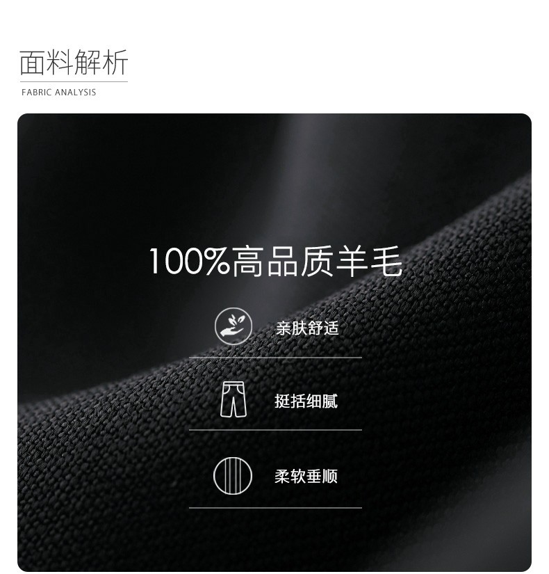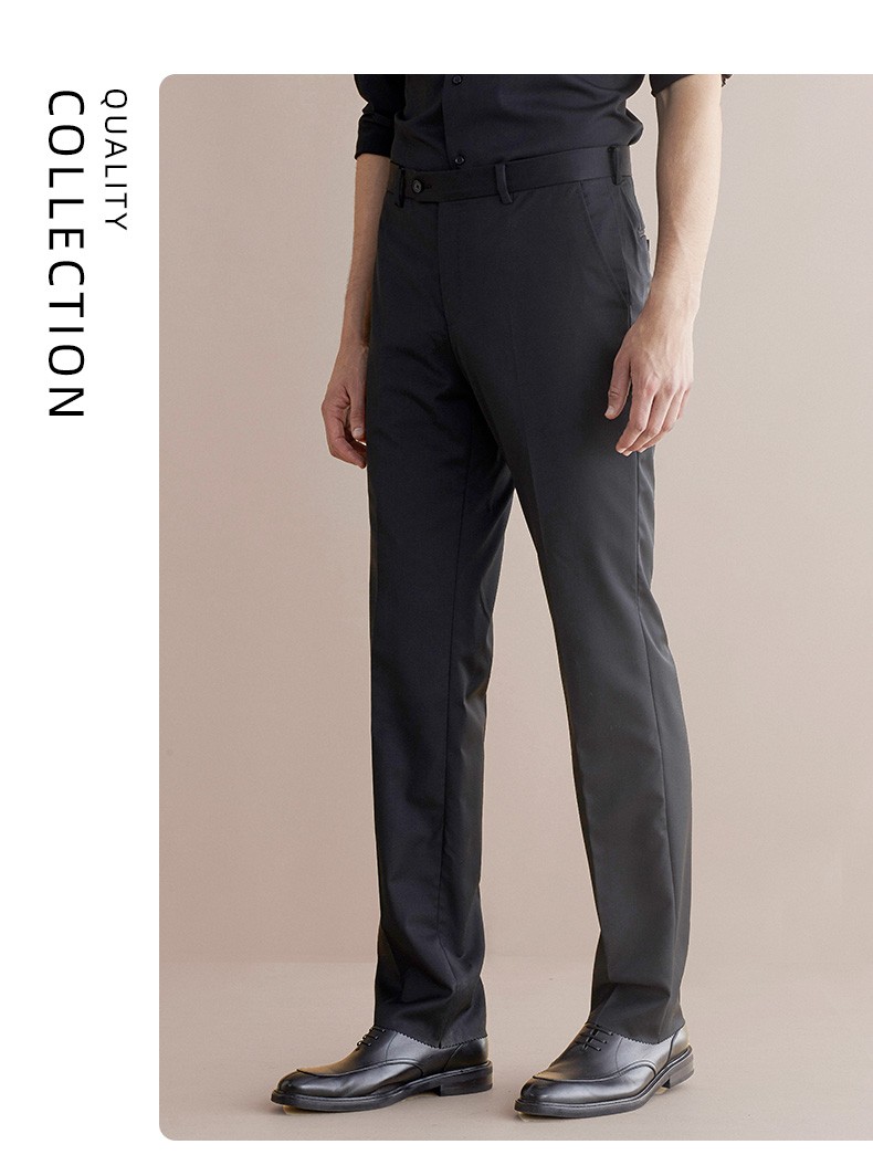 威可多(VICUTU)男士单西裤纯羊毛商务休闲直筒长裤黑色185/96B-2尺9